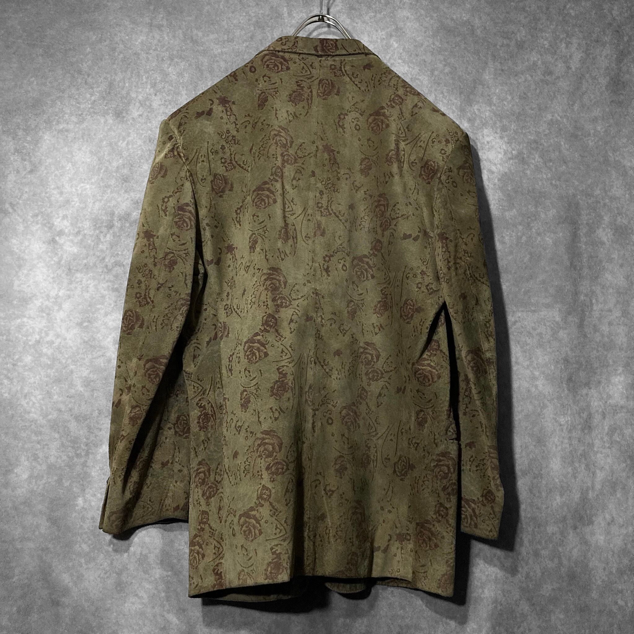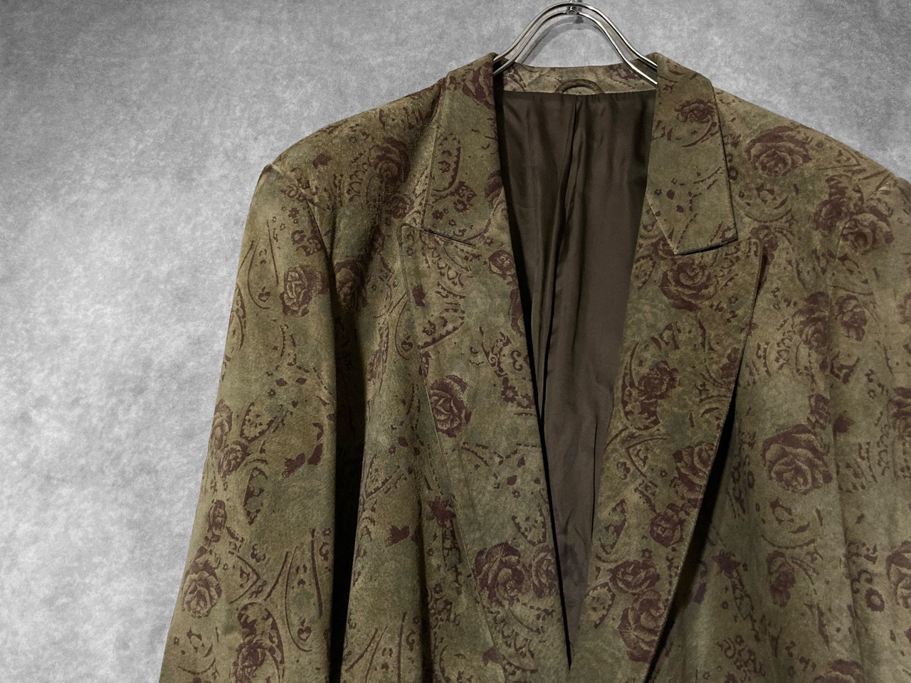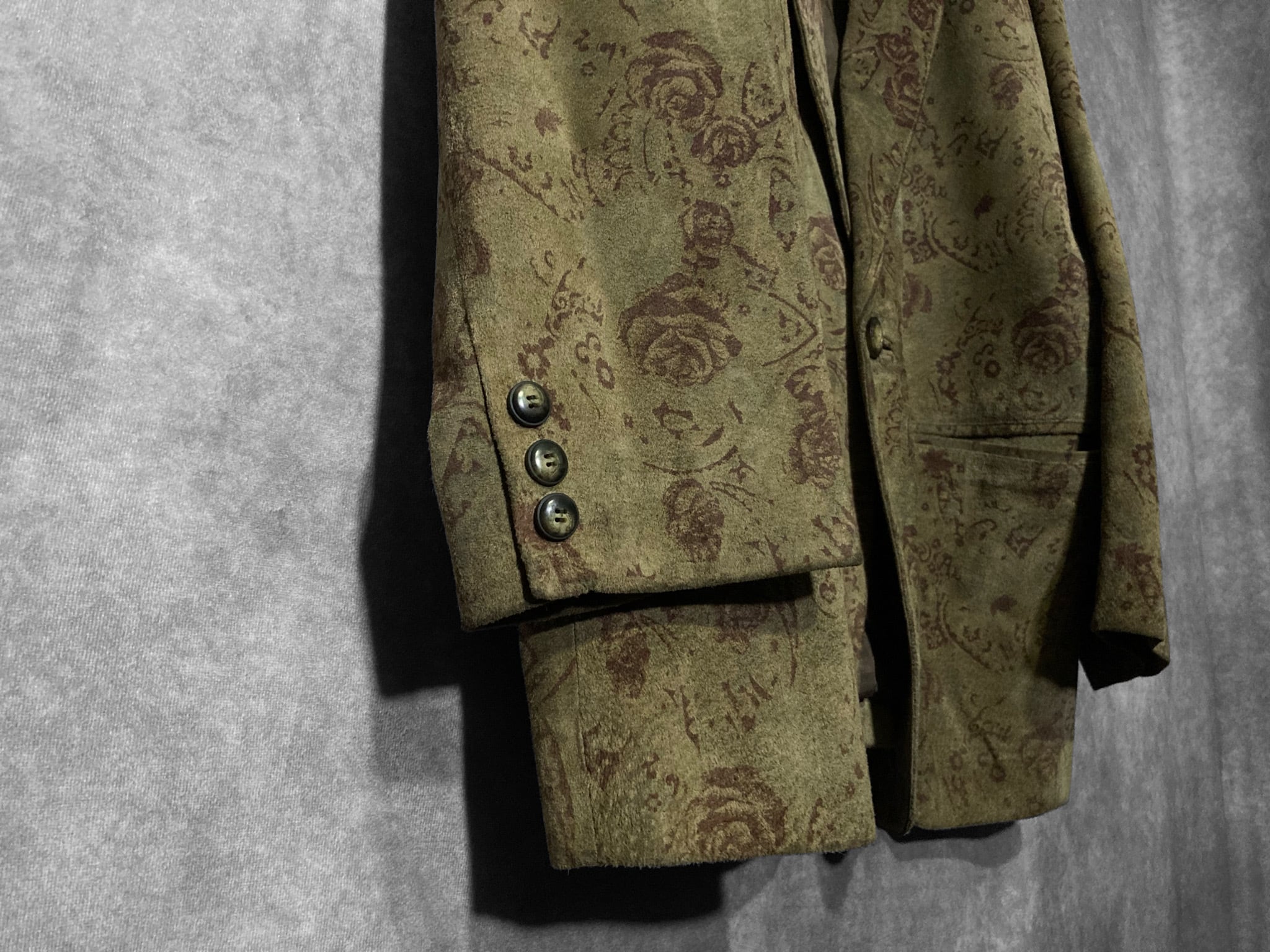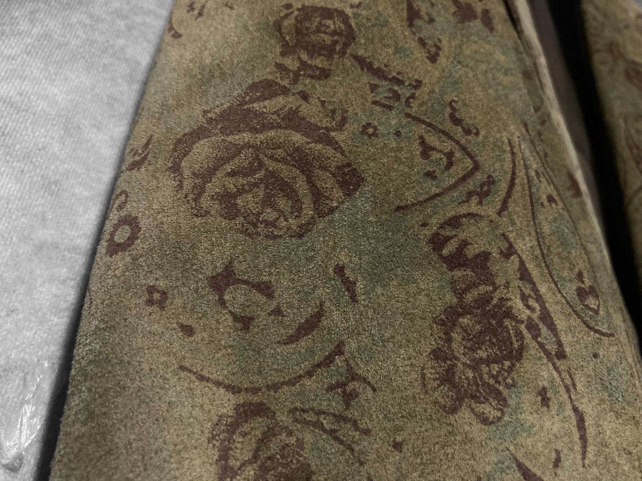 全面に薔薇の総柄がデザインされており、ヴィンテージ特有の掠れた総柄のデザインともともとのスウェードレザー(本革)の風合いと相まって玄人的な雰囲気が醸しだされた唯一無二の逸品です。