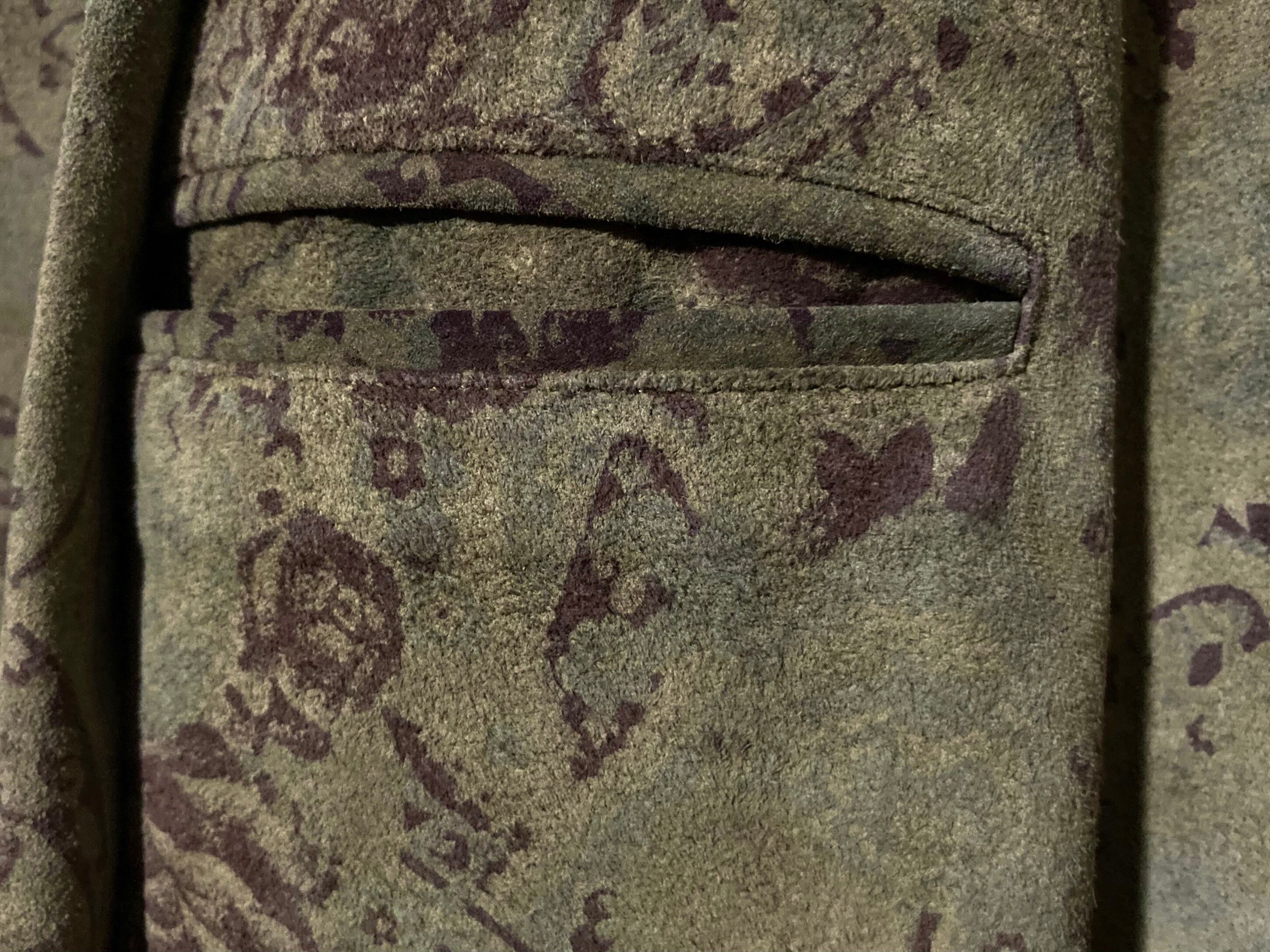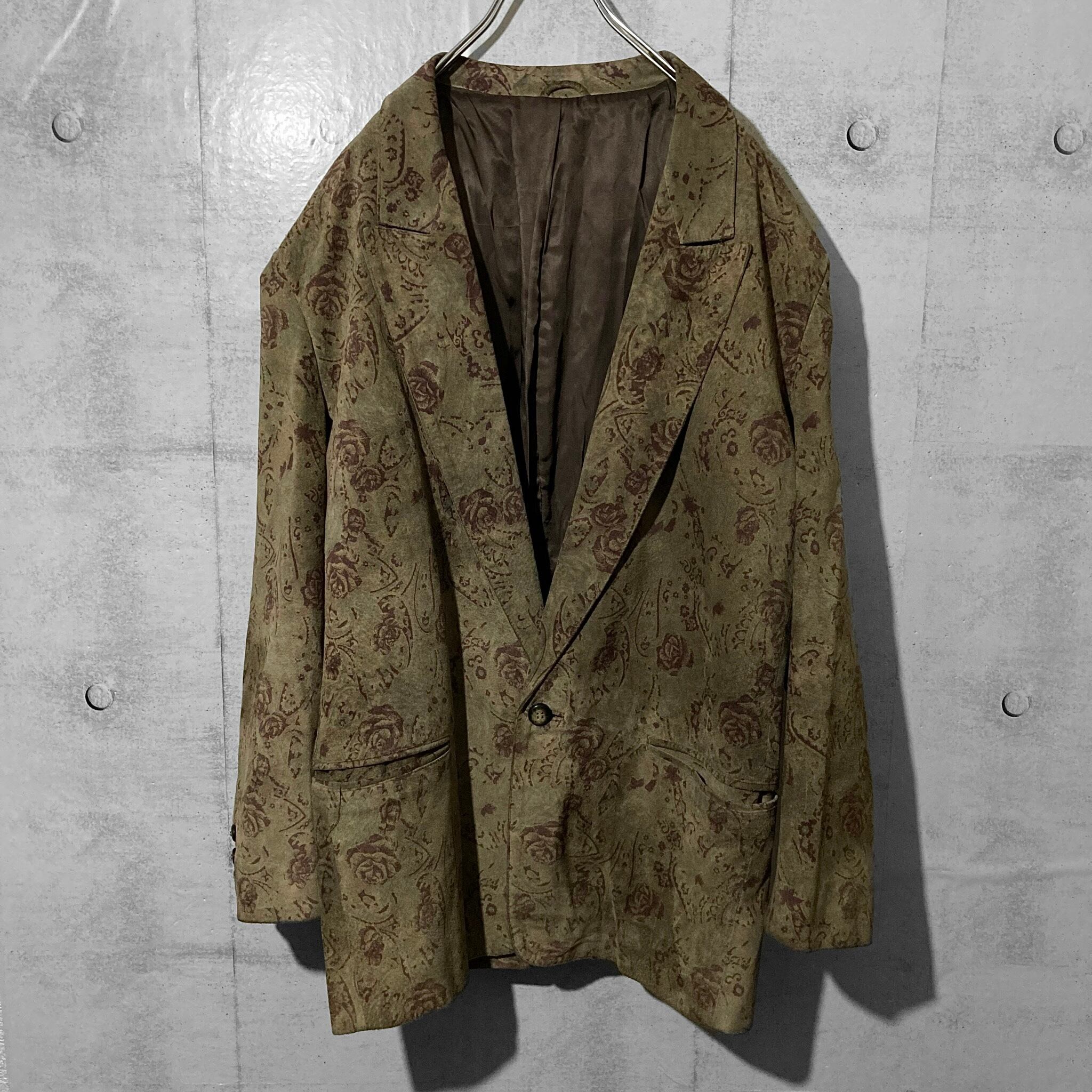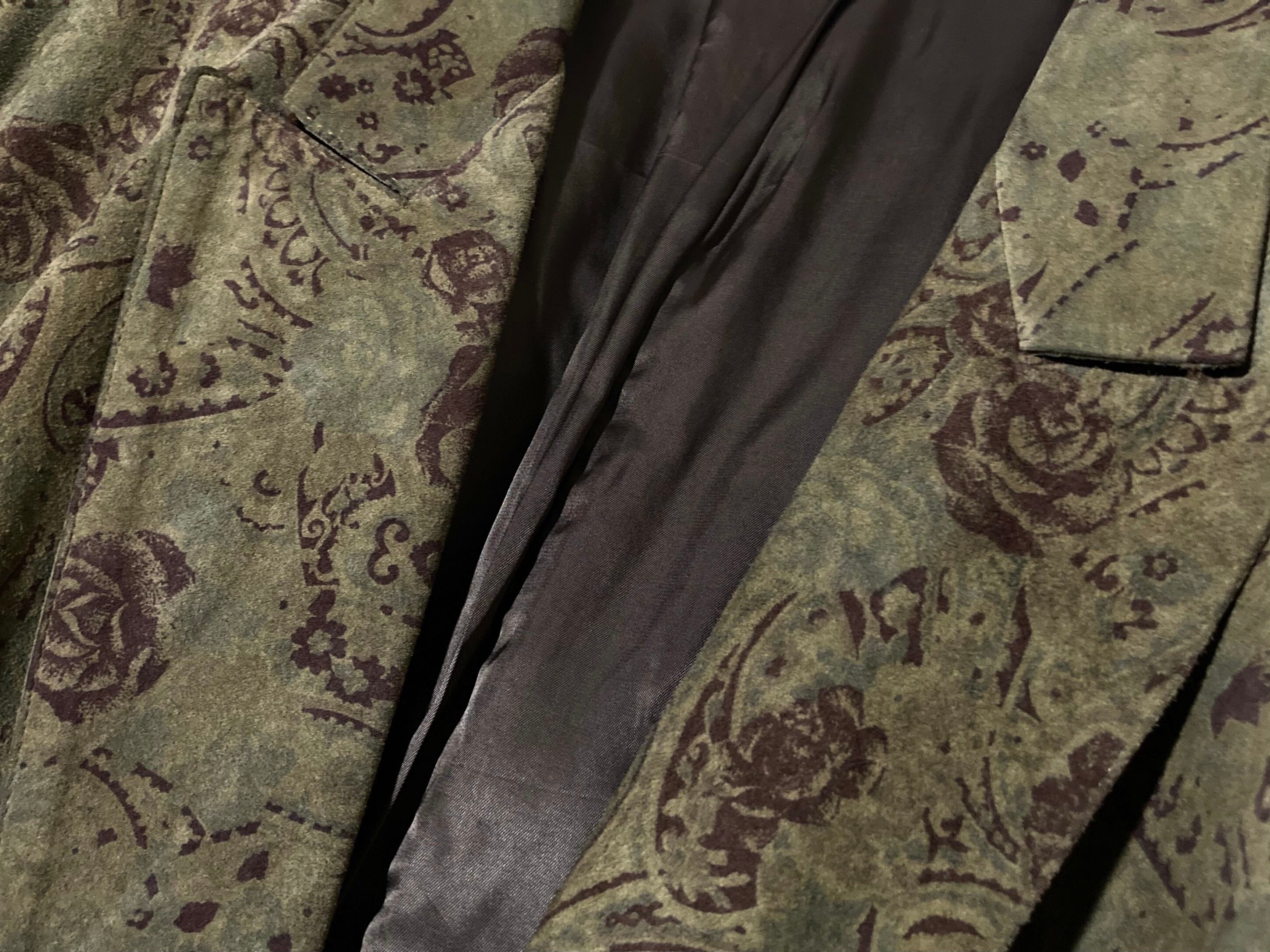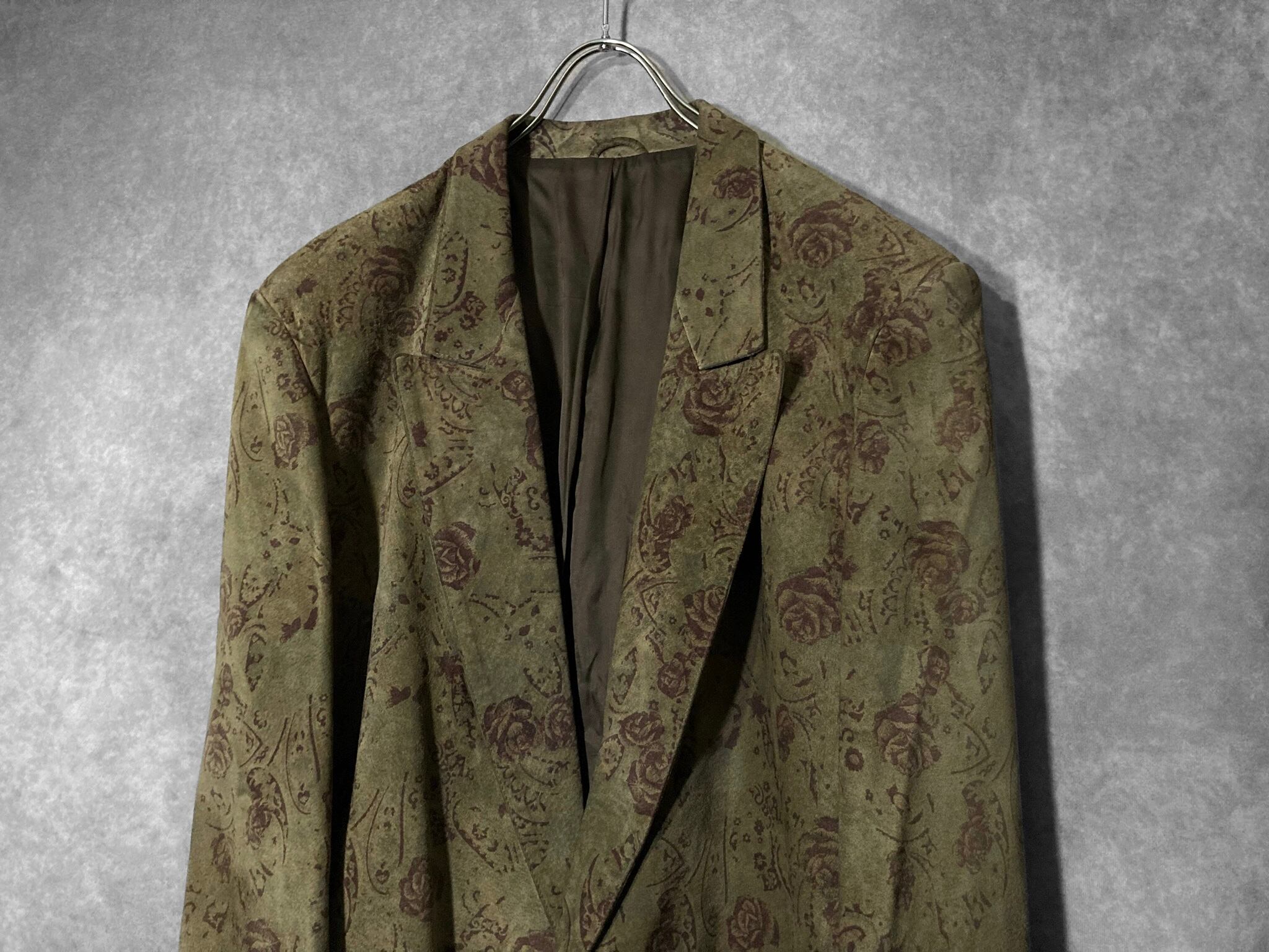 全面に薔薇の総柄がデザインされており、ヴィンテージ特有の掠れた総柄のデザインともともとのスウェードレザー(本革)の風合いと相まって玄人的な雰囲気が醸しだされた唯一無二の逸品です。