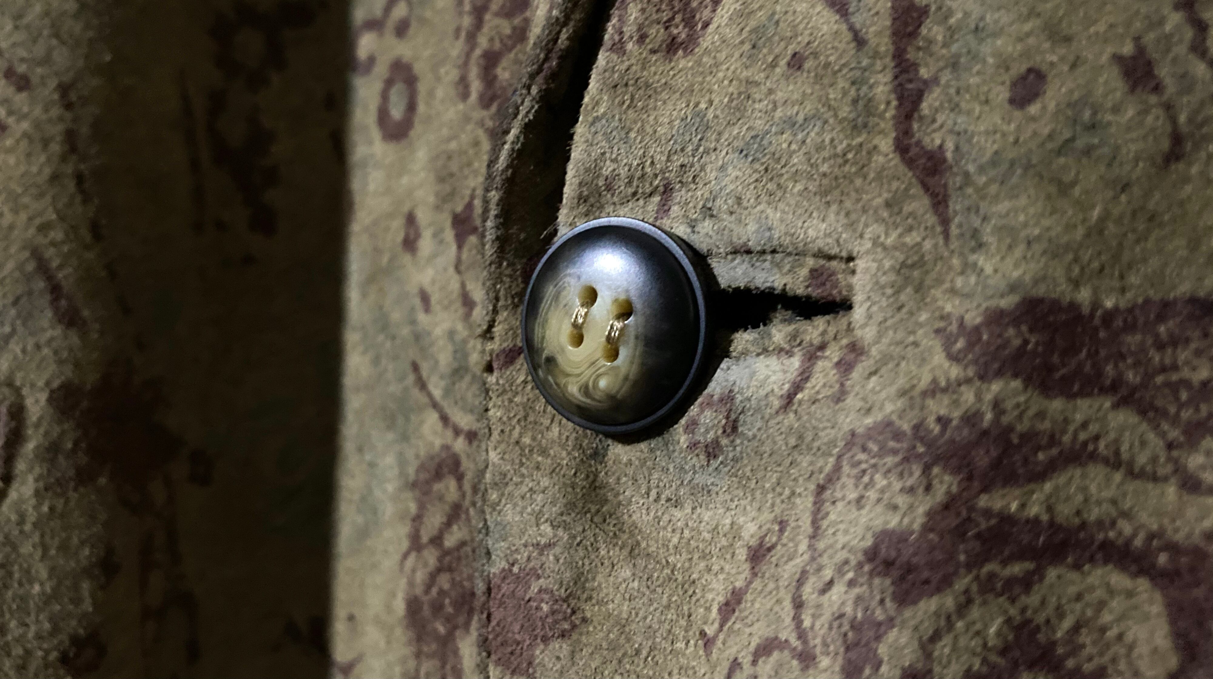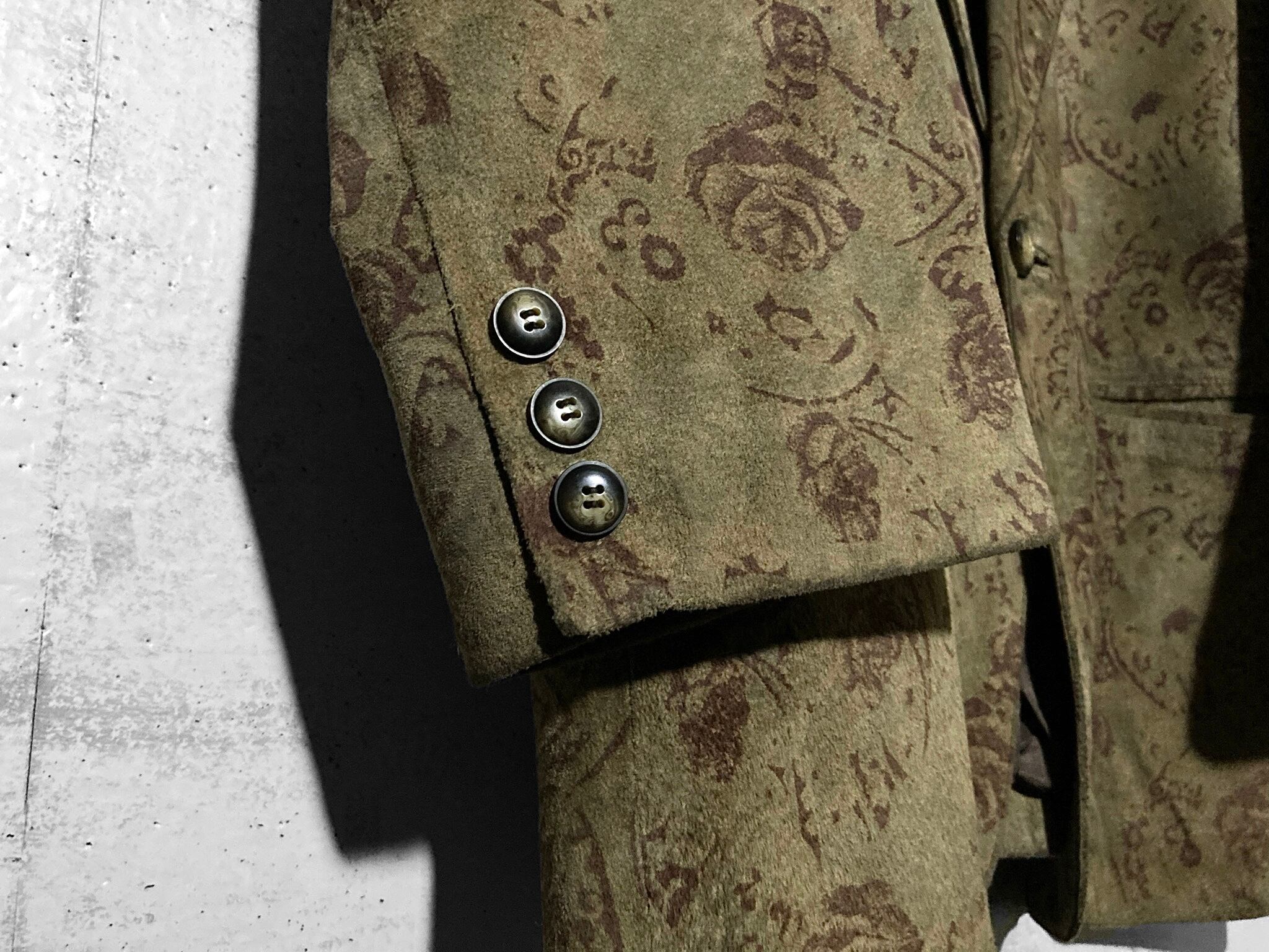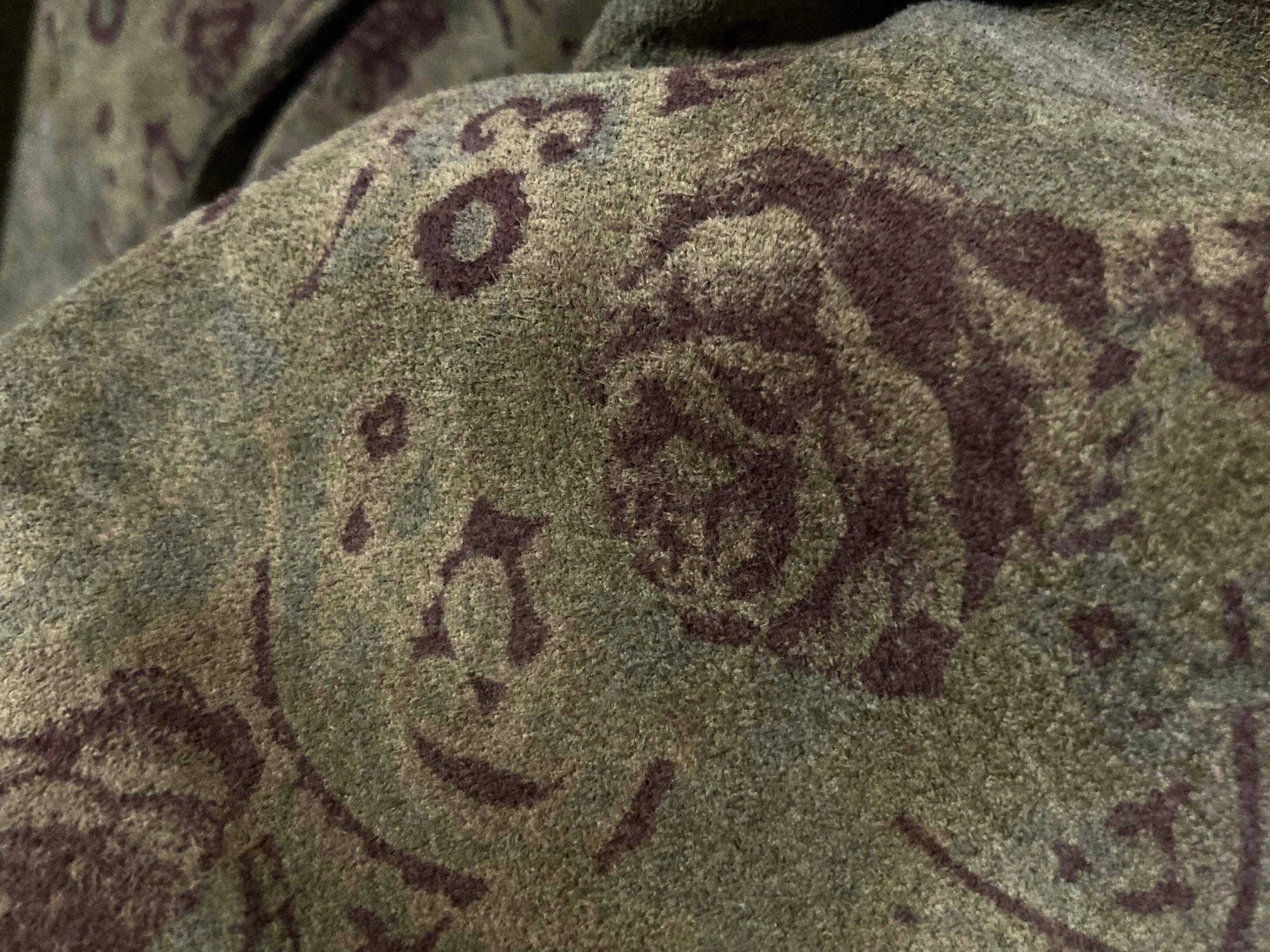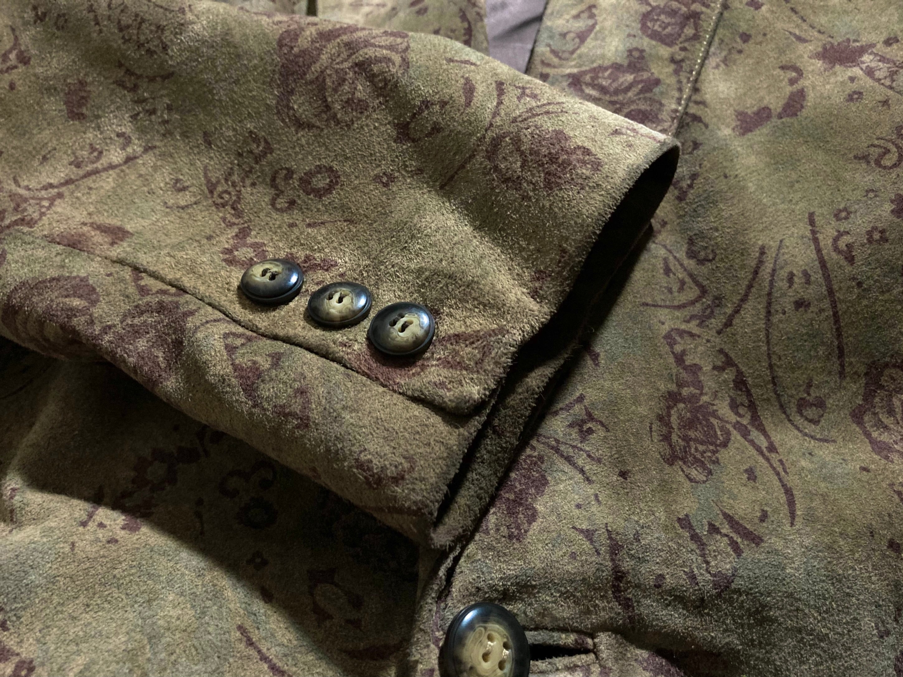 全面に薔薇の総柄がデザインされており、ヴィンテージ特有の掠れた総柄のデザインともともとのスウェードレザー(本革)の風合いと相まって玄人的な雰囲気が醸しだされた唯一無二の逸品です。