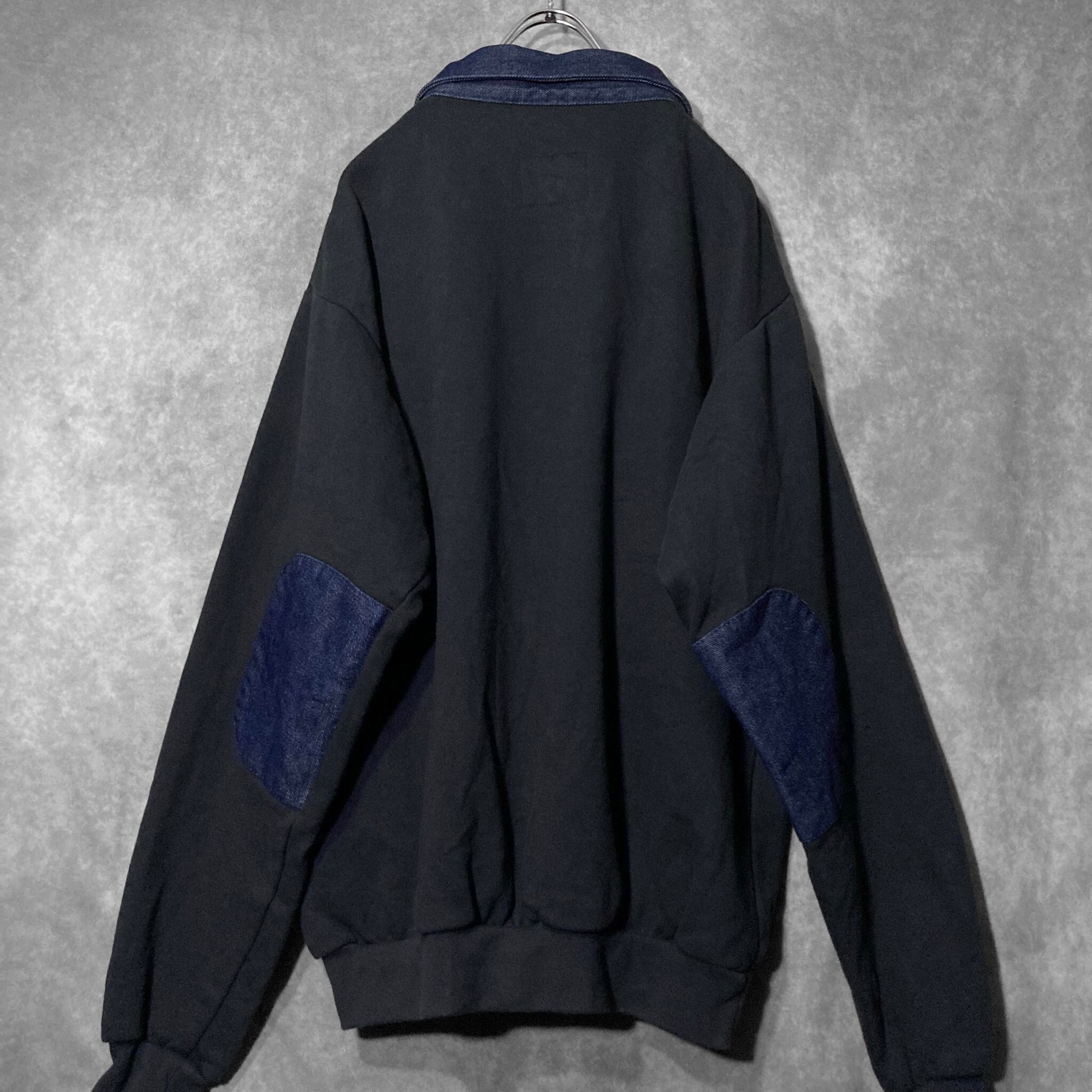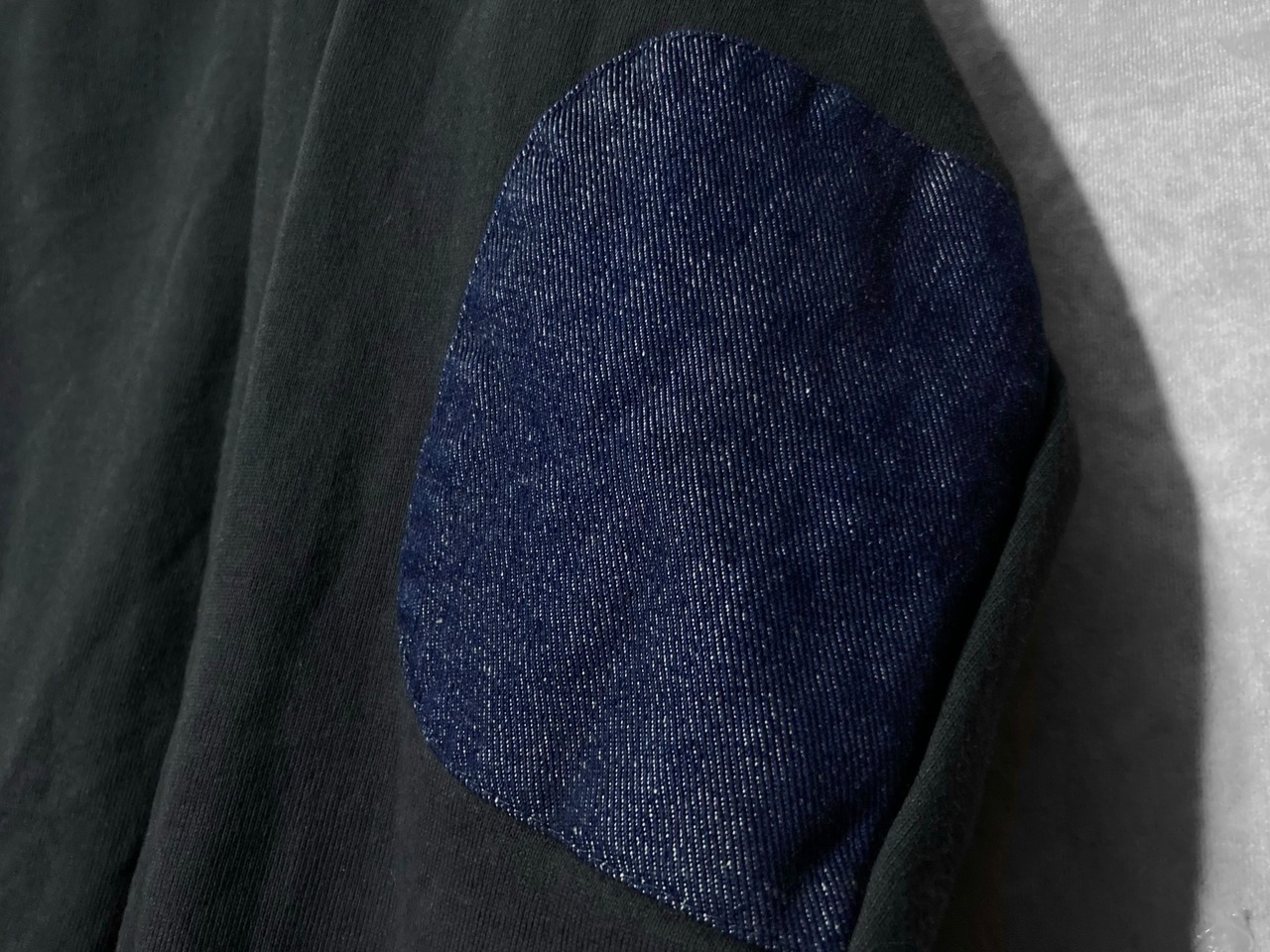 控えめに洗いをかけデニム特有の硬さを残したウォッシュデニムで切り替えた襟とエルボーパッチが印象的なハーフジップのプルオーバー。