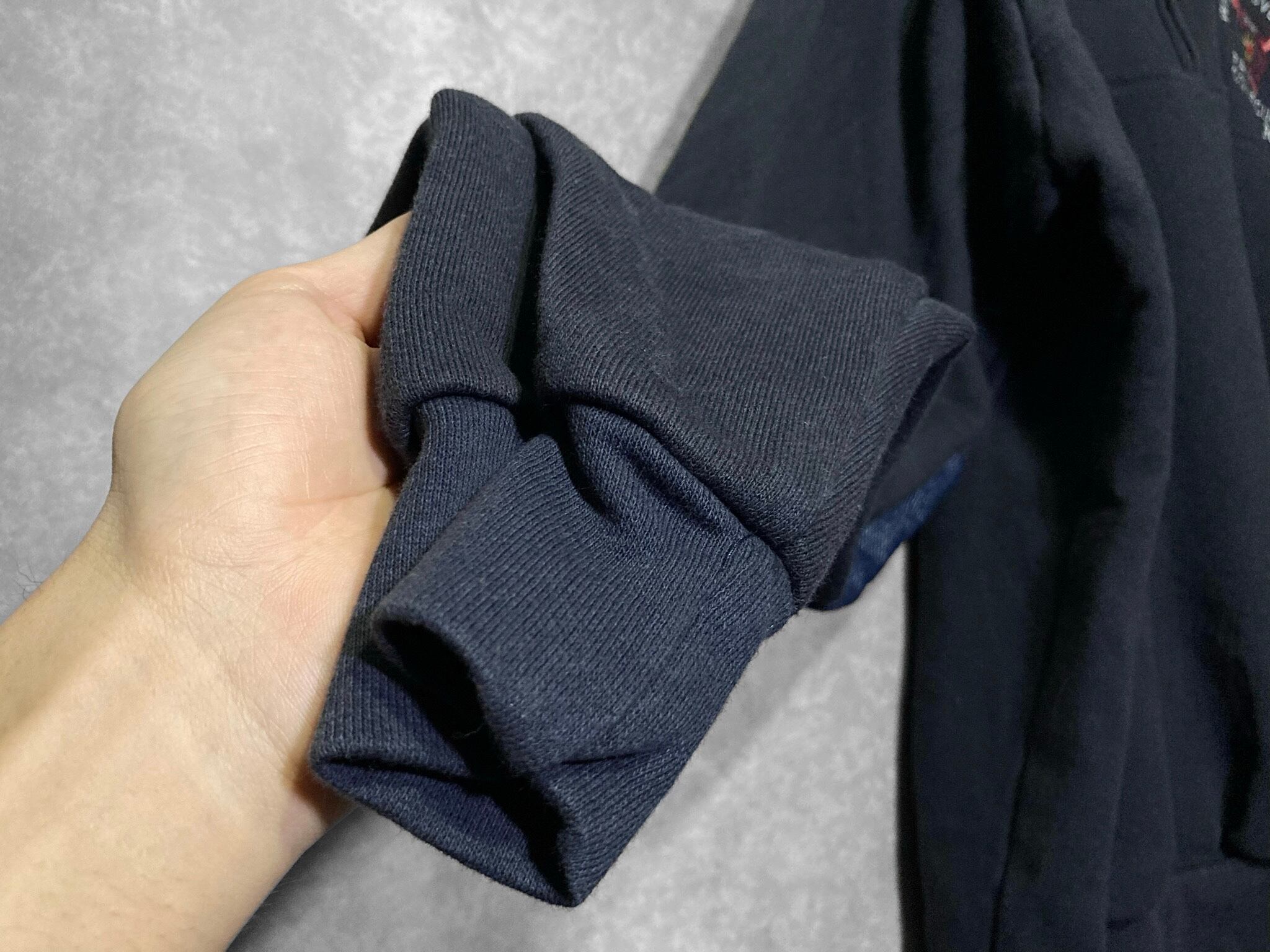 スウェット生地のハーフジッププルオーバーなので春秋冬とシーズンレスで着ることができ、頭からガバッと被って着てほしいイチ推しの1着です。ハーフジップはとても人気なので是非。