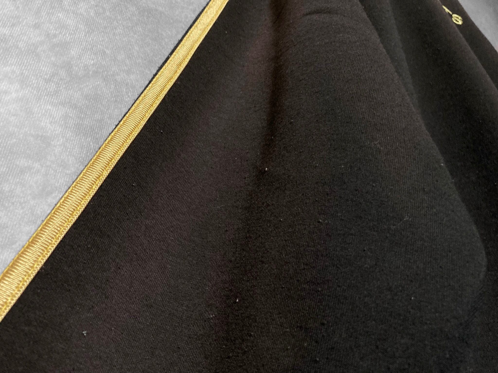 肉厚で柔らかいポリエステルとコットンの混紡スウェット素材の生地のディテールは、トラックジャケットに多いポリエステルジャージ素材の物とは違って重厚感があり、カジュアルでモダンな佇まい。