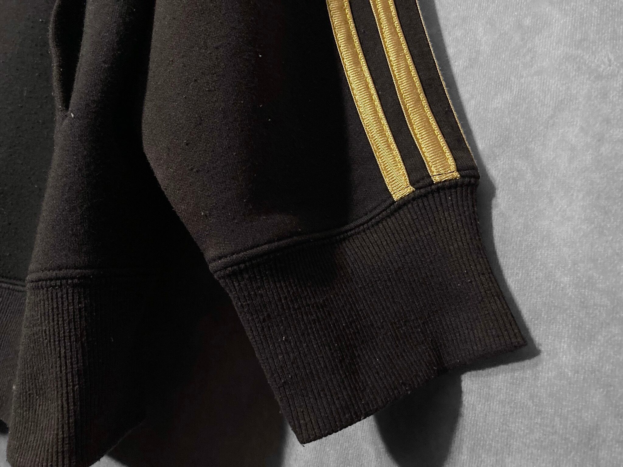 adidasのアイコンであるストライプは素材感の光沢と相まって嫌味のないラグジュアリーなゴールドを演出し、一際存在感を放つデザイン。