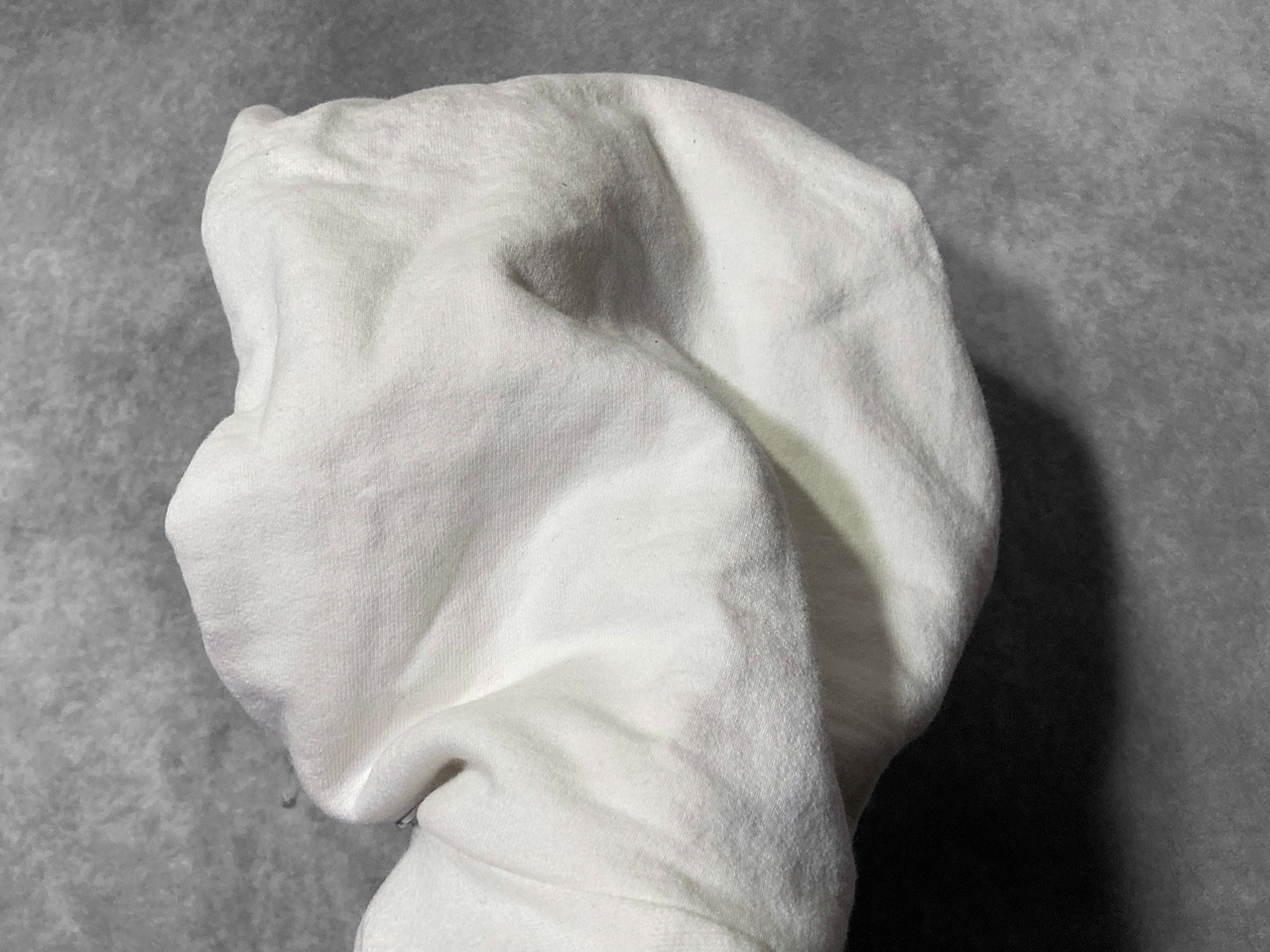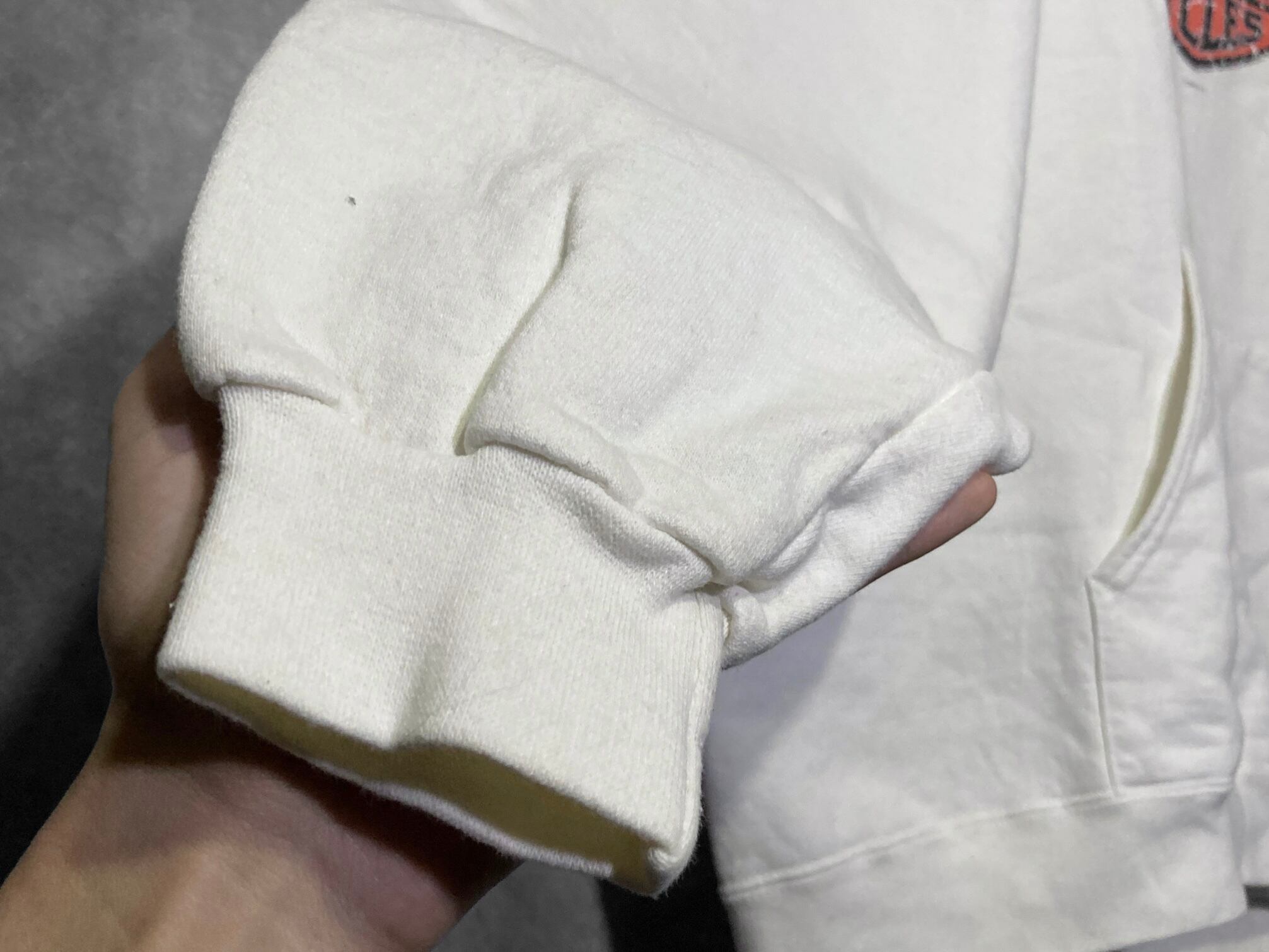 ヴィンテージ風の擦れたロゴプリントが存在感を放つホワイトのオーバーサイズフーディーが入荷。