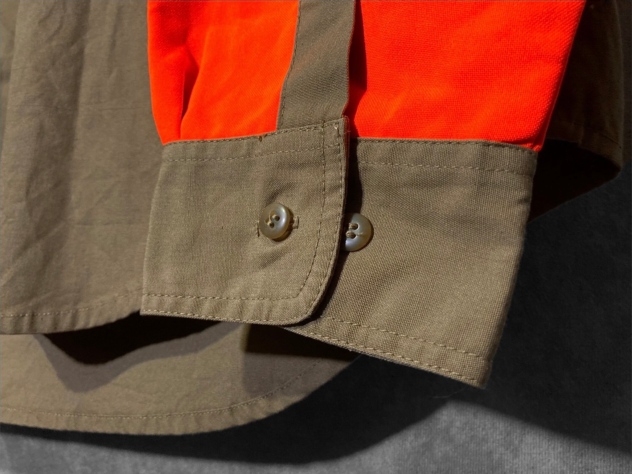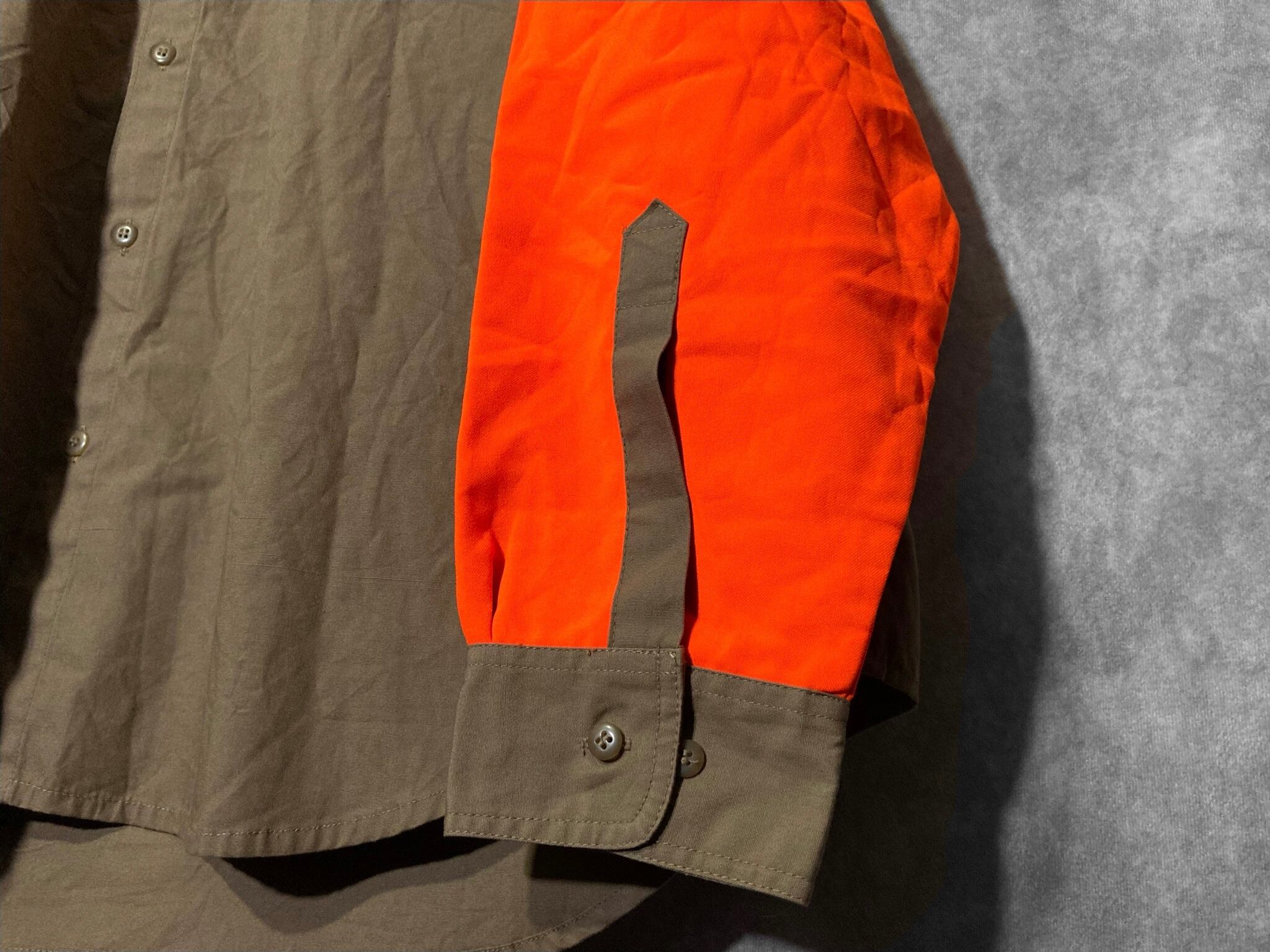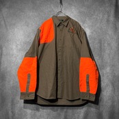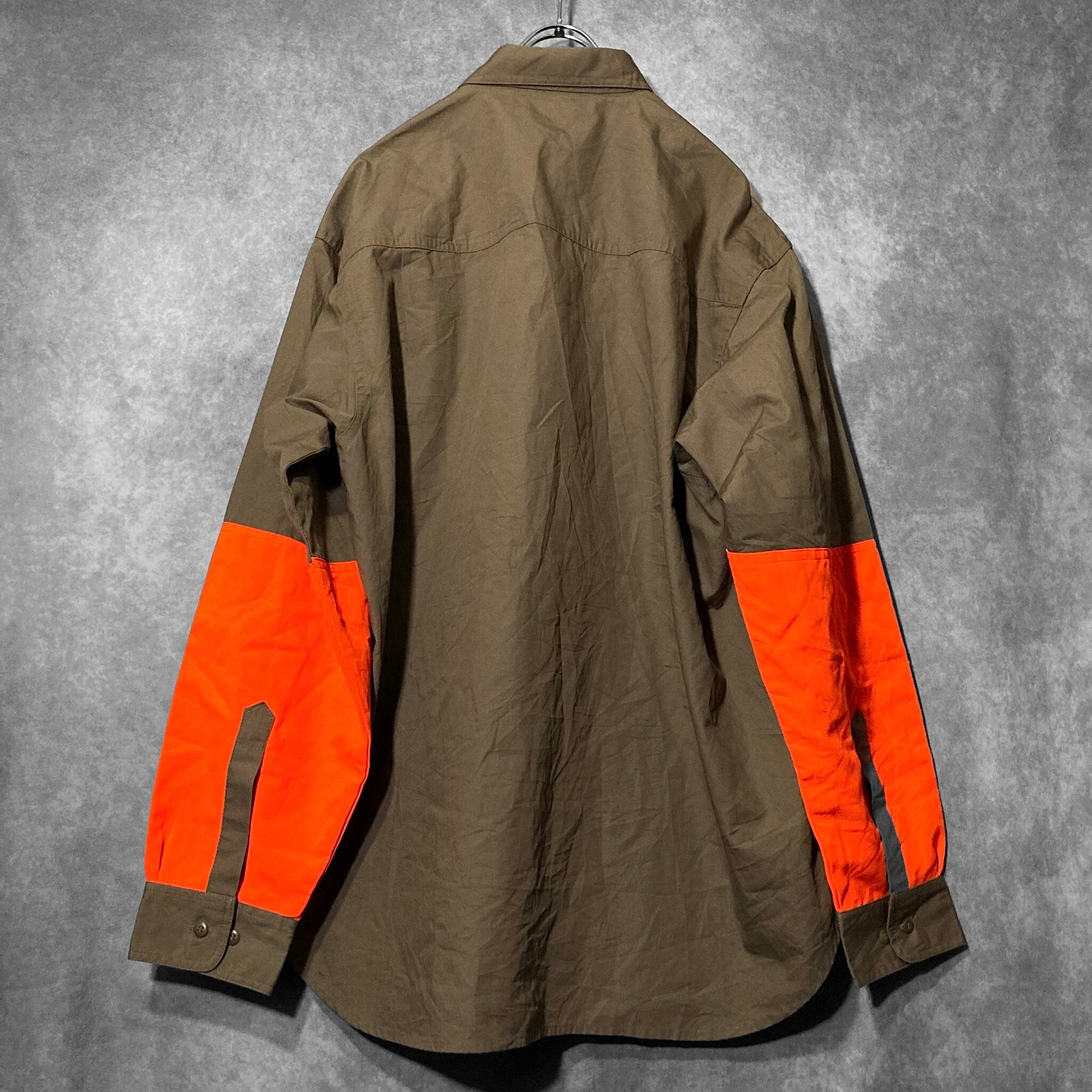 WOOD FIElD, XXL vivid orange color patchwork design switching L/S shirt
