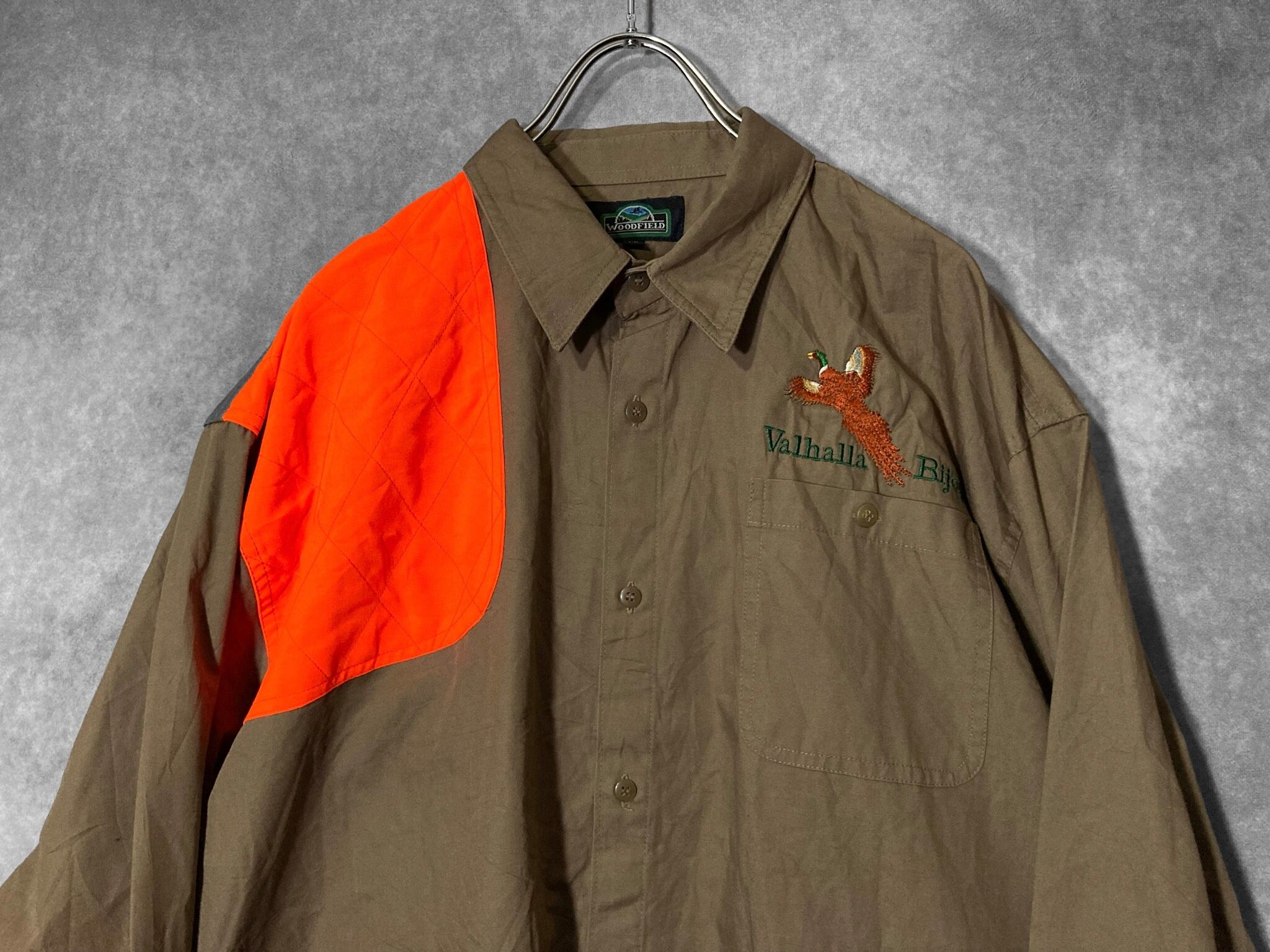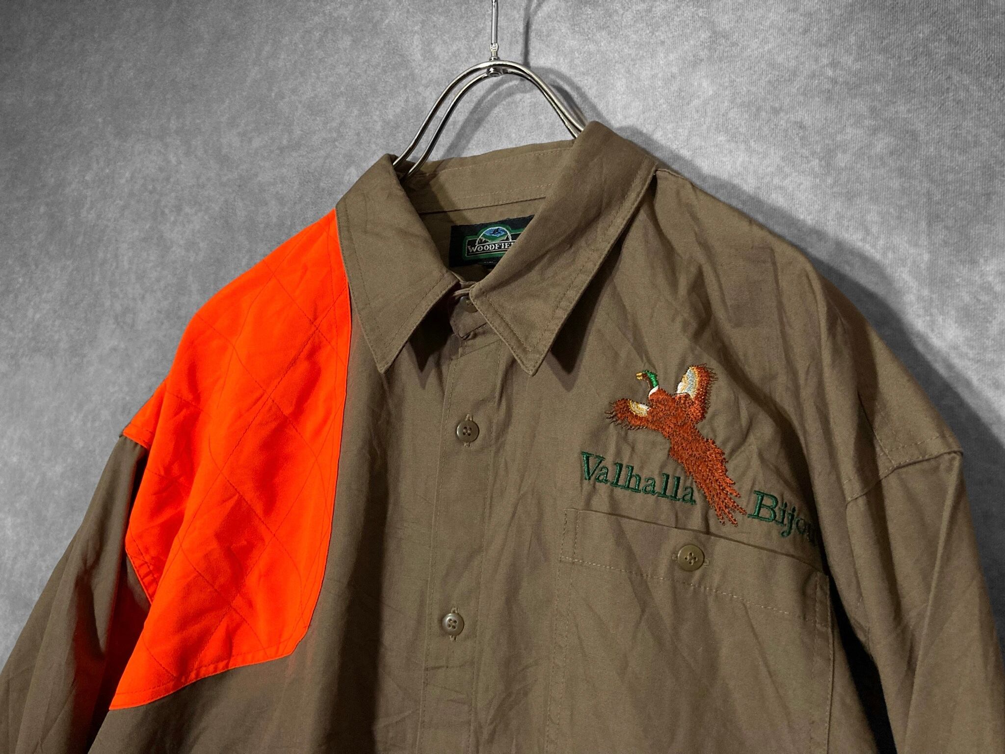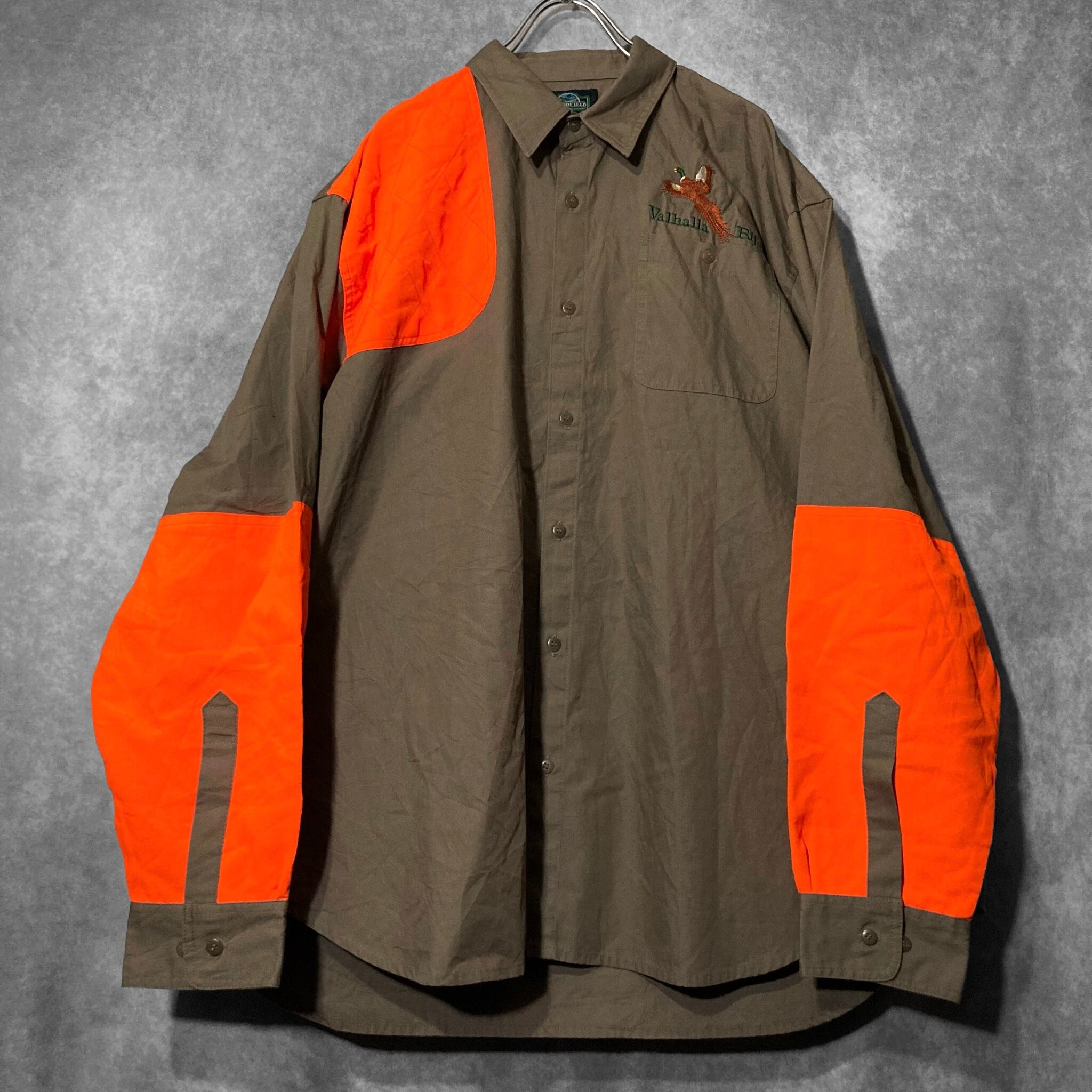 WOOD FIElD, XXL vivid orange color patchwork design switching L/S shirt