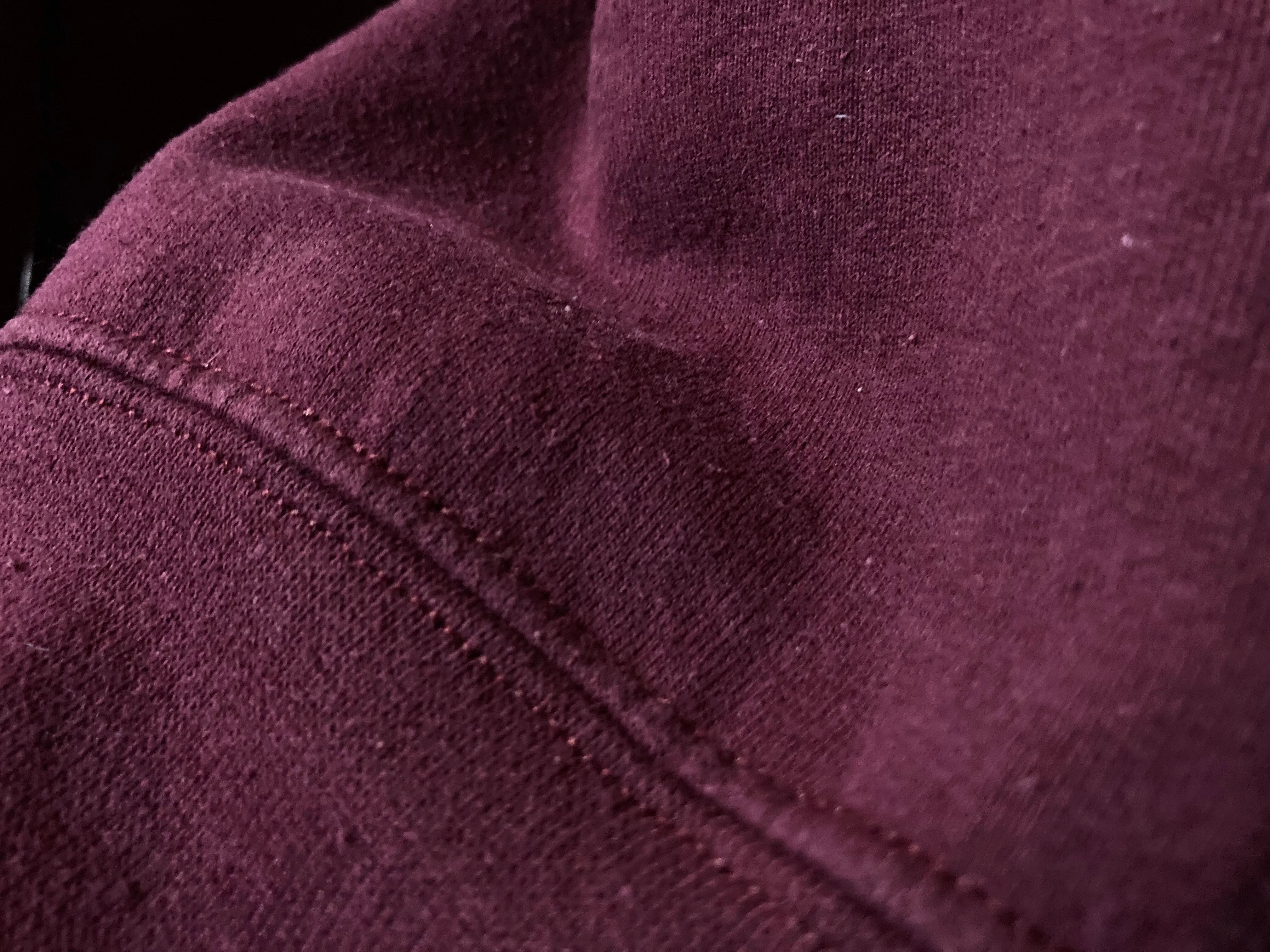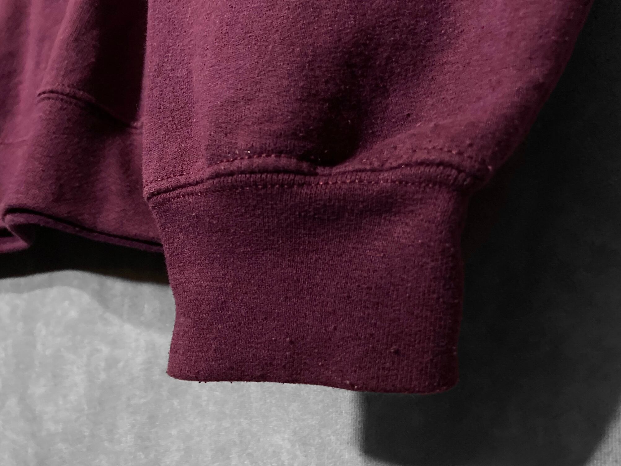 柔らかいコットン(綿)/ ポリエステル混紡のスウェットの生地で、US古着らしいゆったりとしたシルエットのディテール。