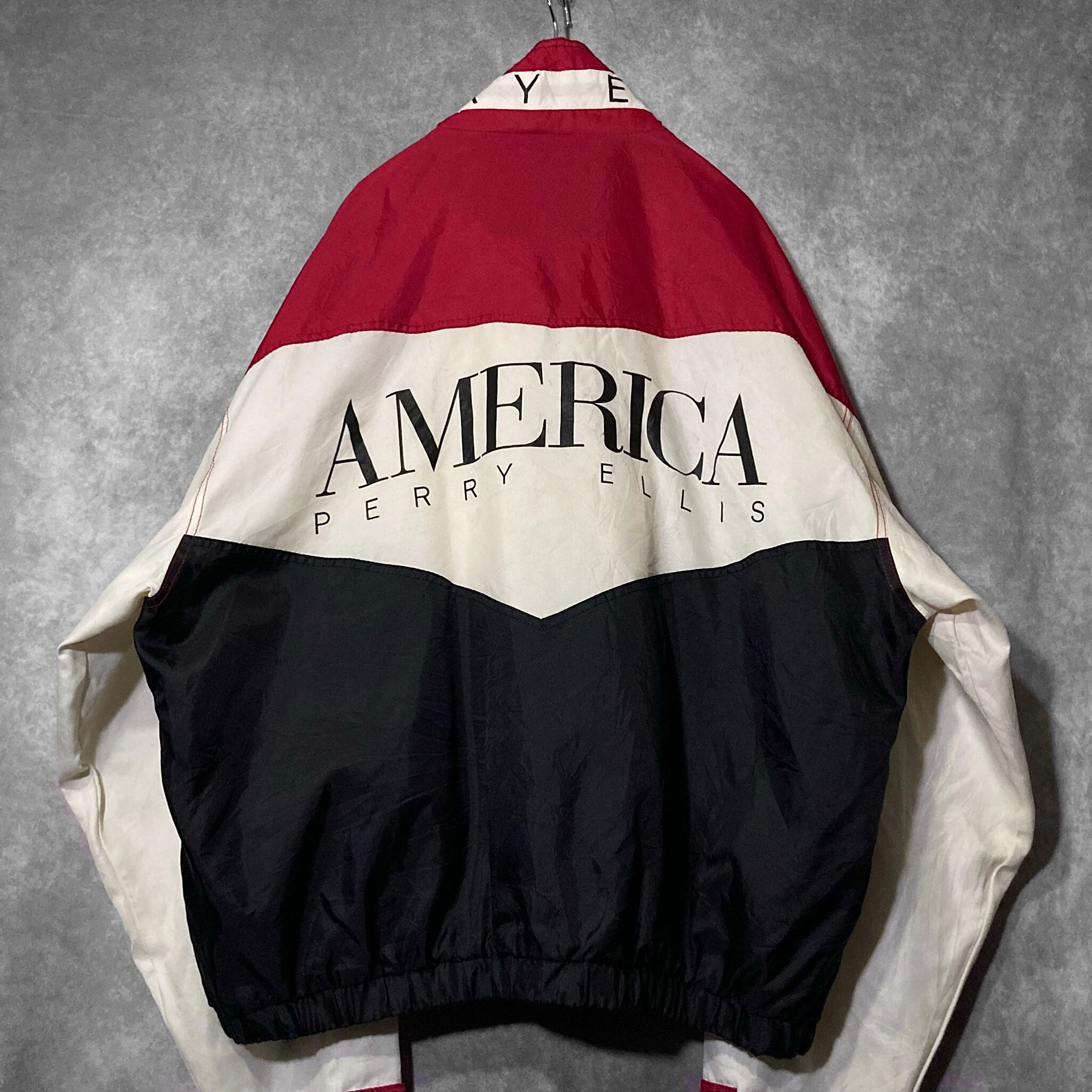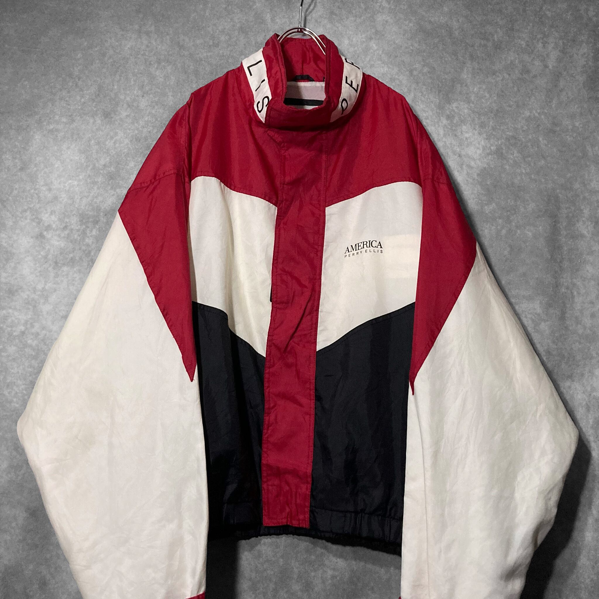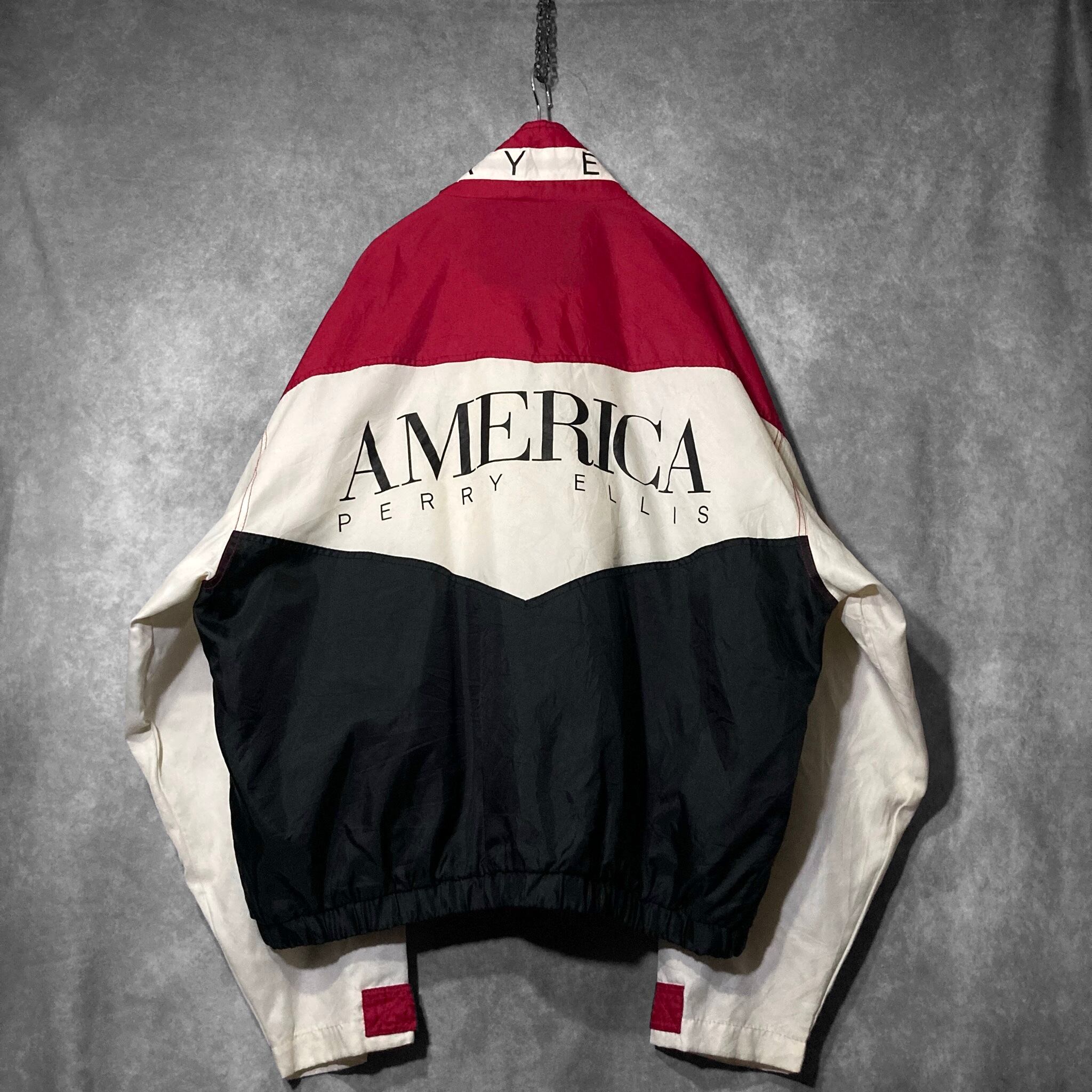 XL 90's PERRY ELLIS AMERICA, Back logo and Three color Switching vintage full-zip Nylon track jacket