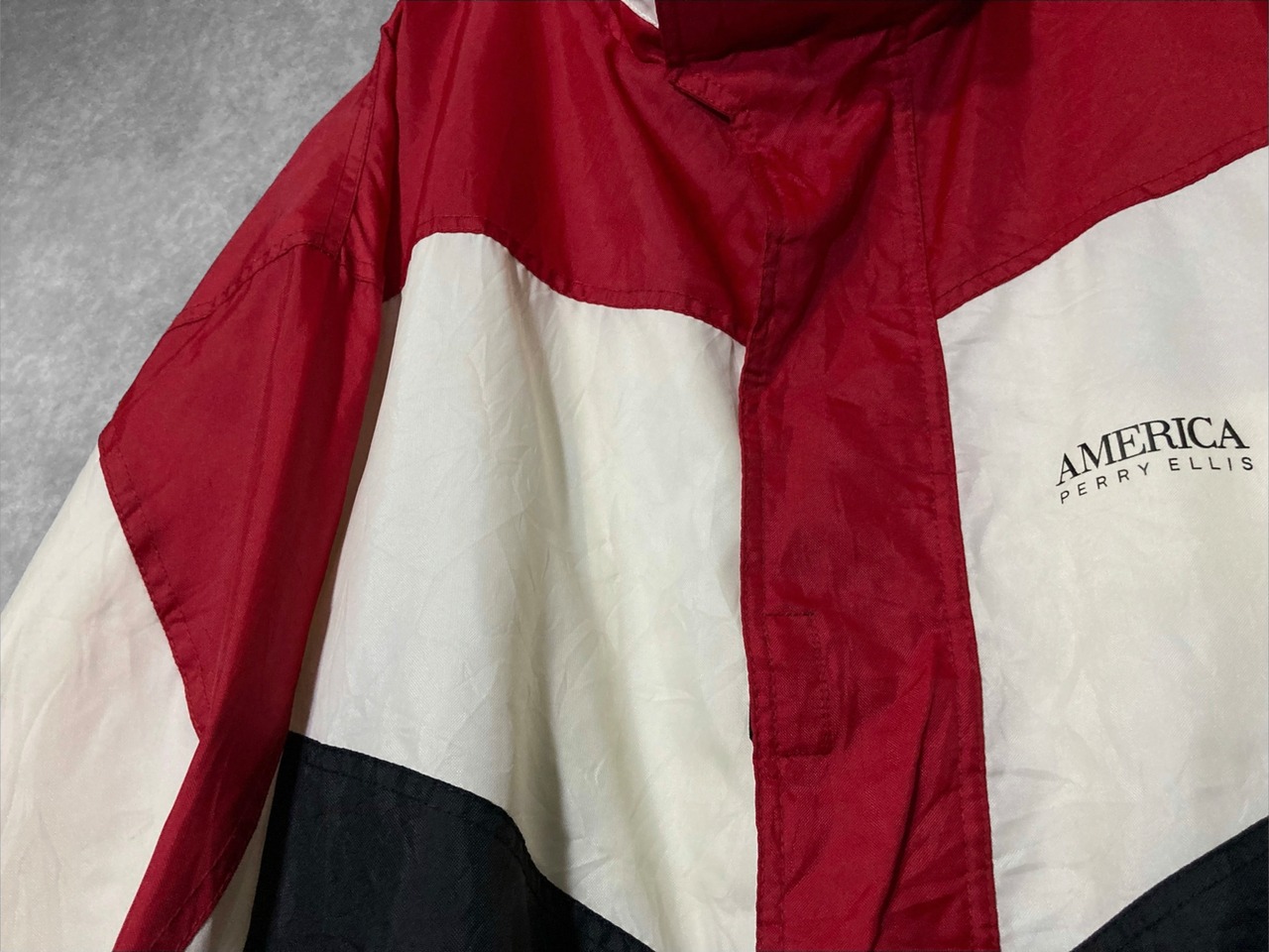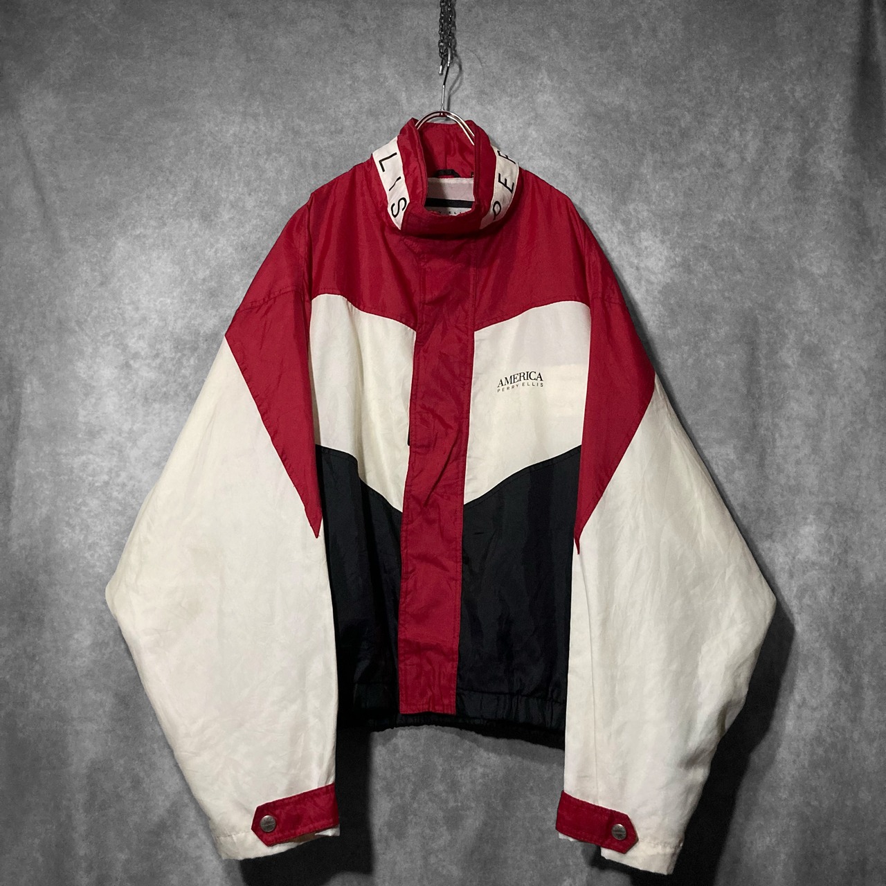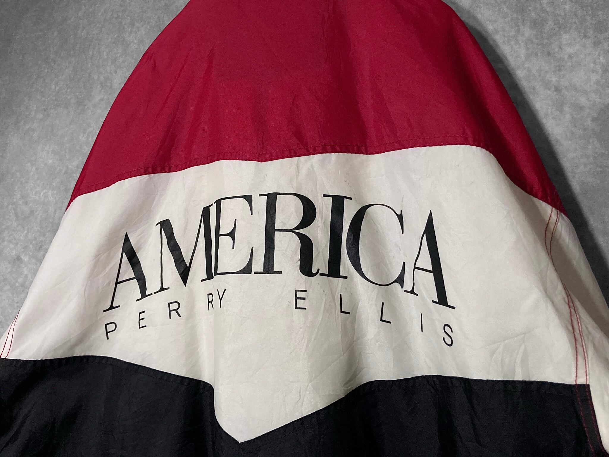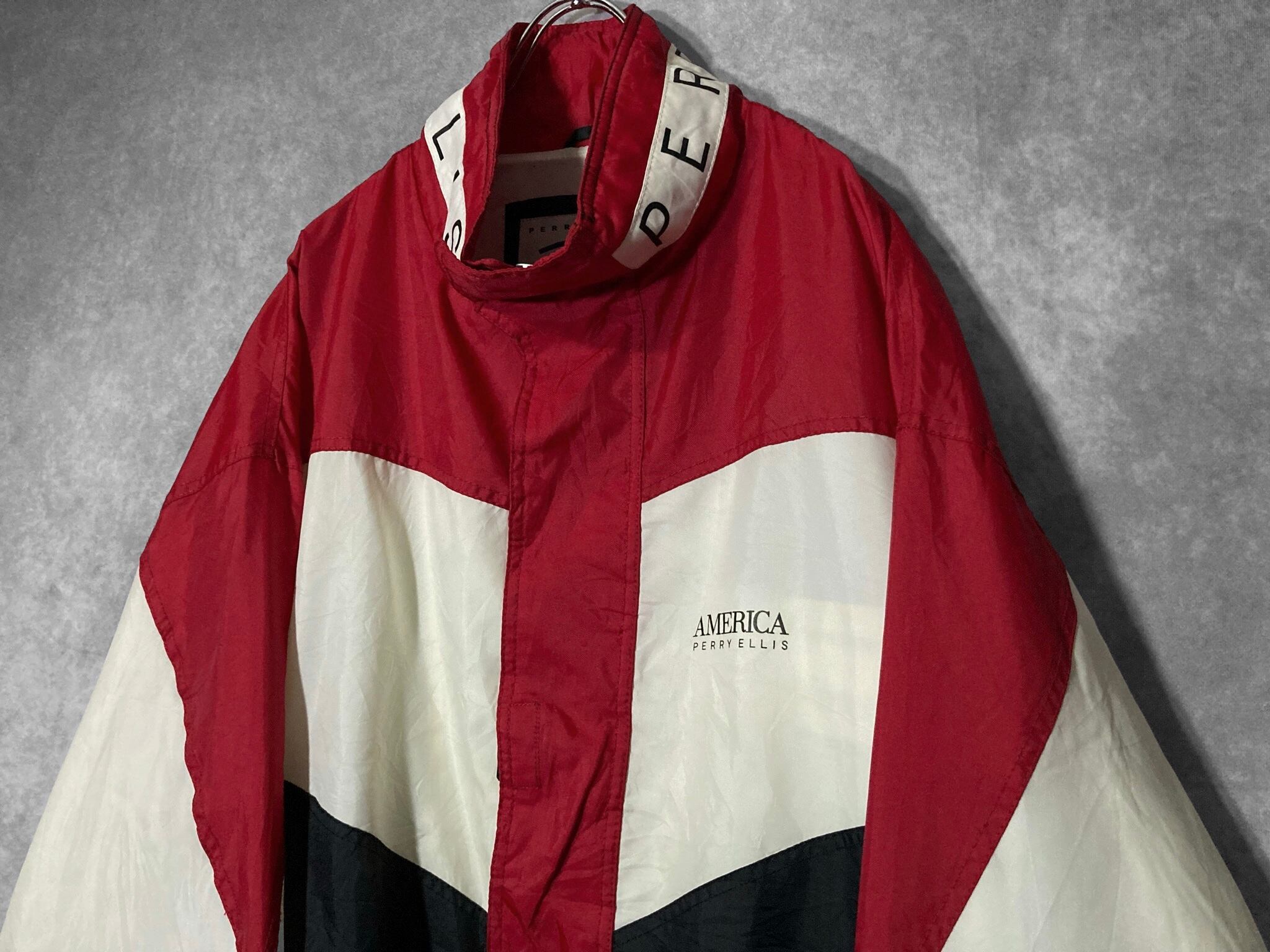 XL 90's PERRY ELLIS AMERICA, Back logo and Three color Switching vintage full-zip Nylon track jacket