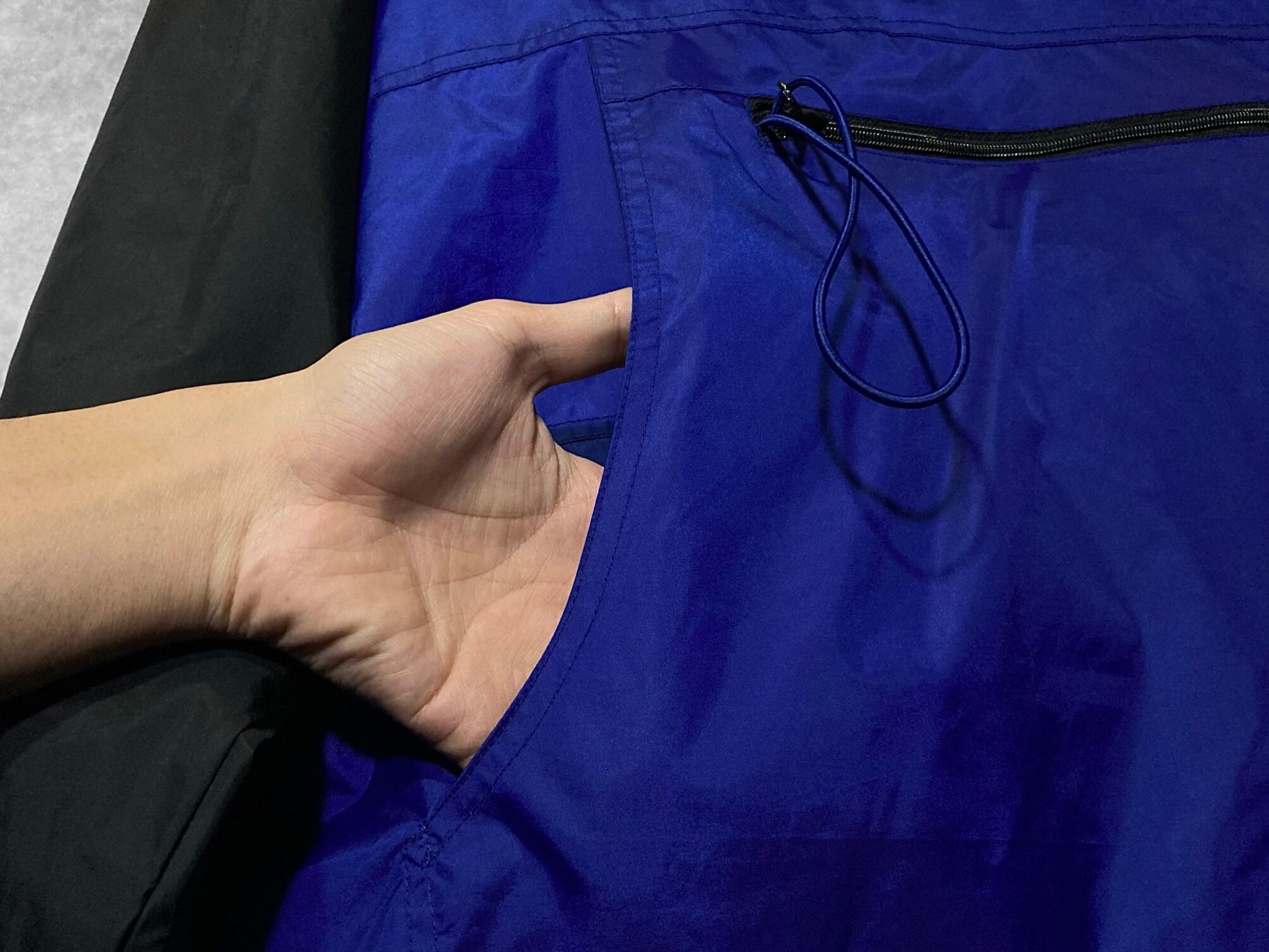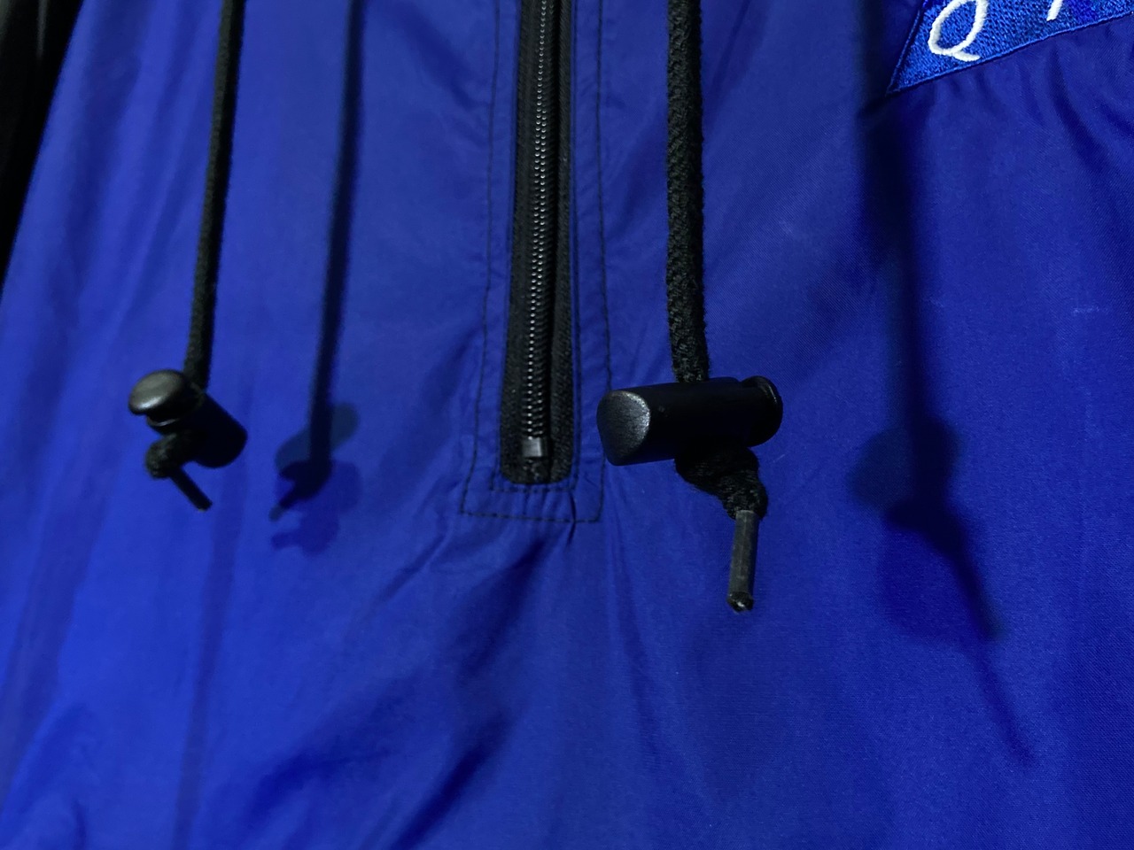 パキッとしたブルーが印象的なナイロンアノラックパーカーが入荷。