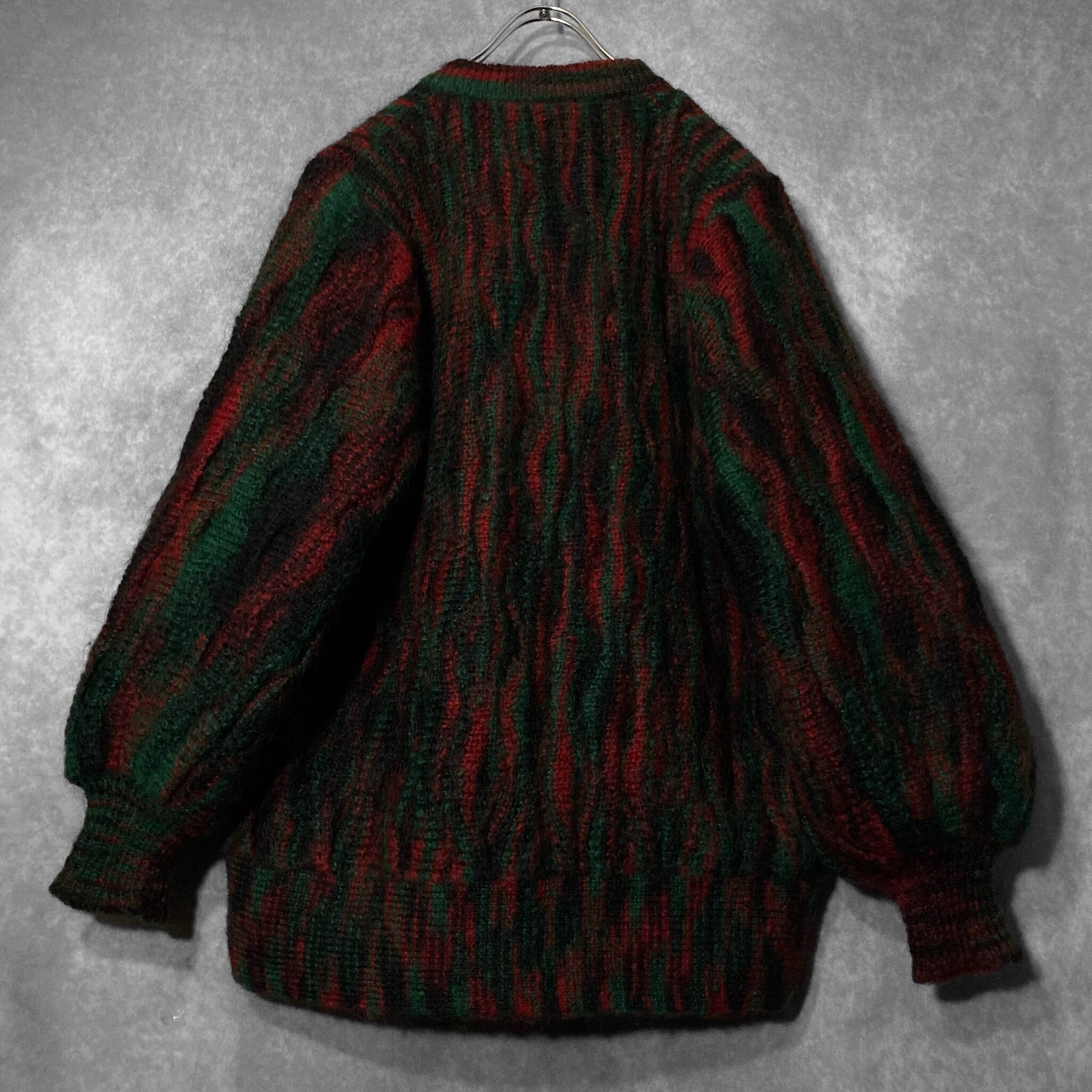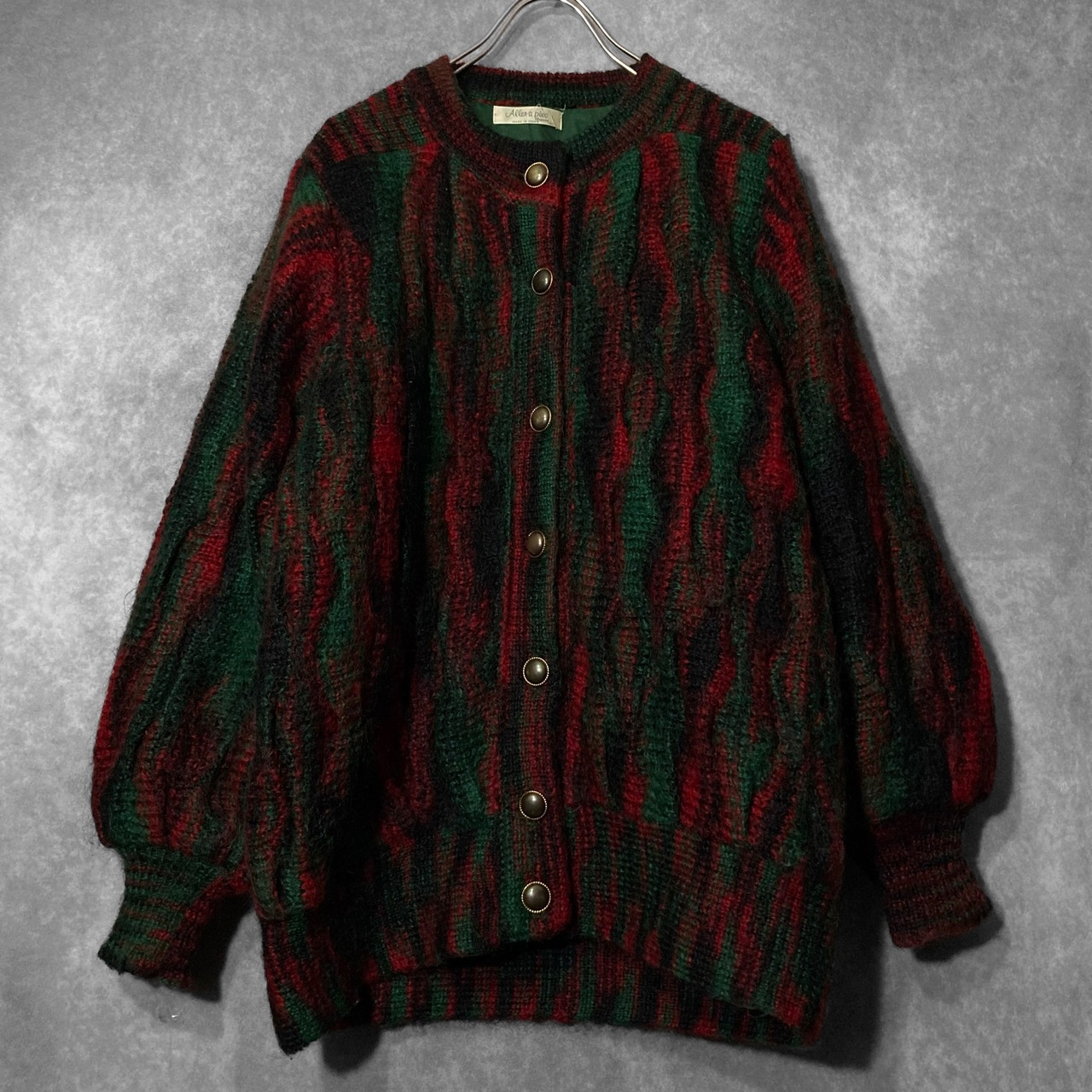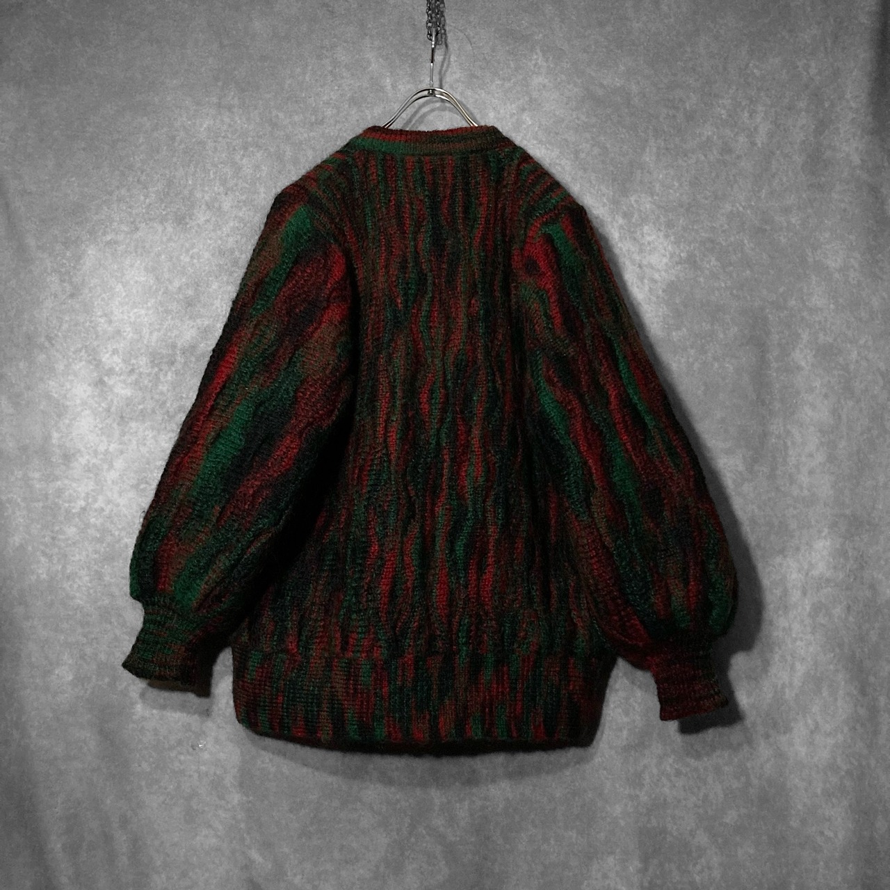 Allen a pieo, 80-90's Chaotic art pattern all over wool blend fabric knit cardigan