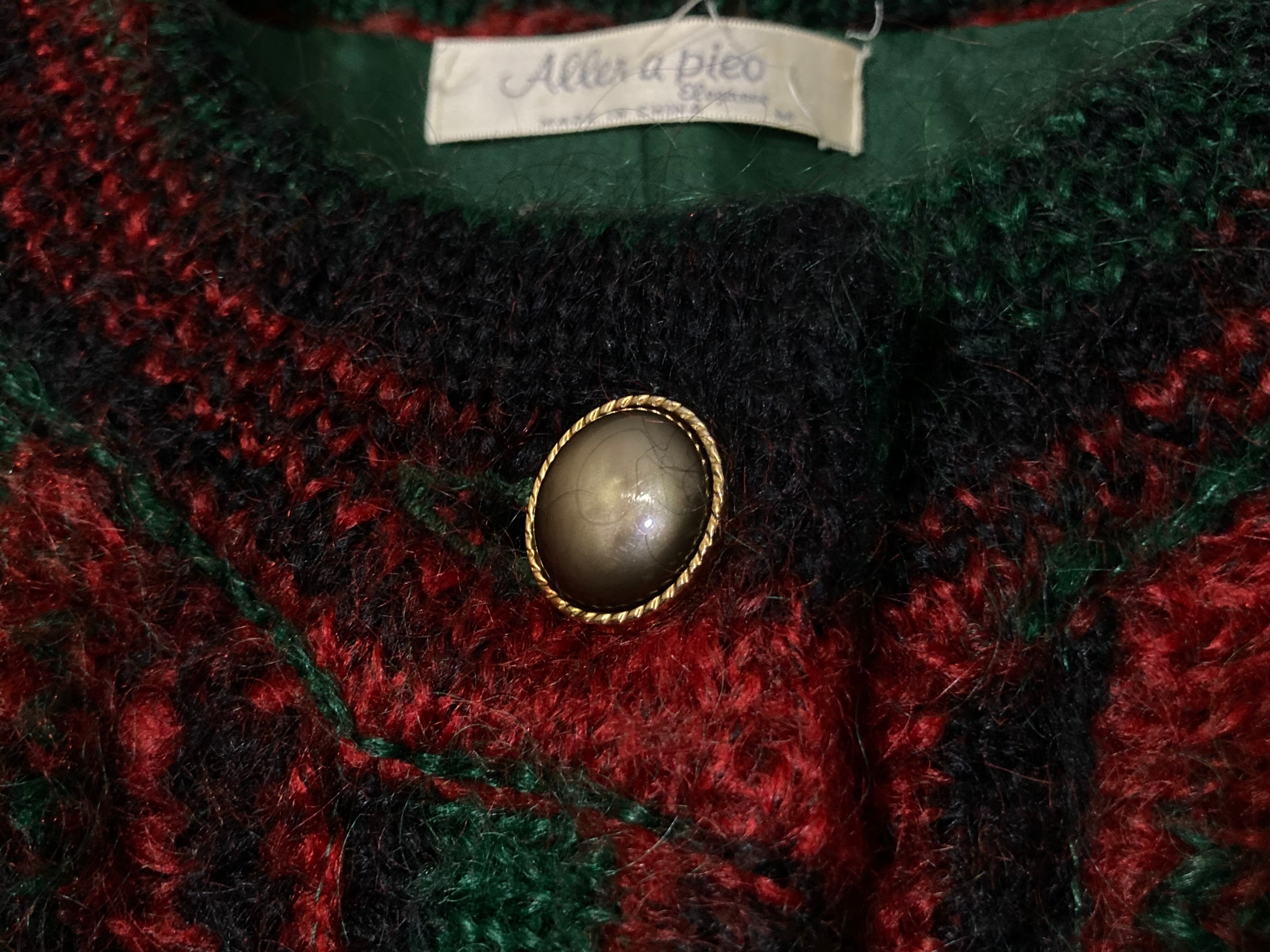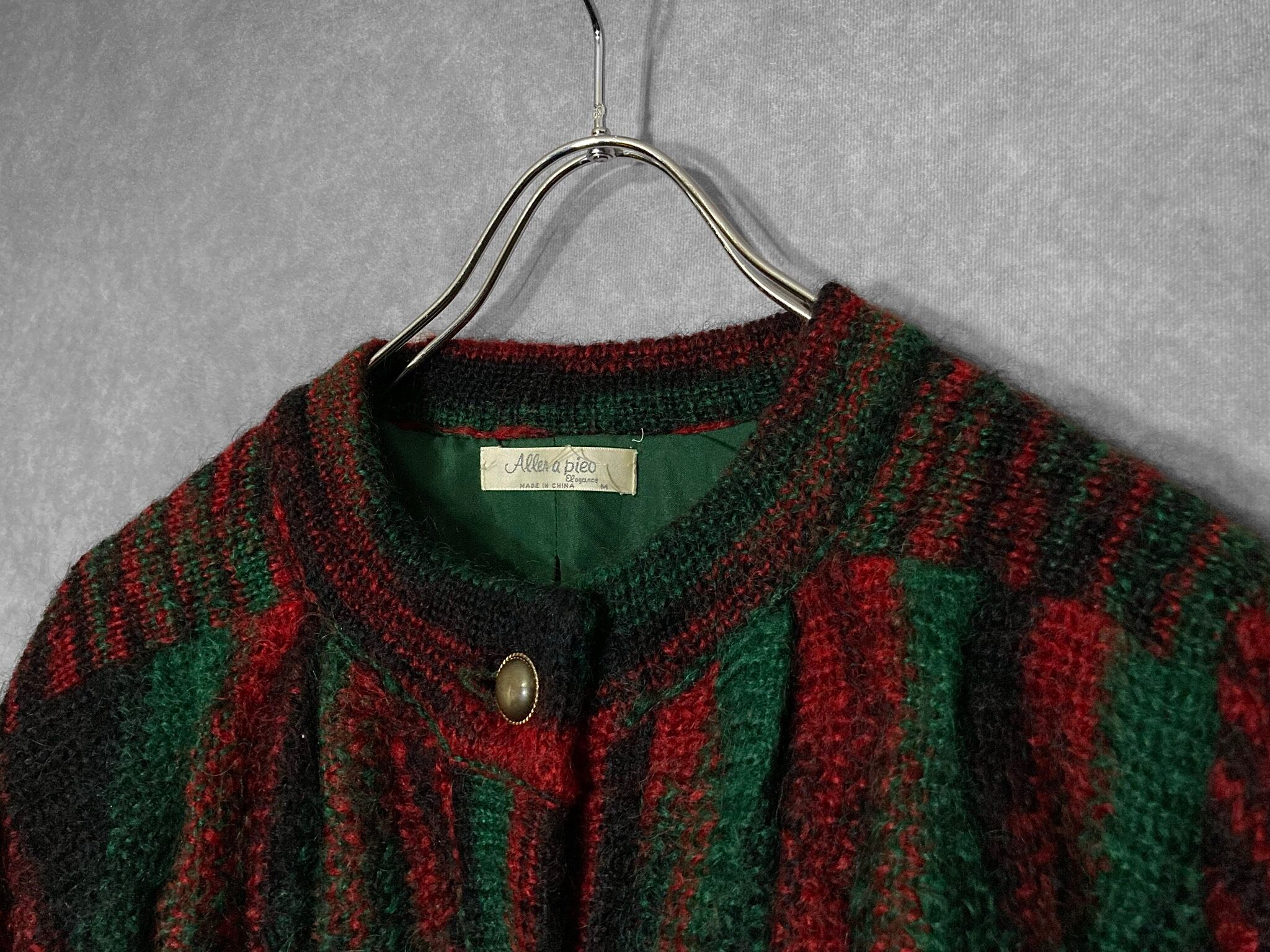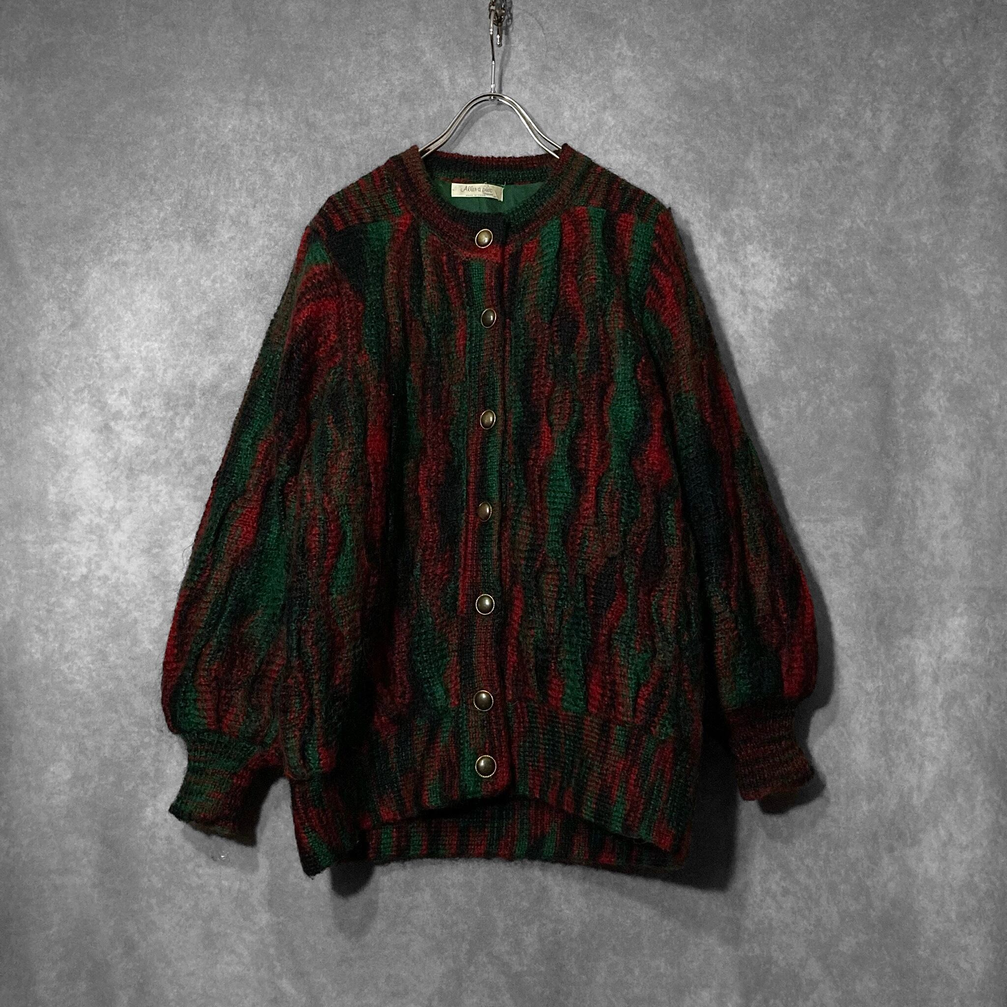 Allen a pieo, 80-90's Chaotic art pattern all over wool blend fabric knit cardigan