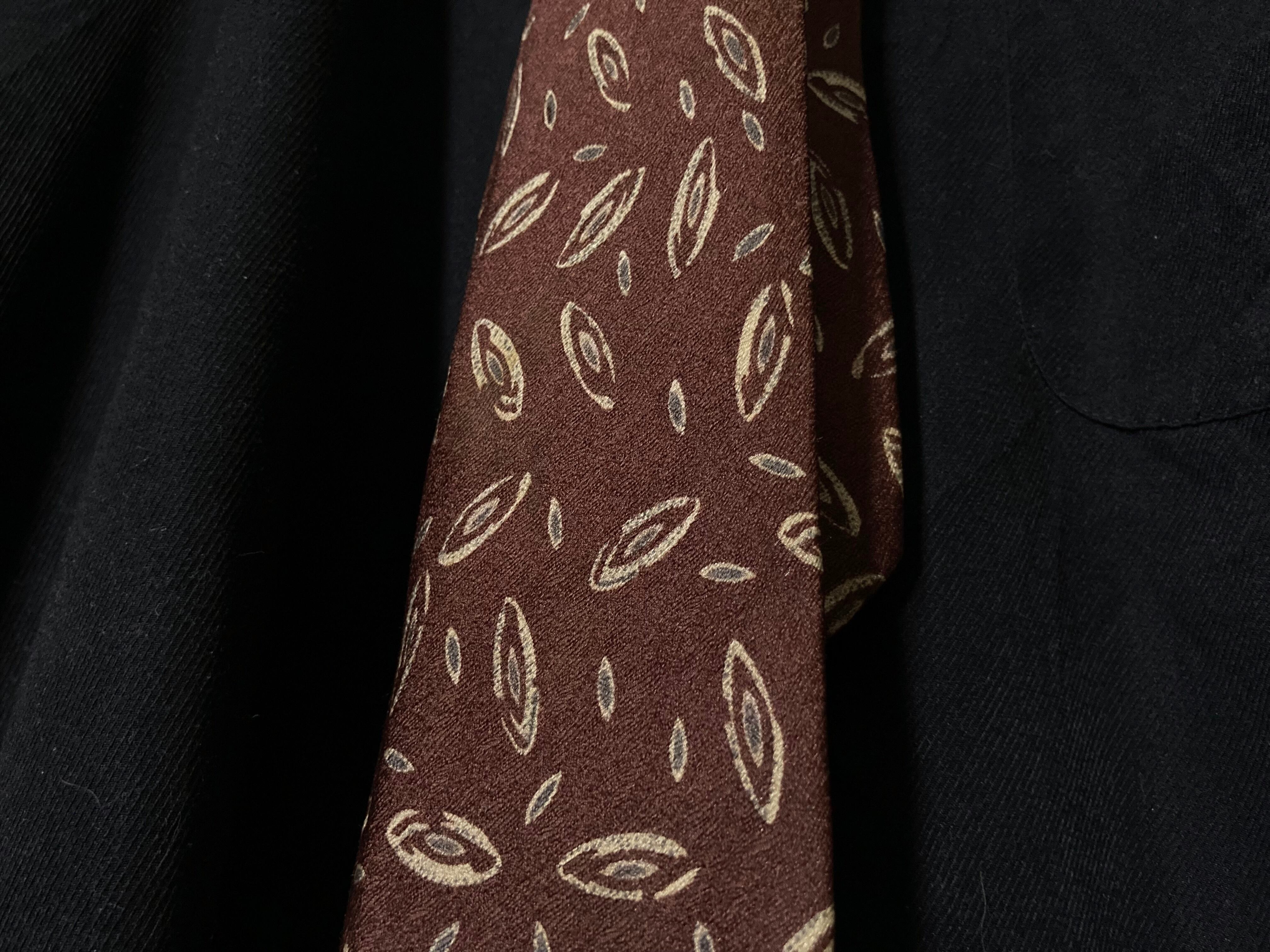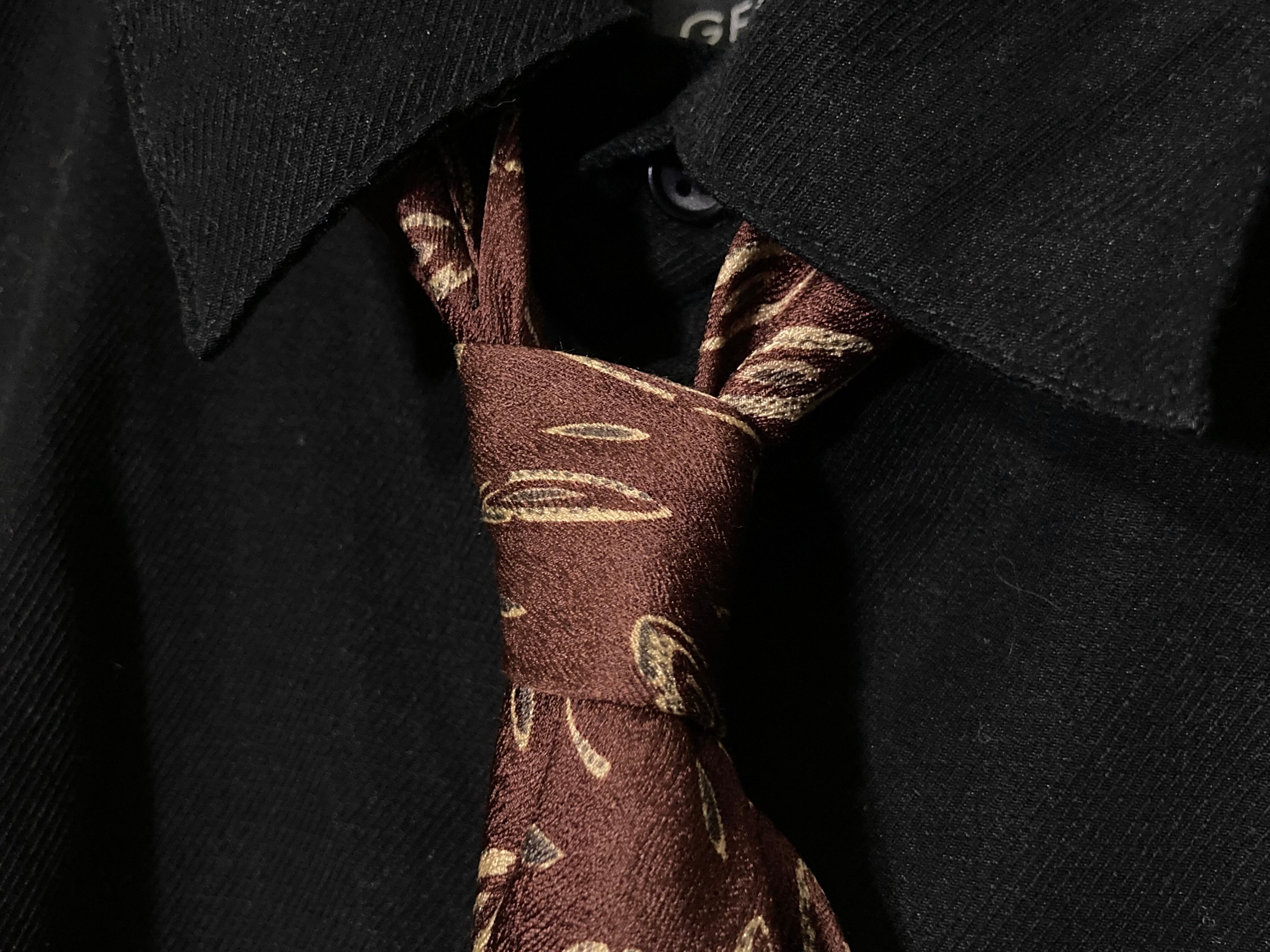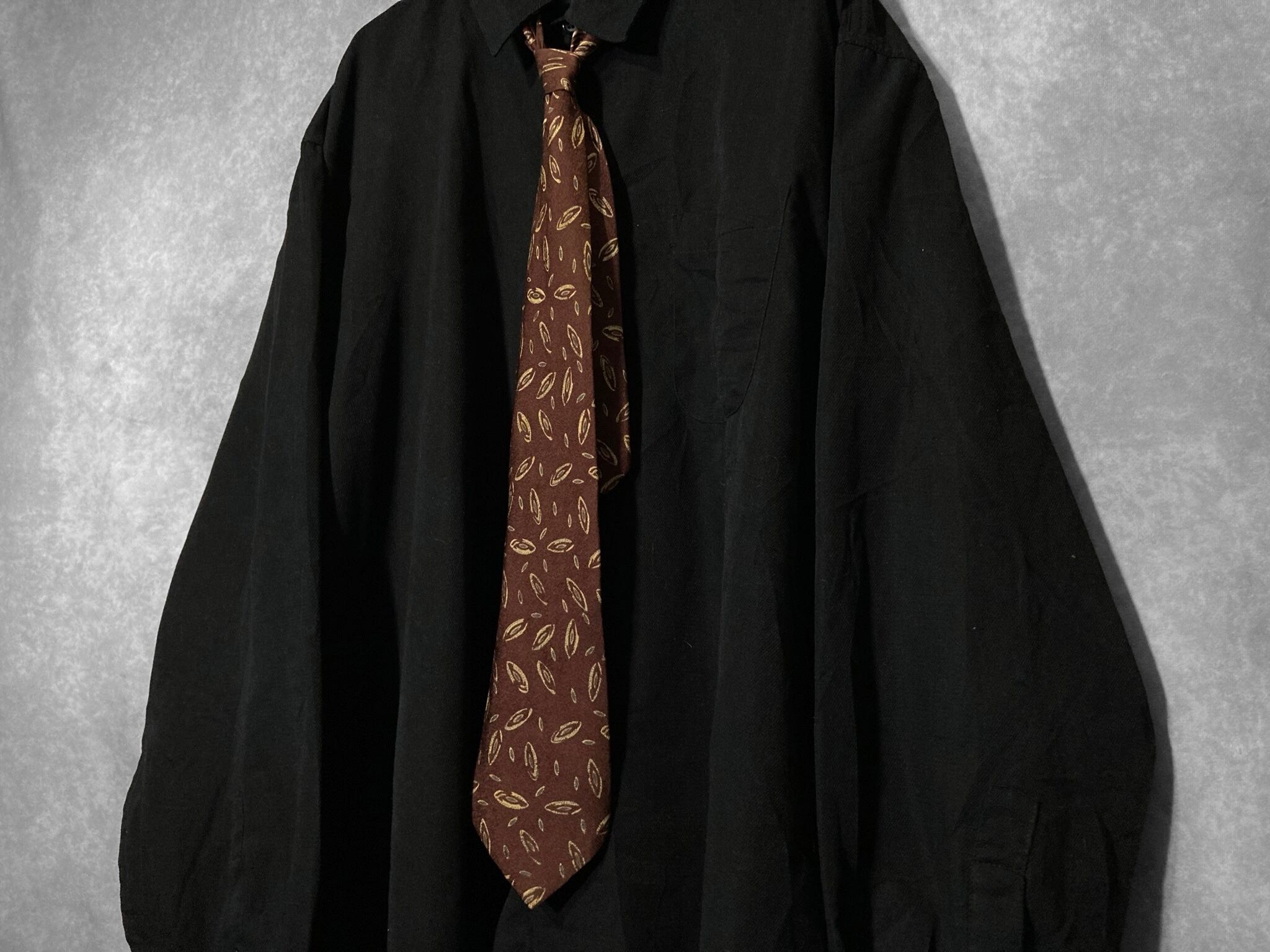 柔らかい生地感のXLサイズのシャツと秋らしい色味がかわいい総柄ネクタイを合わせたネクタイコーデセット。