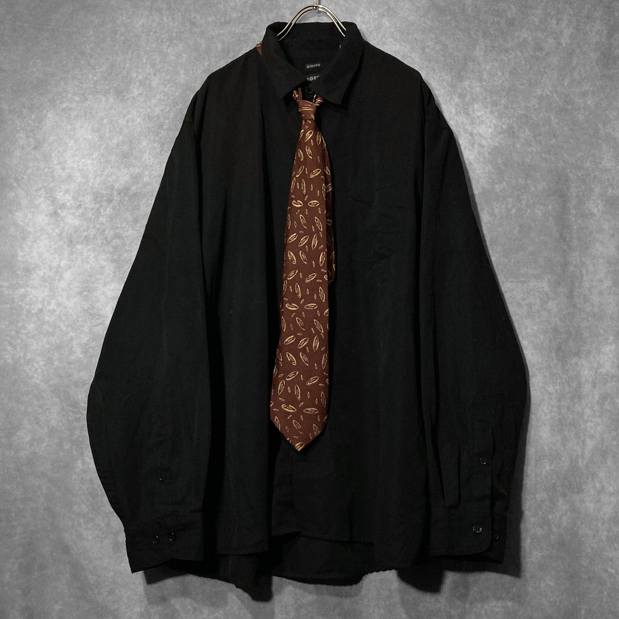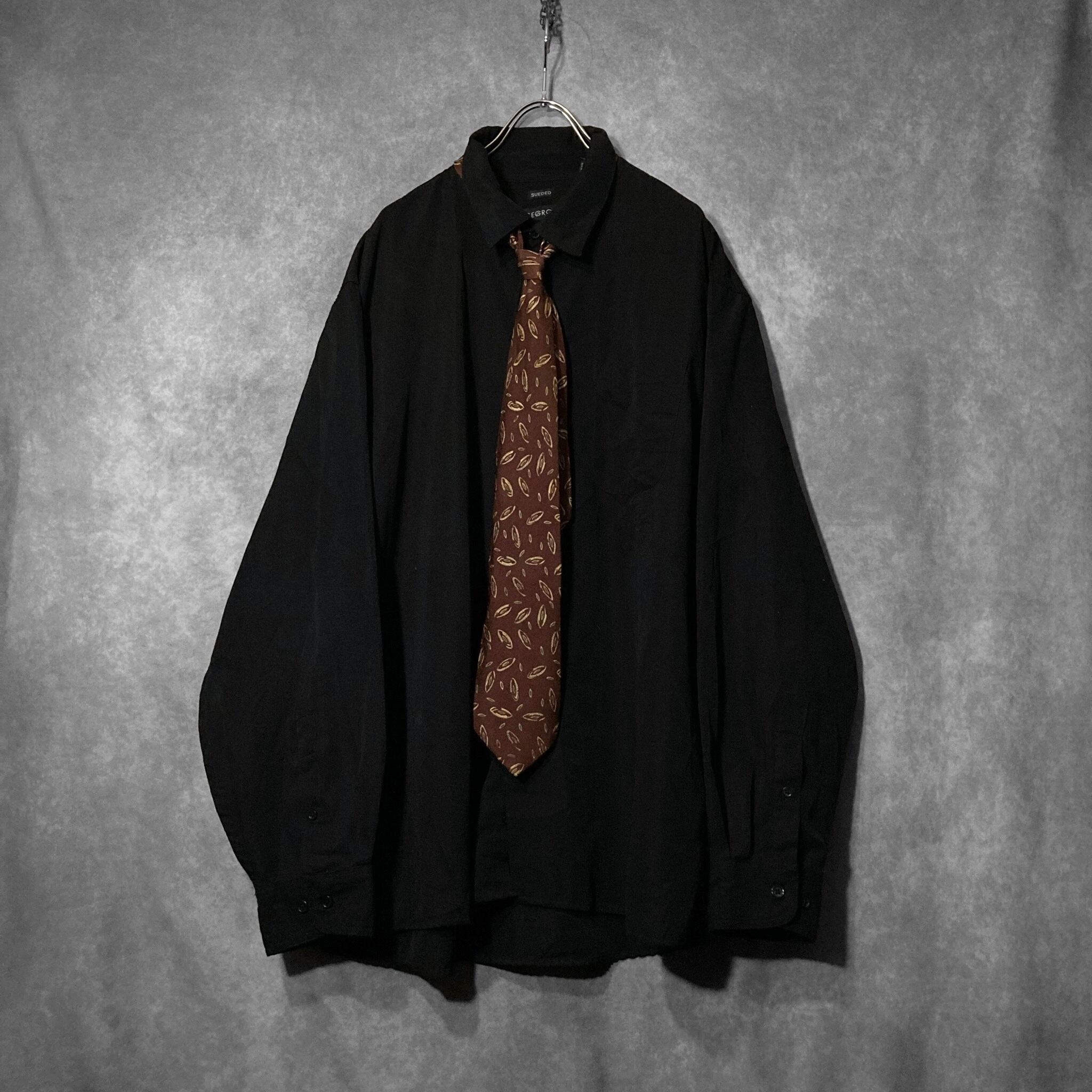 GEORGE XL Black color Regular collar shirt & Bewitching pattern all over design necktie coordinate set