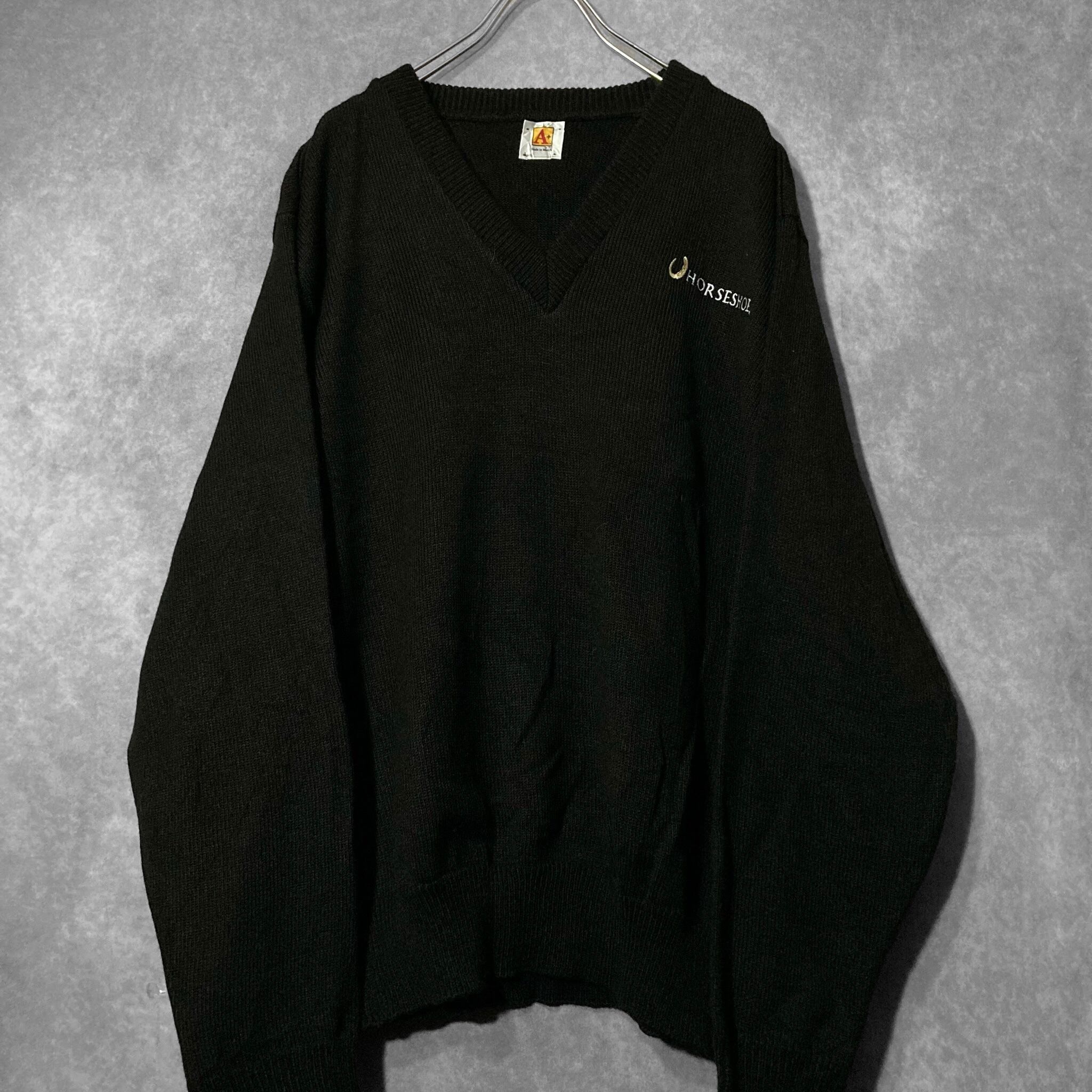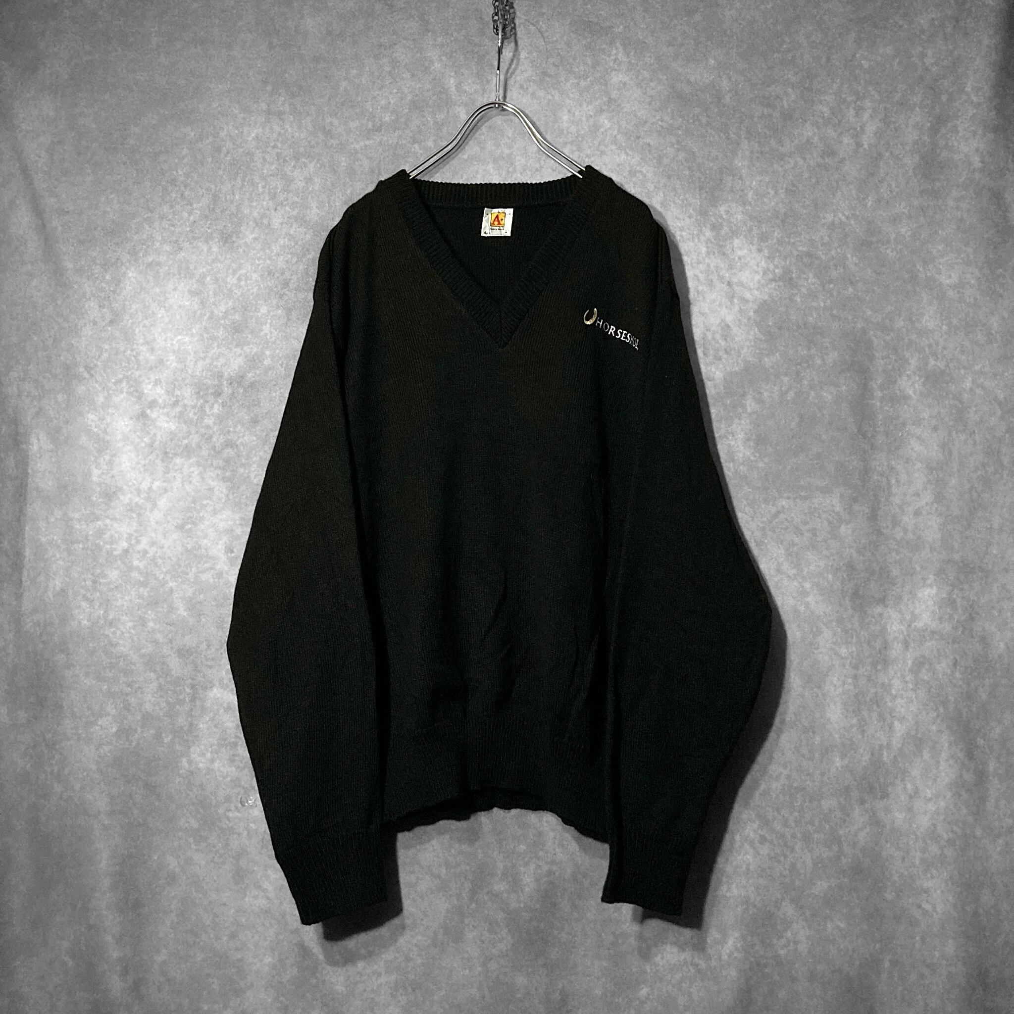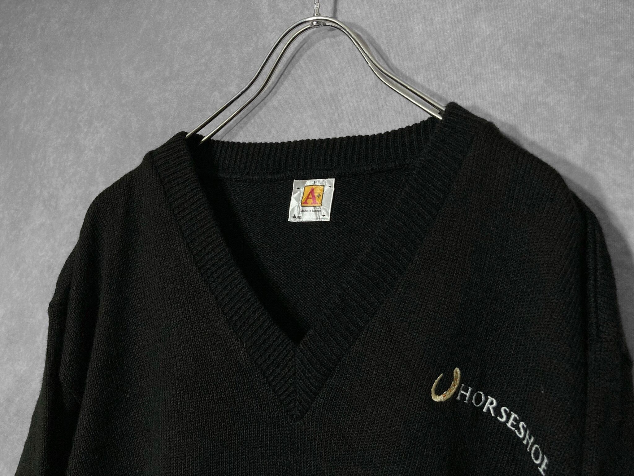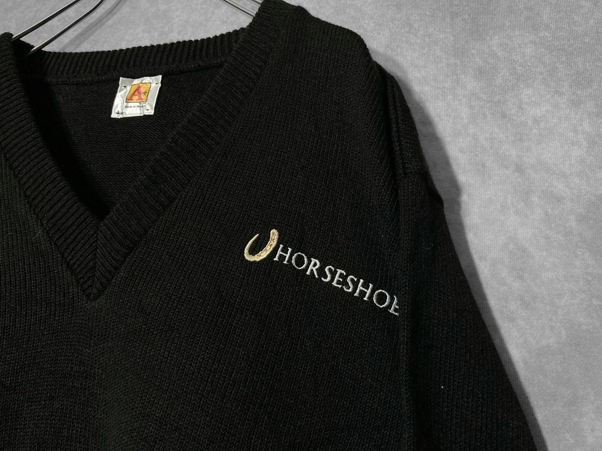 Made in Mexico, HORSE SHOE Chest logo embroidery design V-neck knit sweater