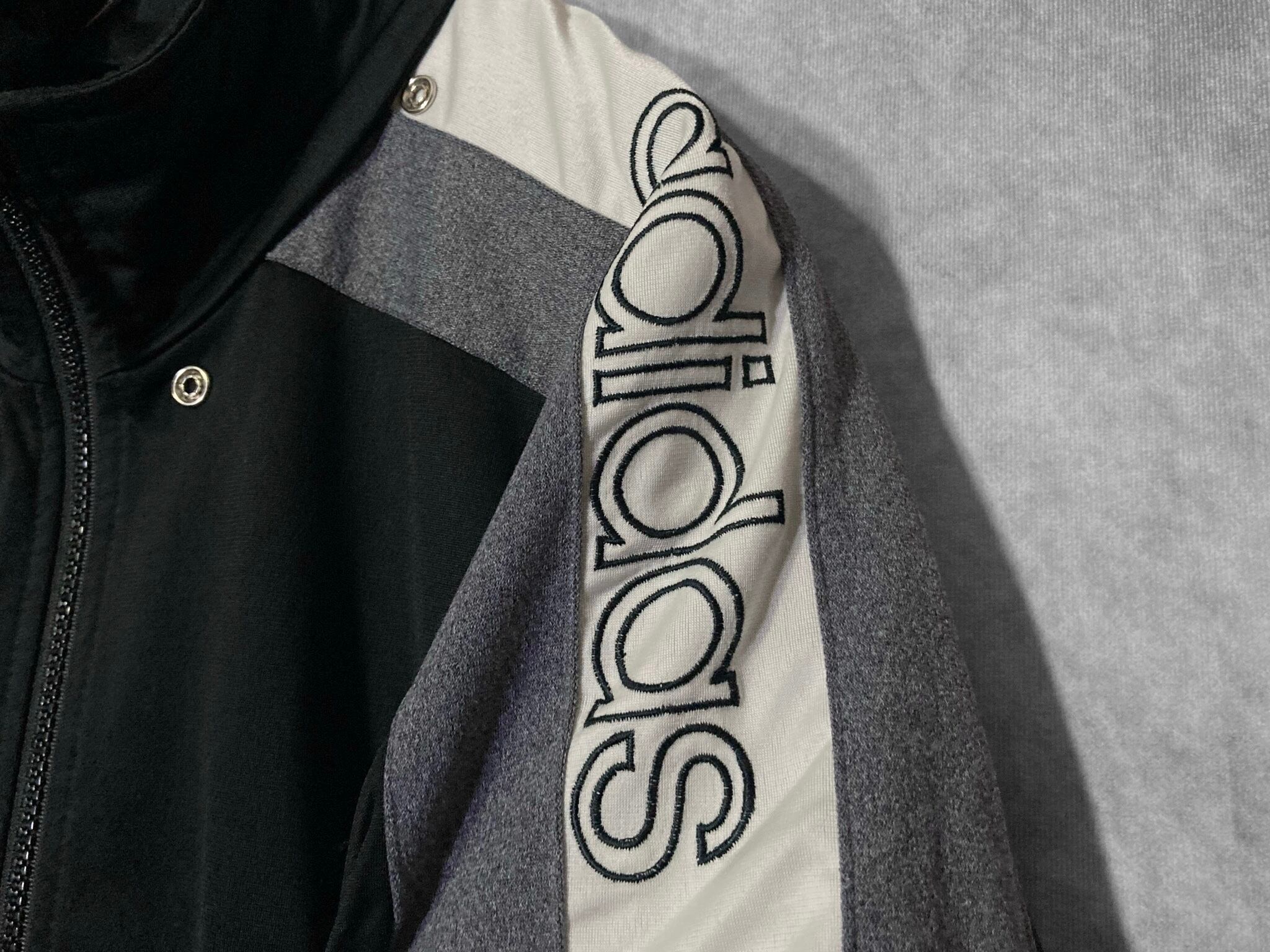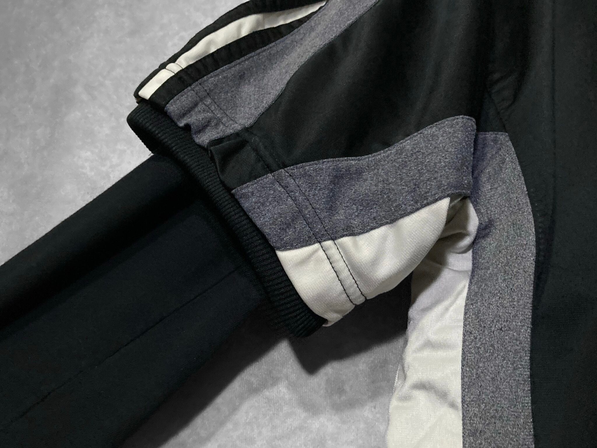 左肩にはadidasのロゴの刺繍デザインが存在感を放ち、反対側にはadidasのアイコンでもあるスリーストライプが配された贅沢なデザイン。