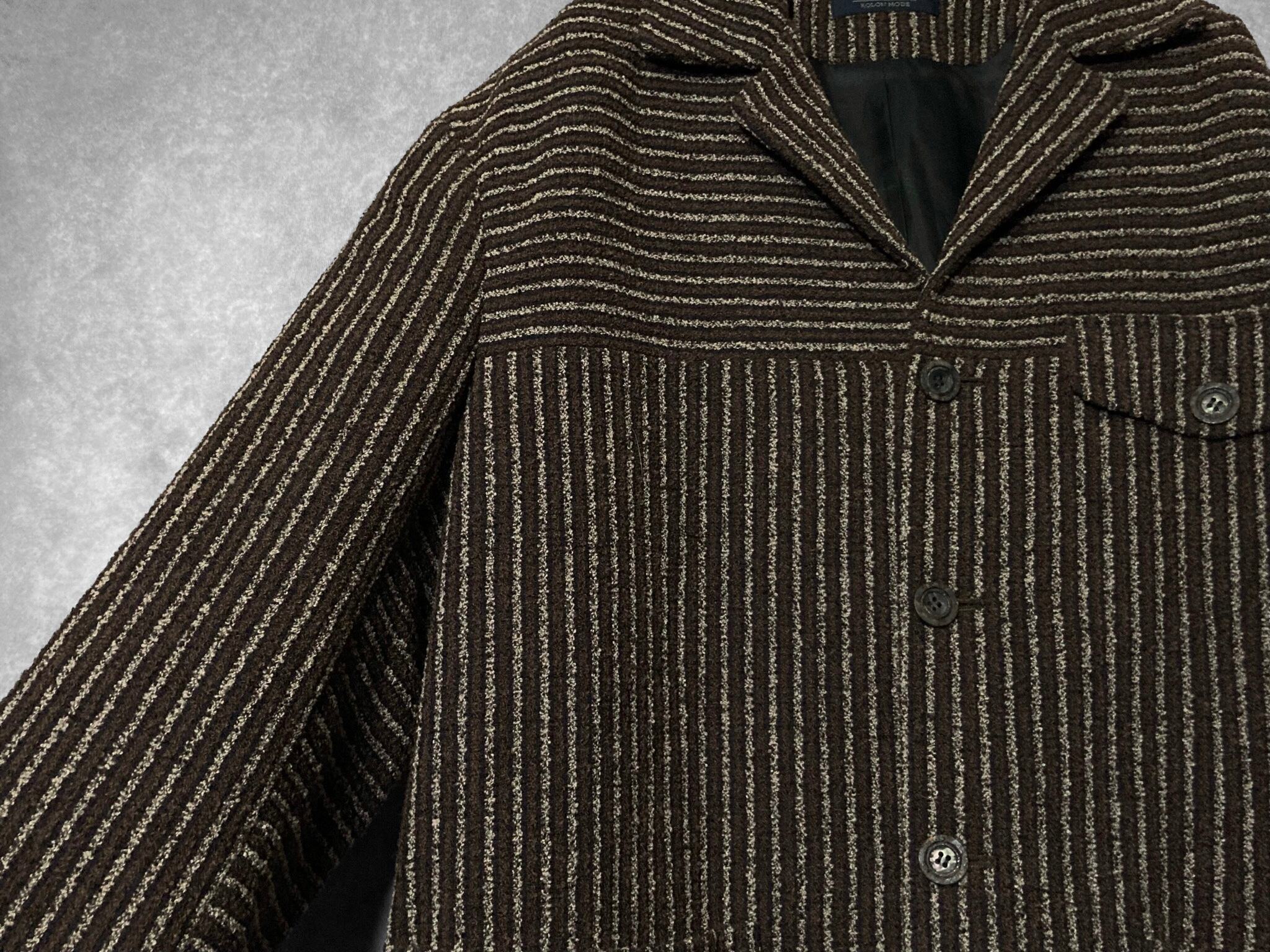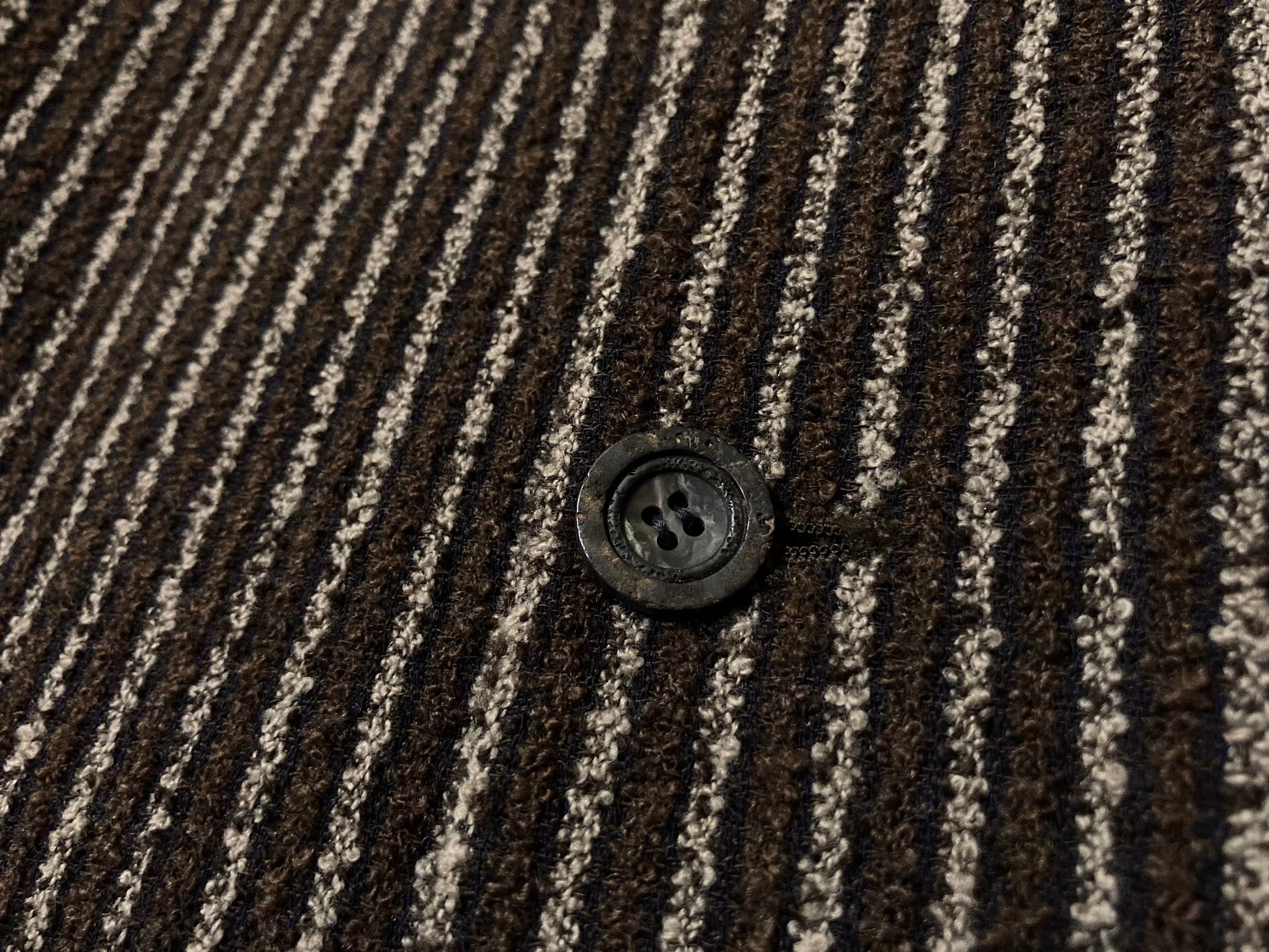 着丈がやや長めでゆったりとしたサイズ感に加え、縦と横からなる細いストライプのラインデザインはいい意味でアンニュイさを生み出し、洗練された大人の男を演出してくれます。