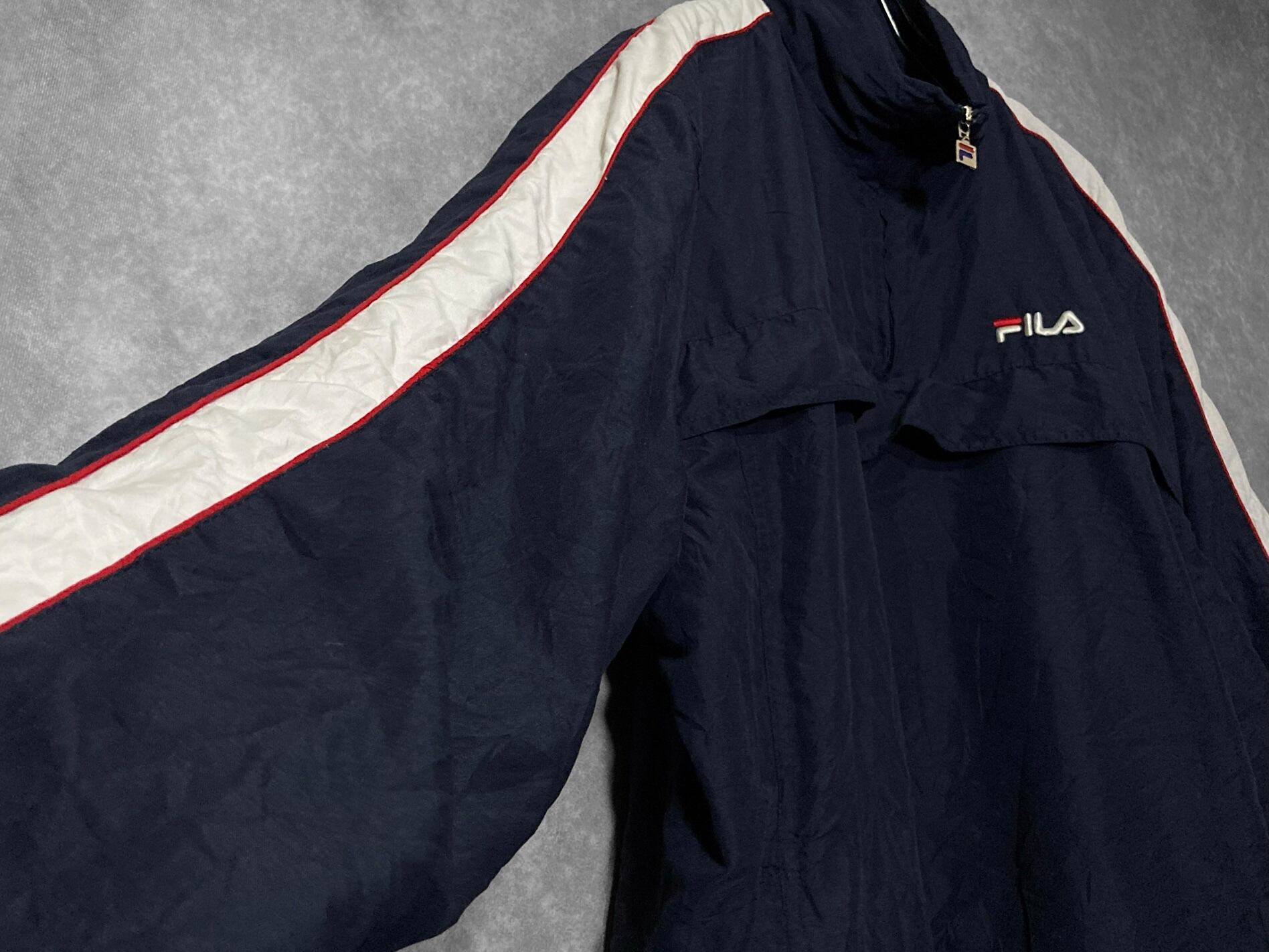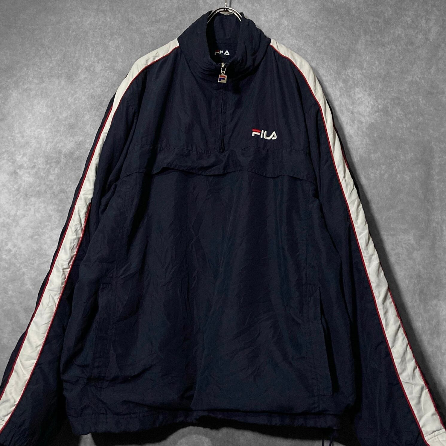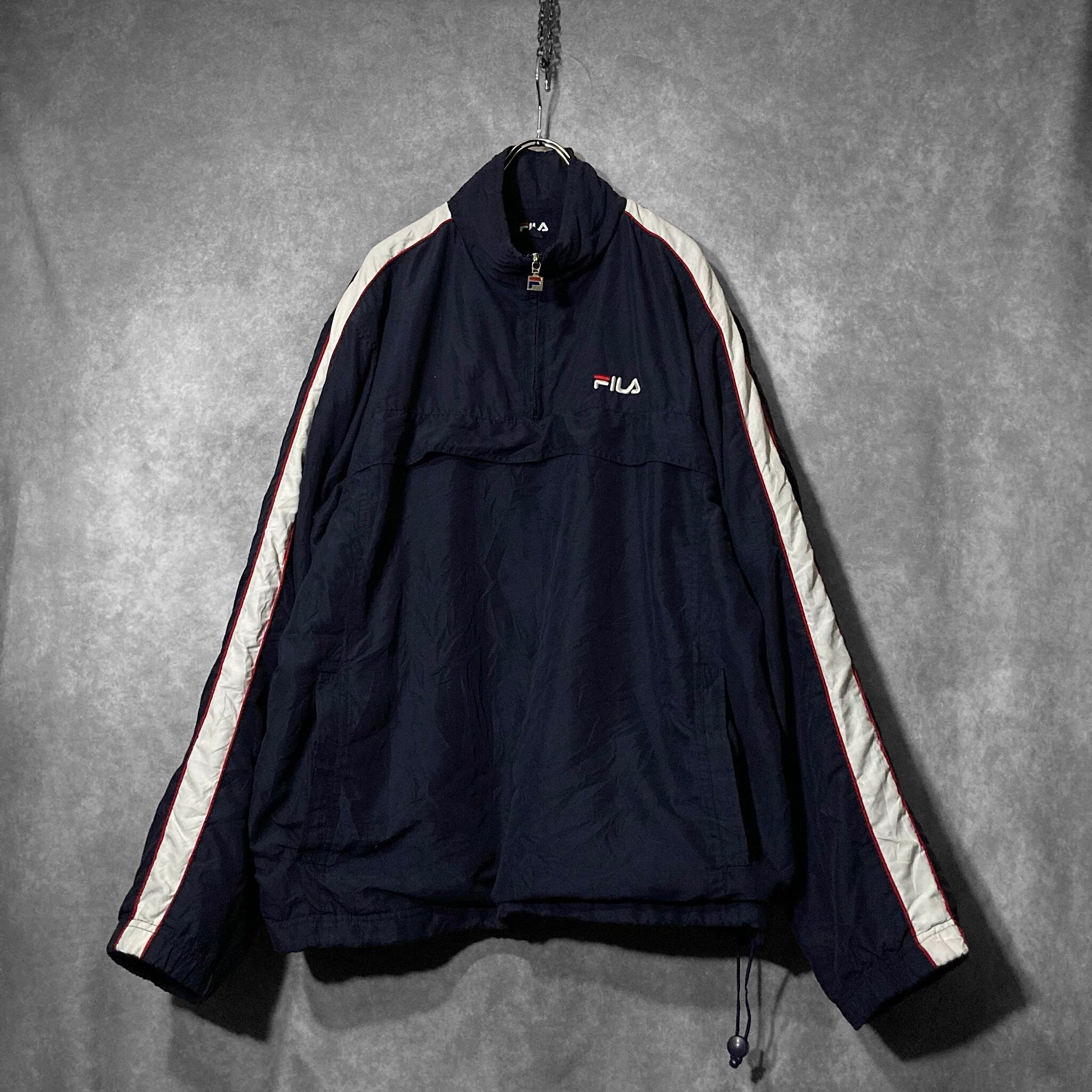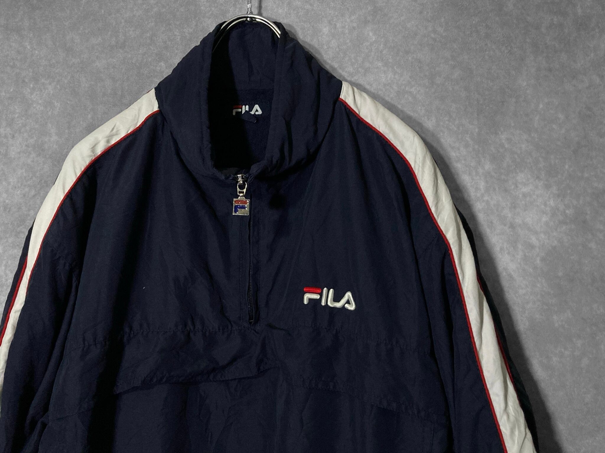 FILA XL fleece fabric lining × Chest logo embroidery design Half-zip Nylon pullover