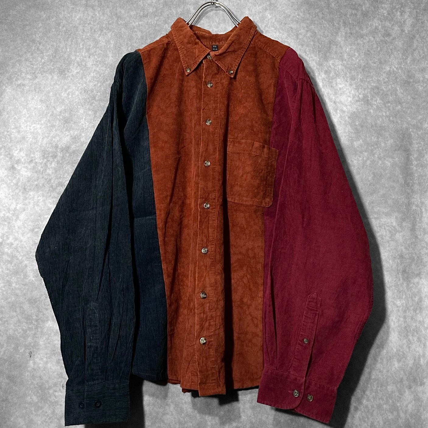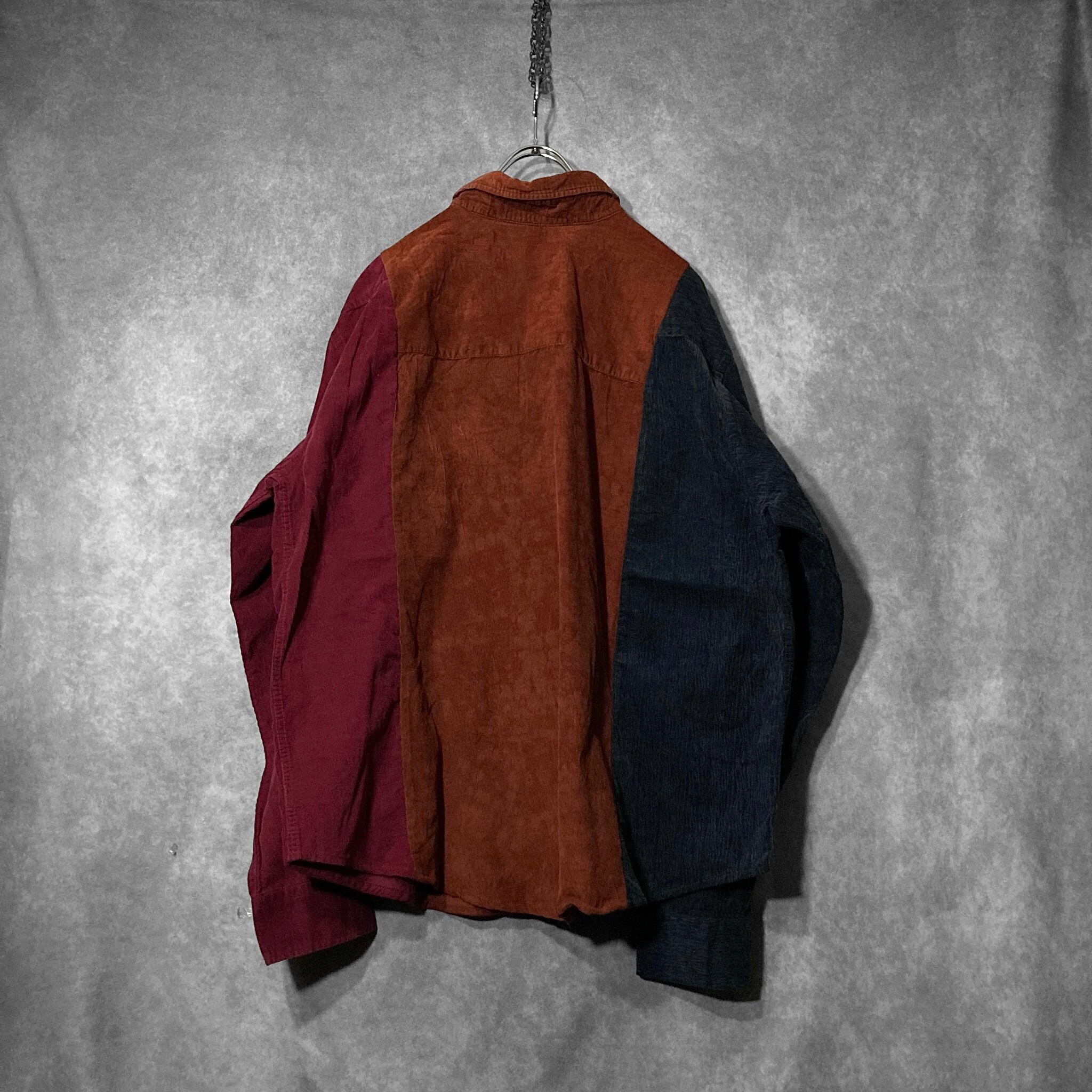 再構築 Rebuilding Three color corduroy fabric Switching design L/S shirt