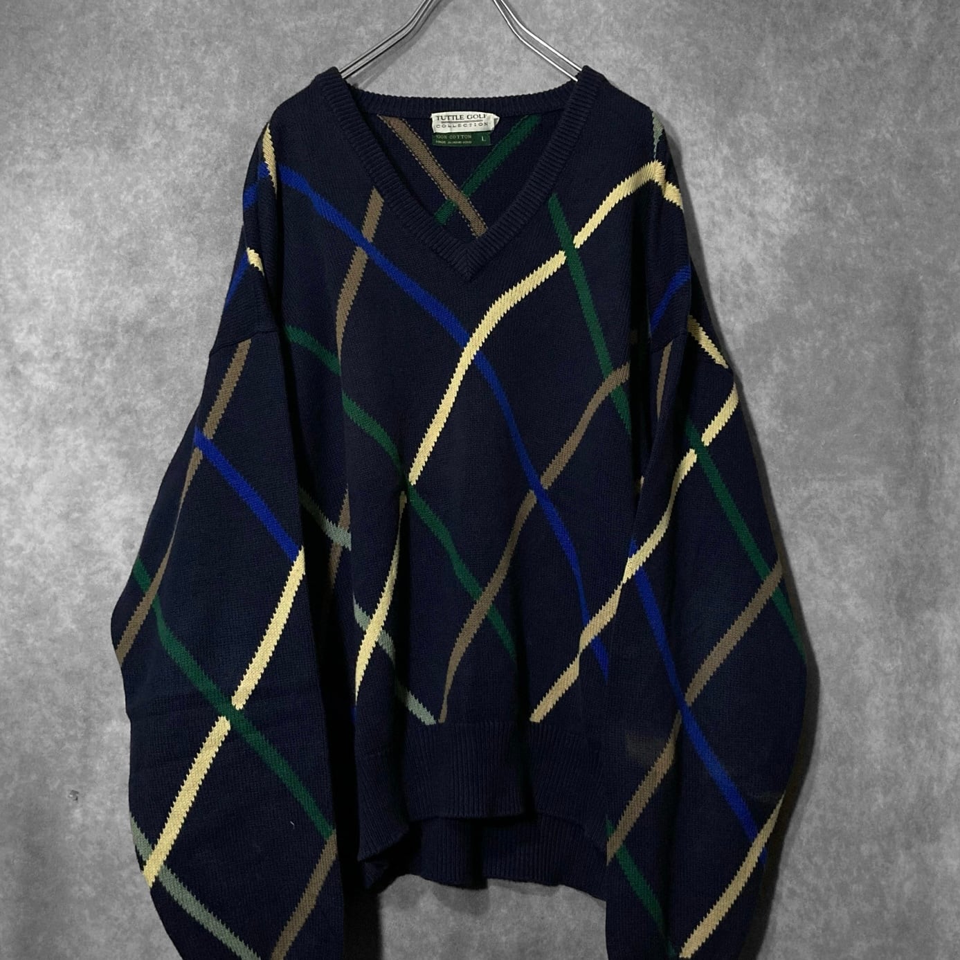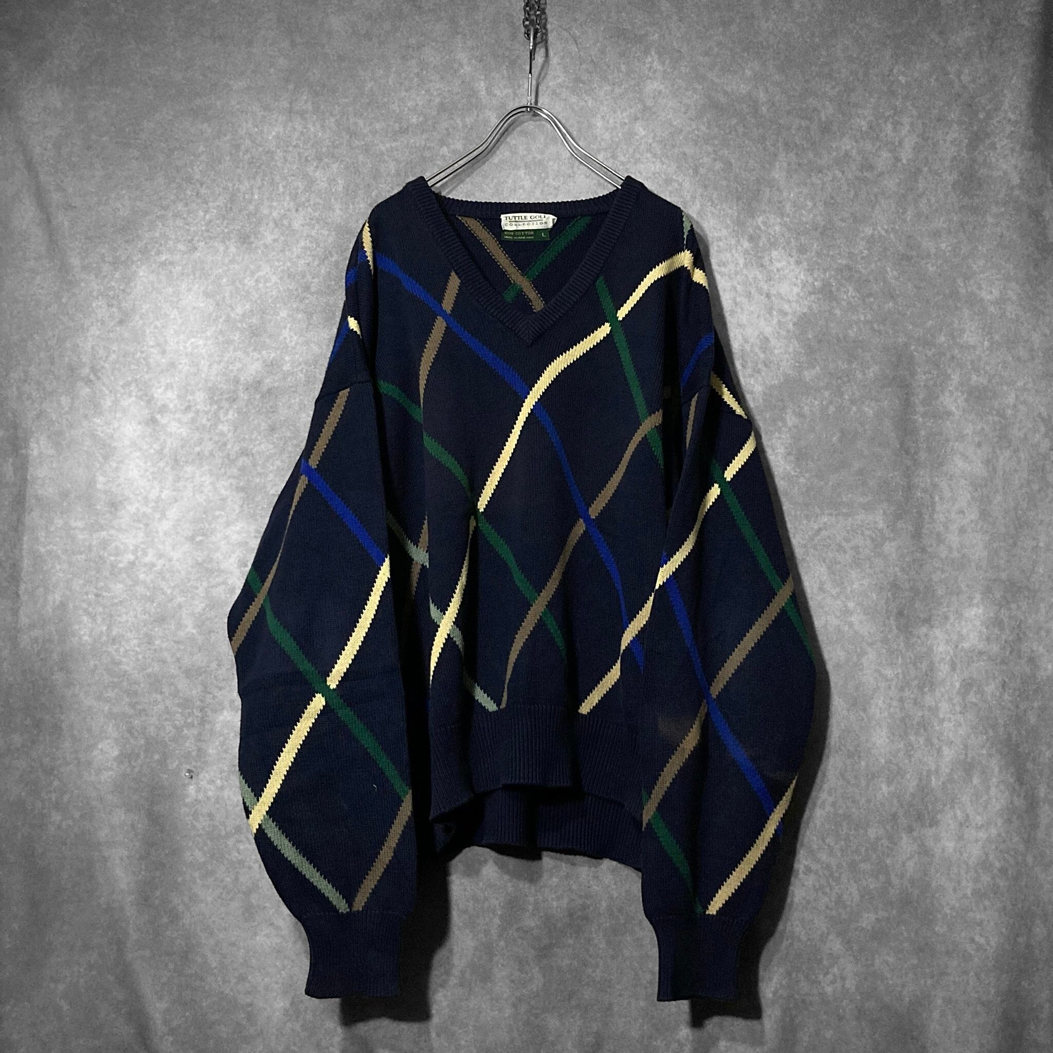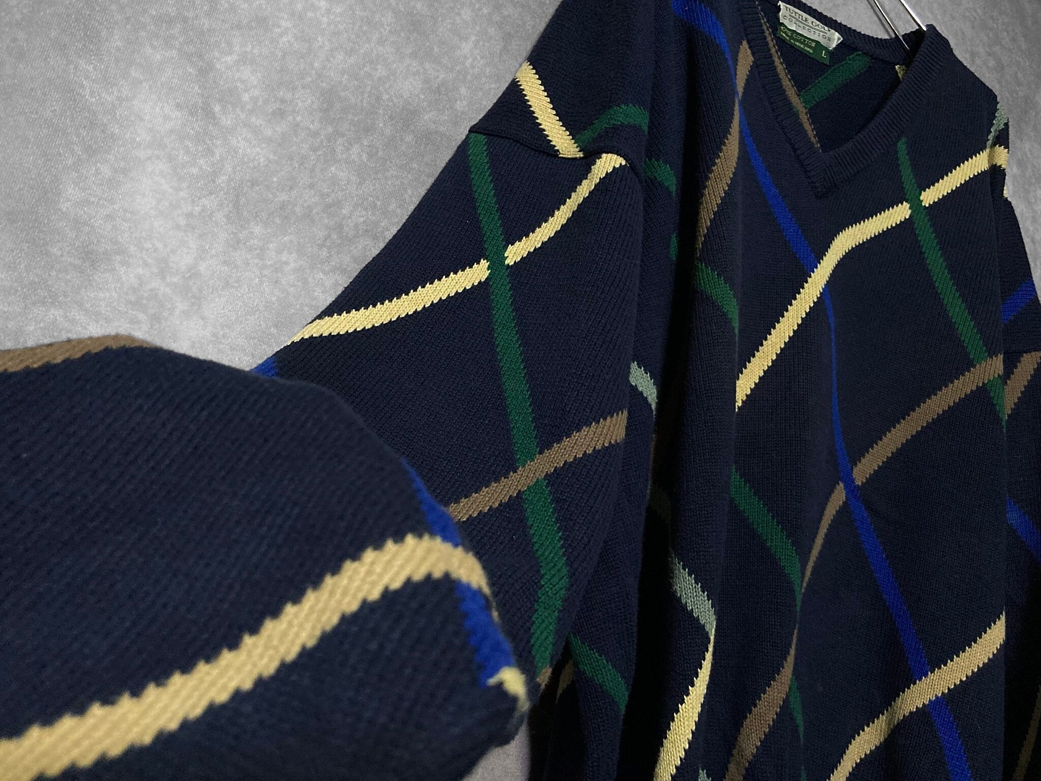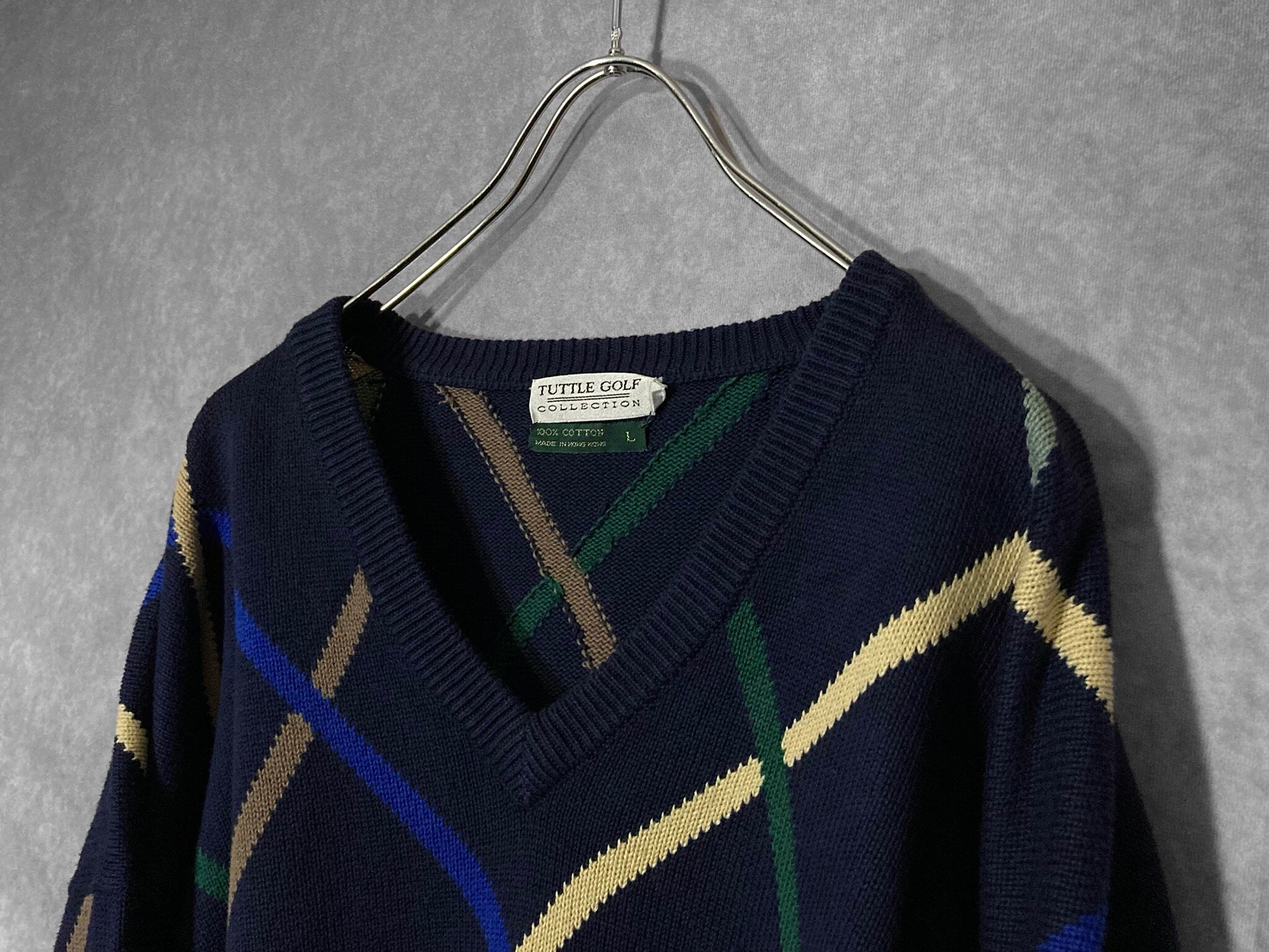 TATTLE GOLF COLLECTION, mulch color Beam pattern design V-neck knit sweater