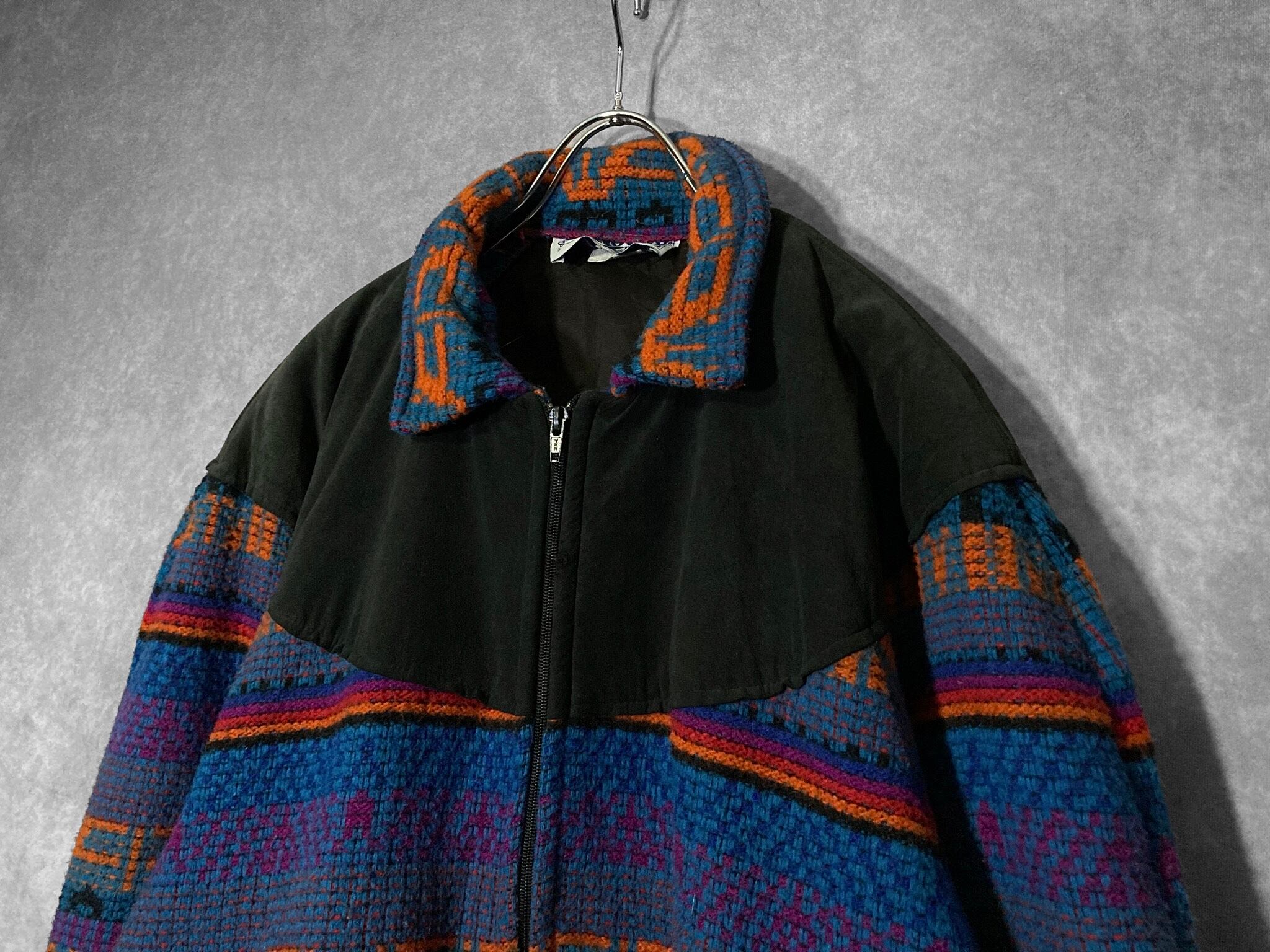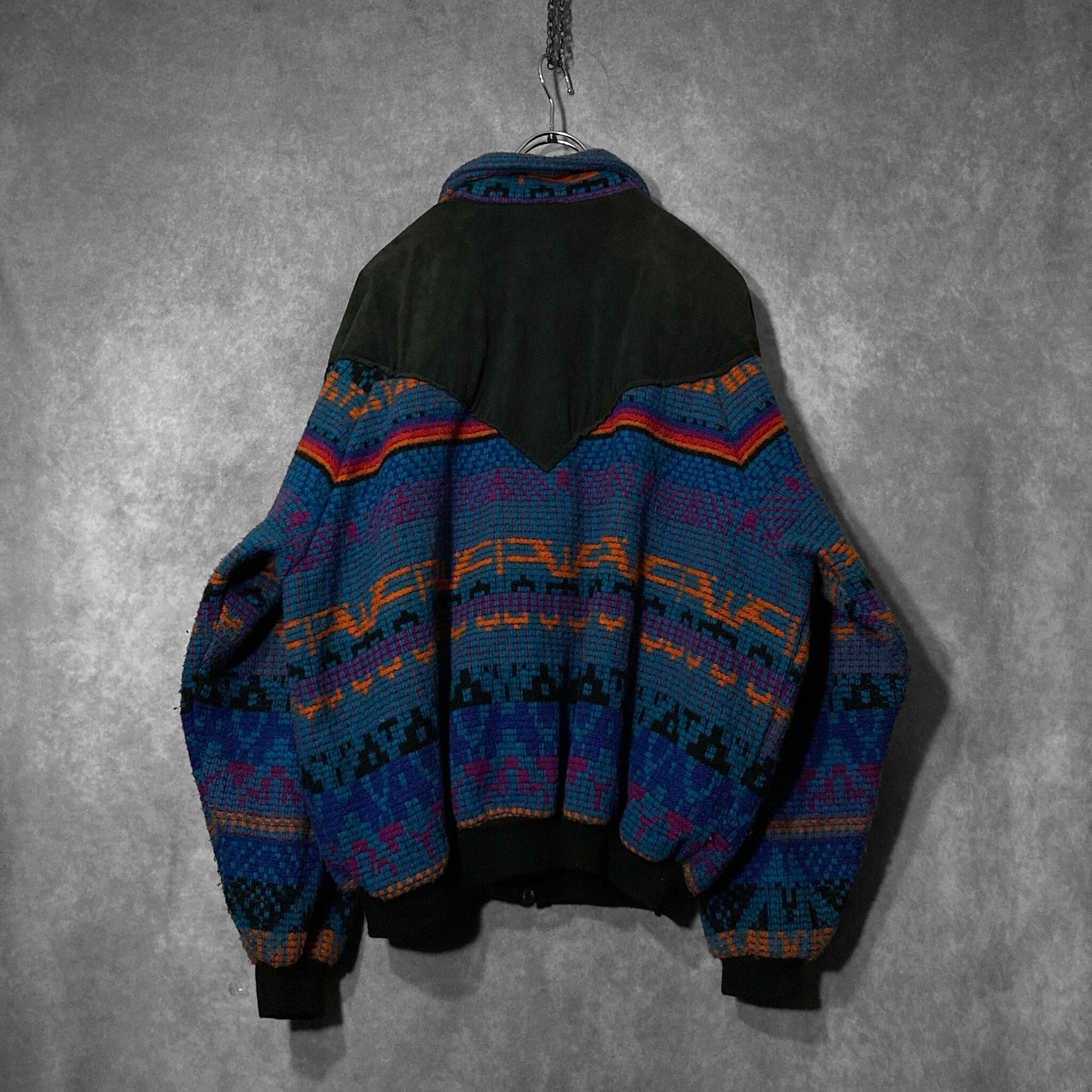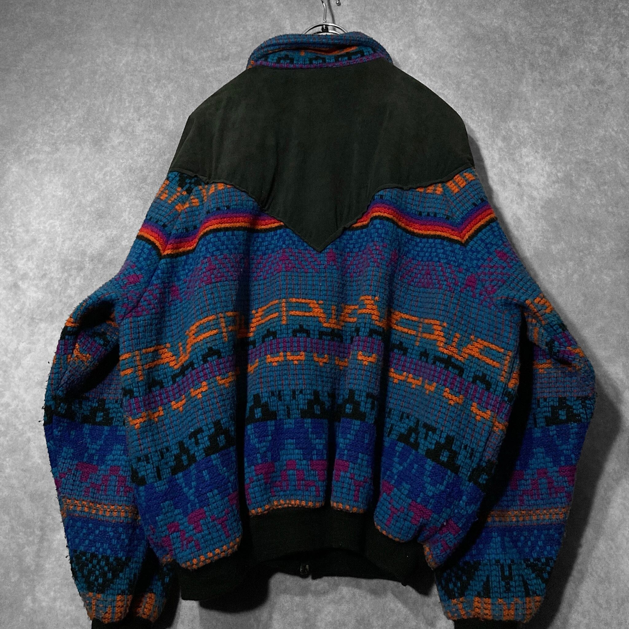70-90's Native art all over pattern × faux suede leather switching full-zip jacket