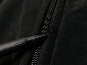 ニットとシープスキンのスウェードレザーという異素材の生地の組み合わせをブルゾンのディテールに落とし込みながらも、ニット素材特有のゆるい生地感ではなく、ブルゾンのガッチリとしたディテールをニットで表現されたデザイン。