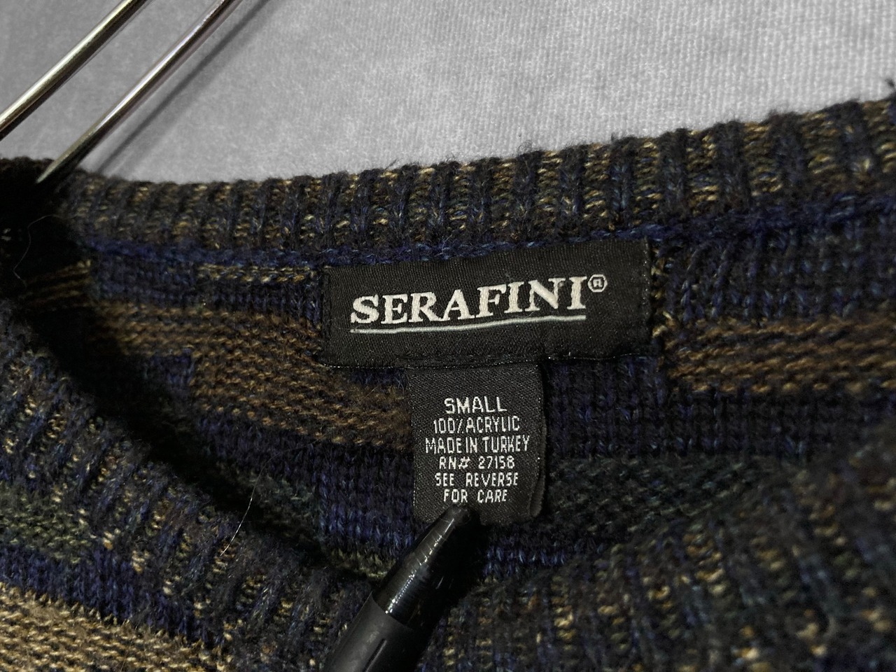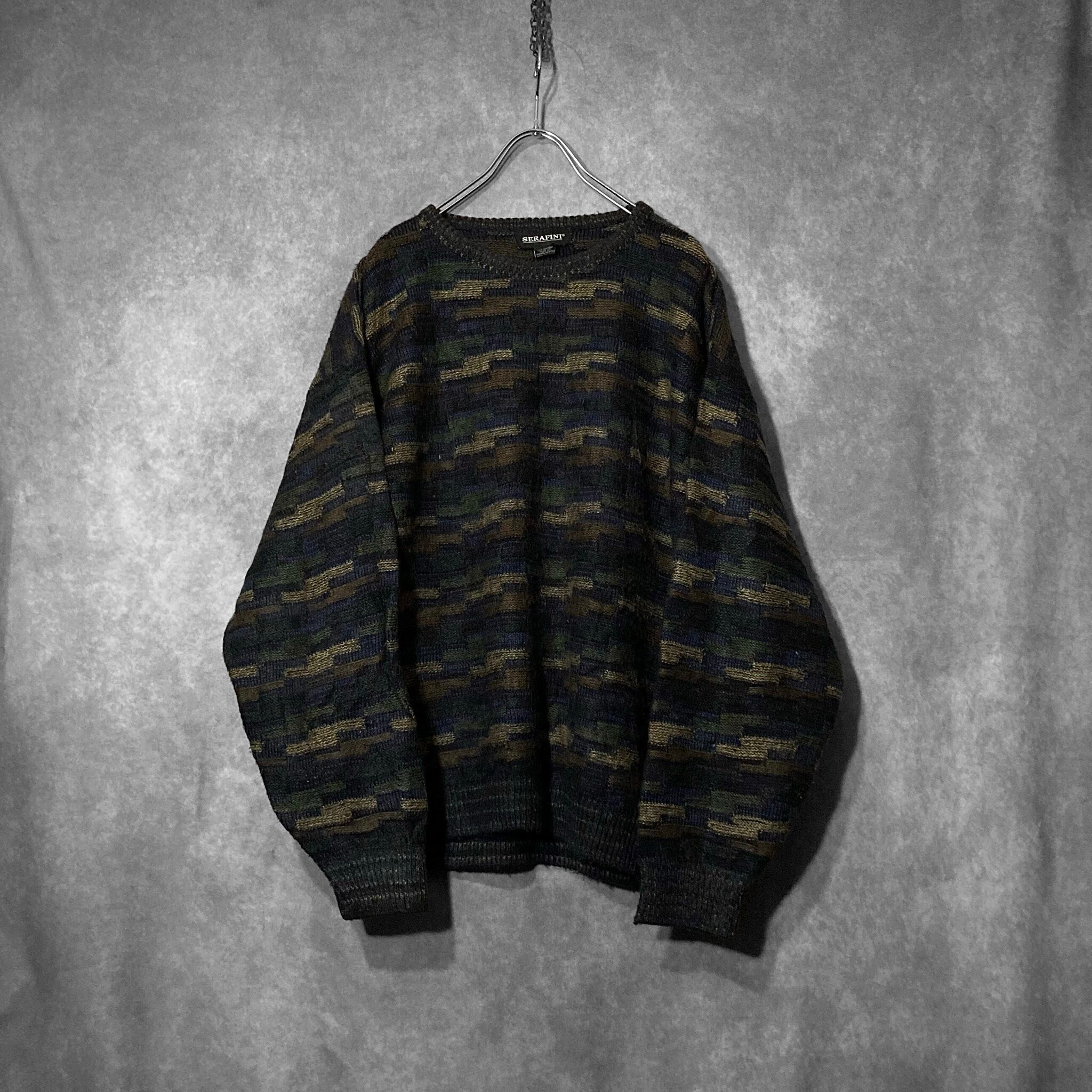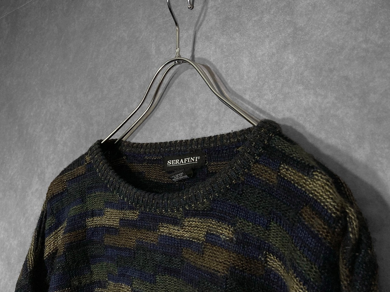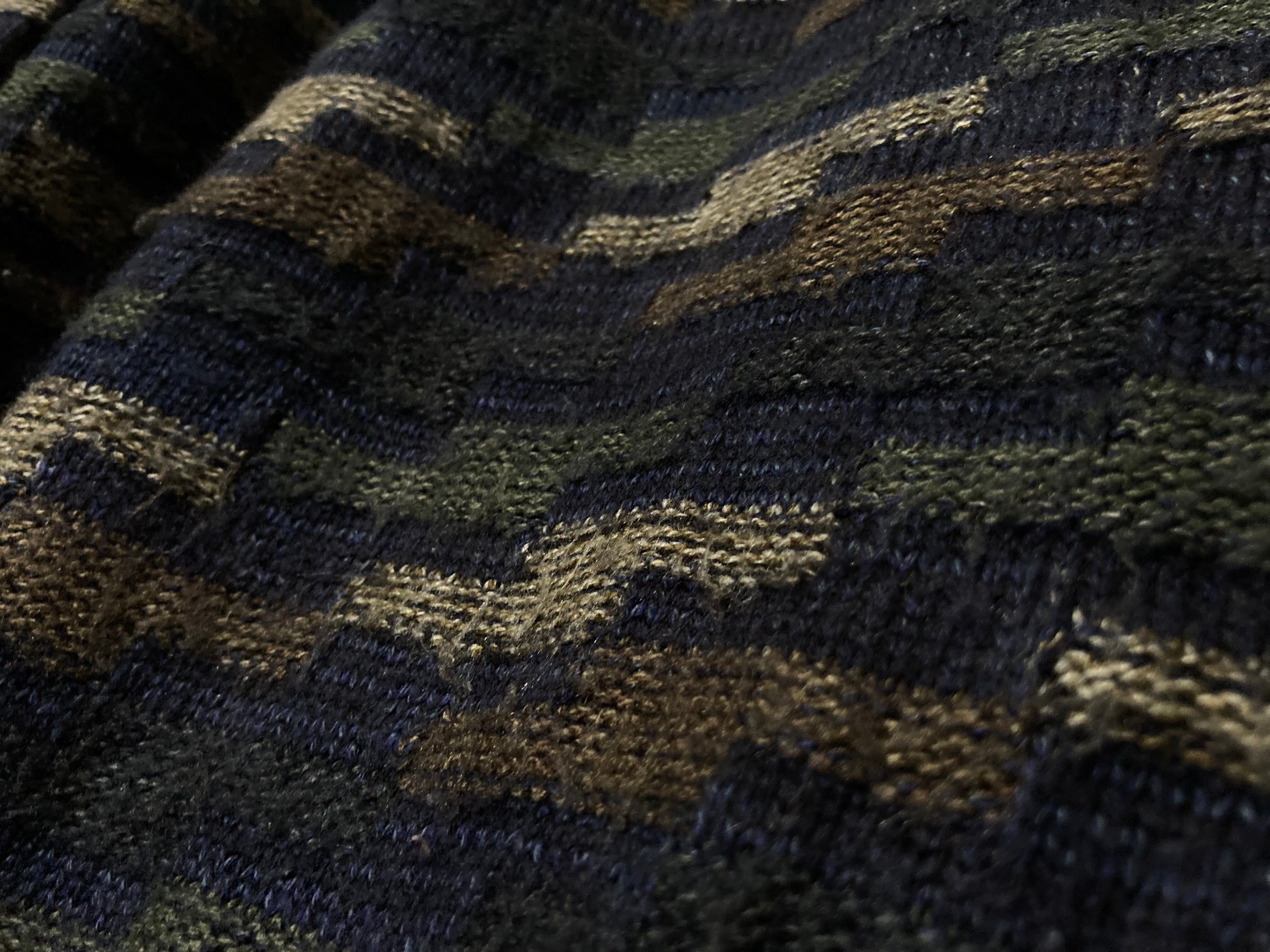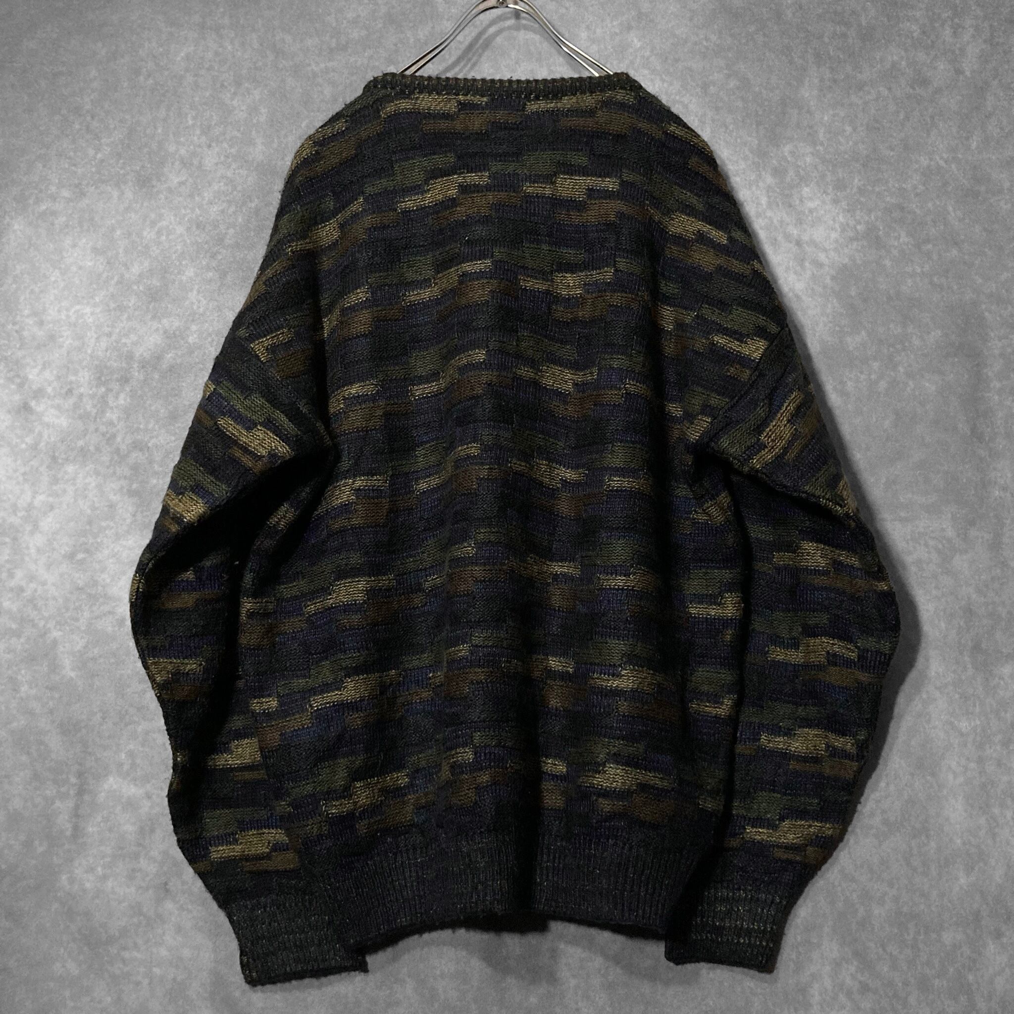 S字ブロックが積み重なったようなアースカラーの幾何学柄の雰囲気ムンムンな総柄デザインニットの入荷です。
