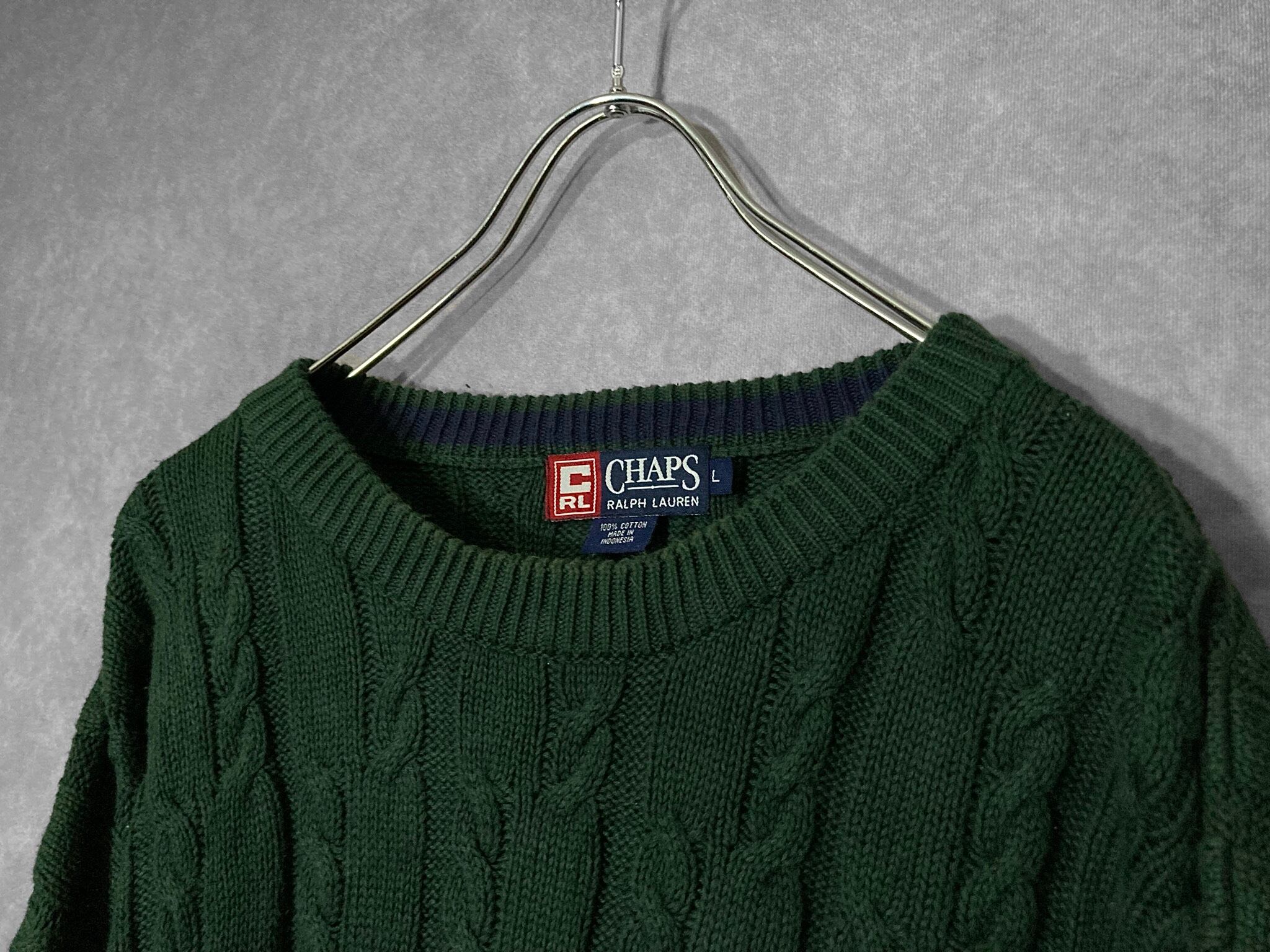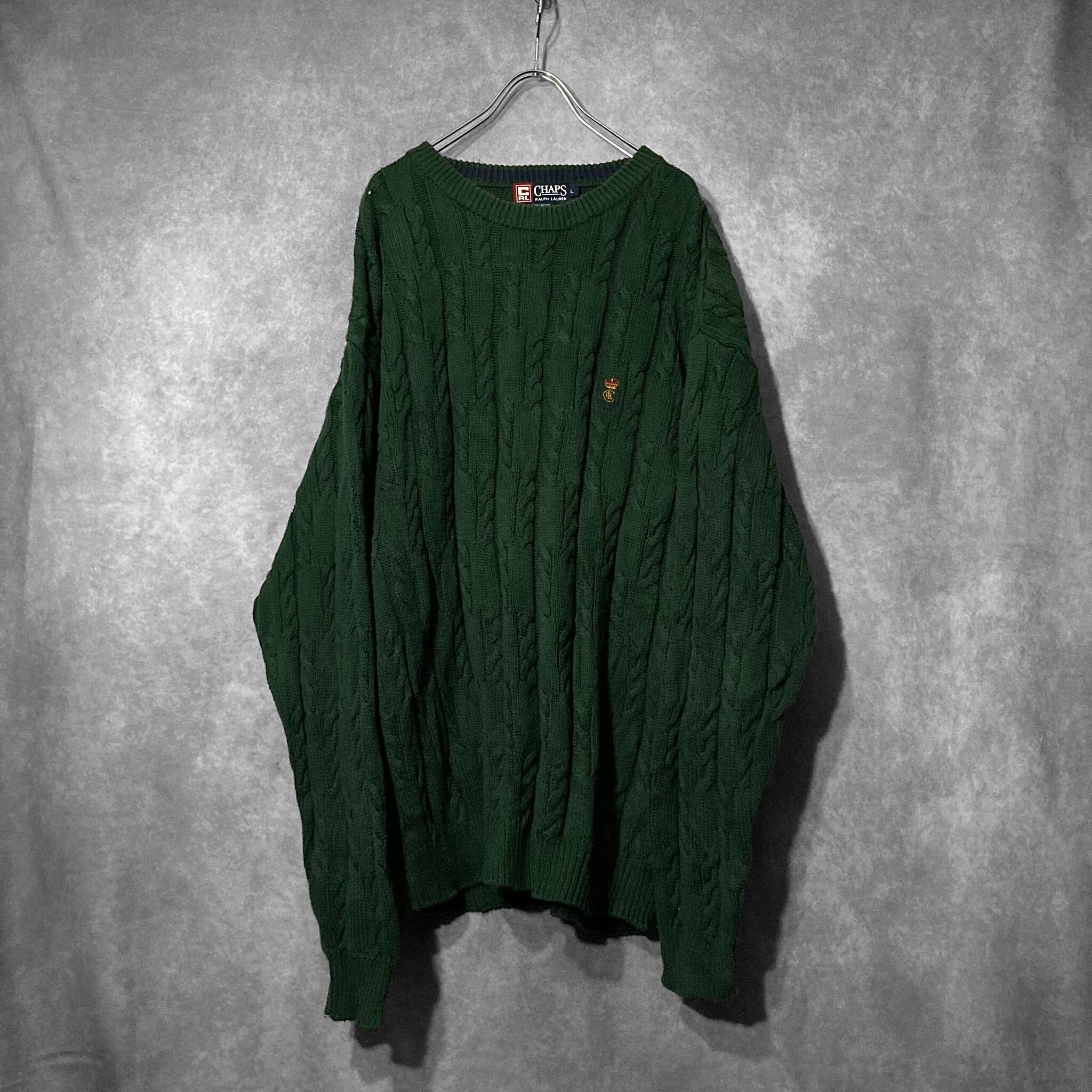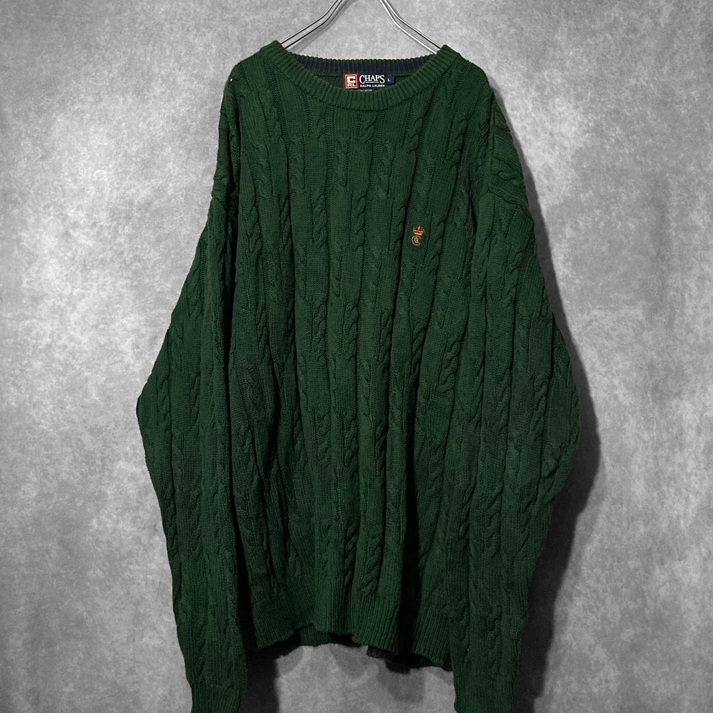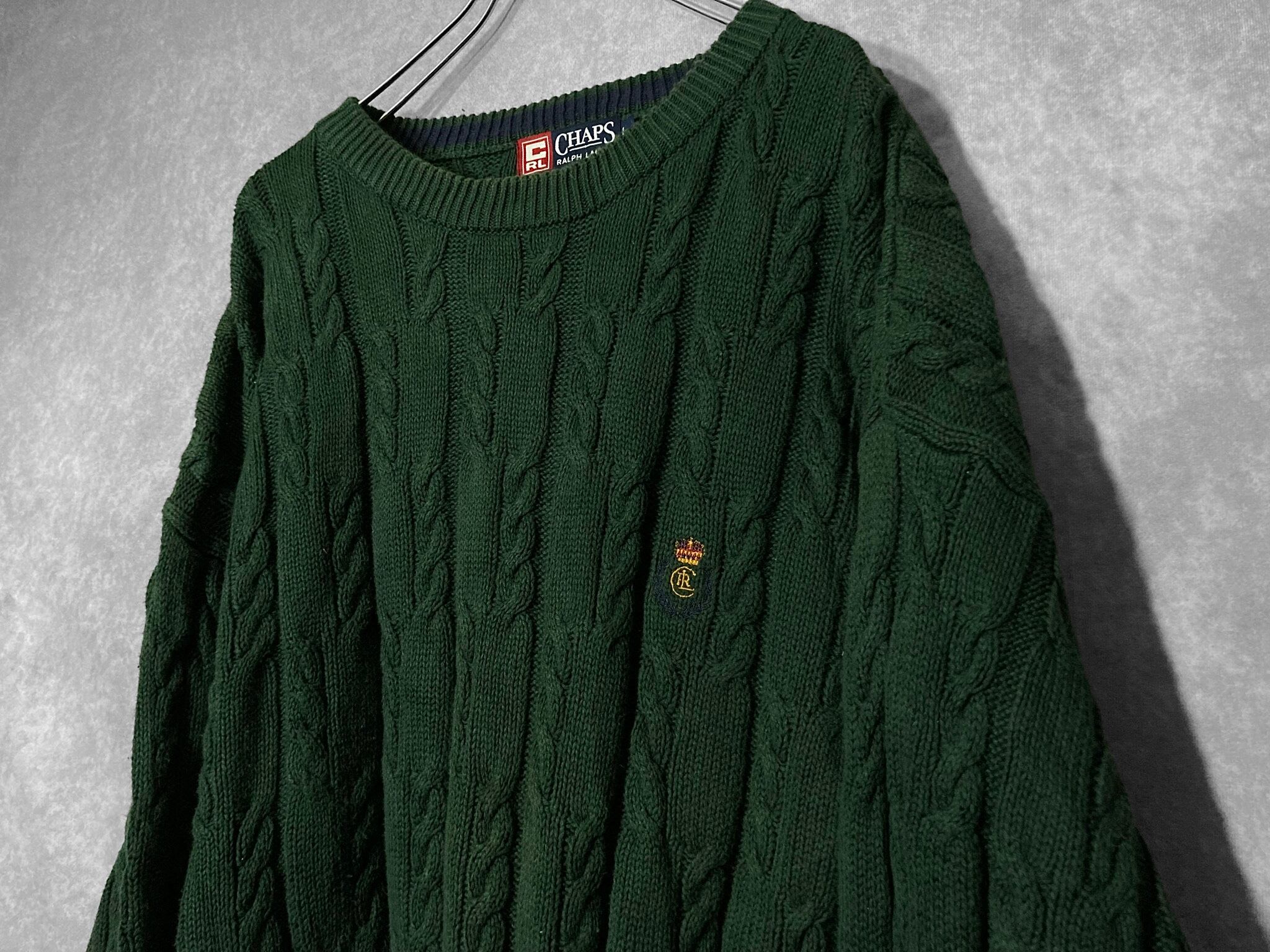 CHAPS RALPH LAUREN 90's XXL chest emblem logo embroidery × cable knitting design sweater