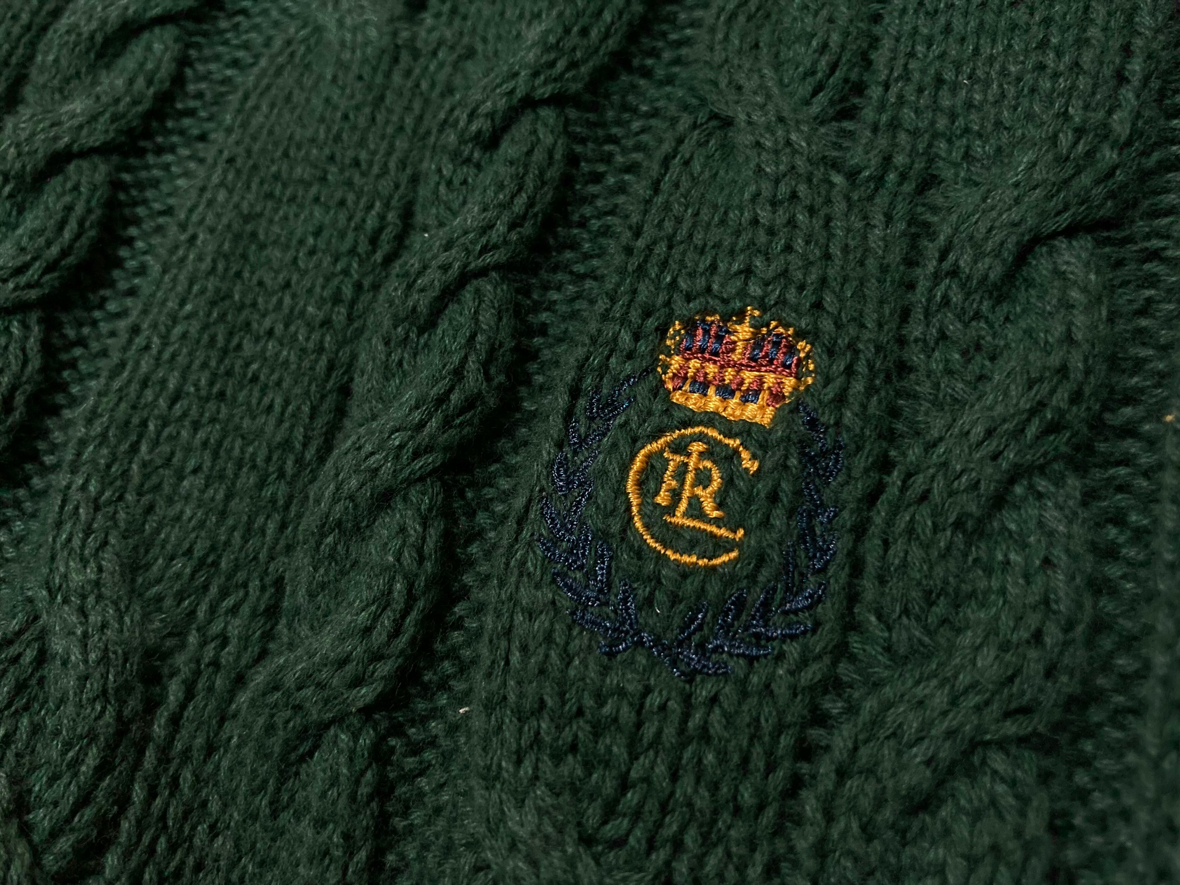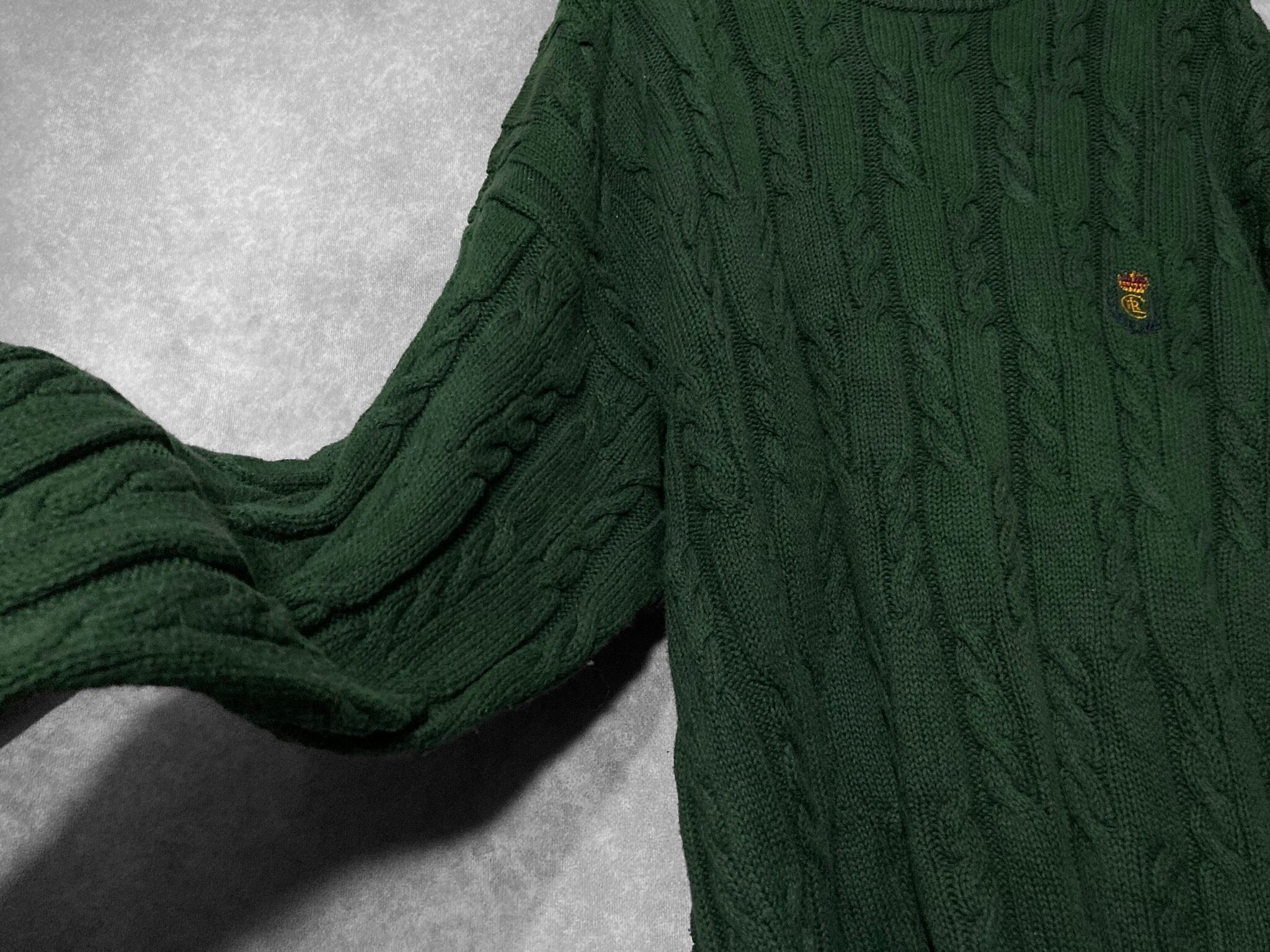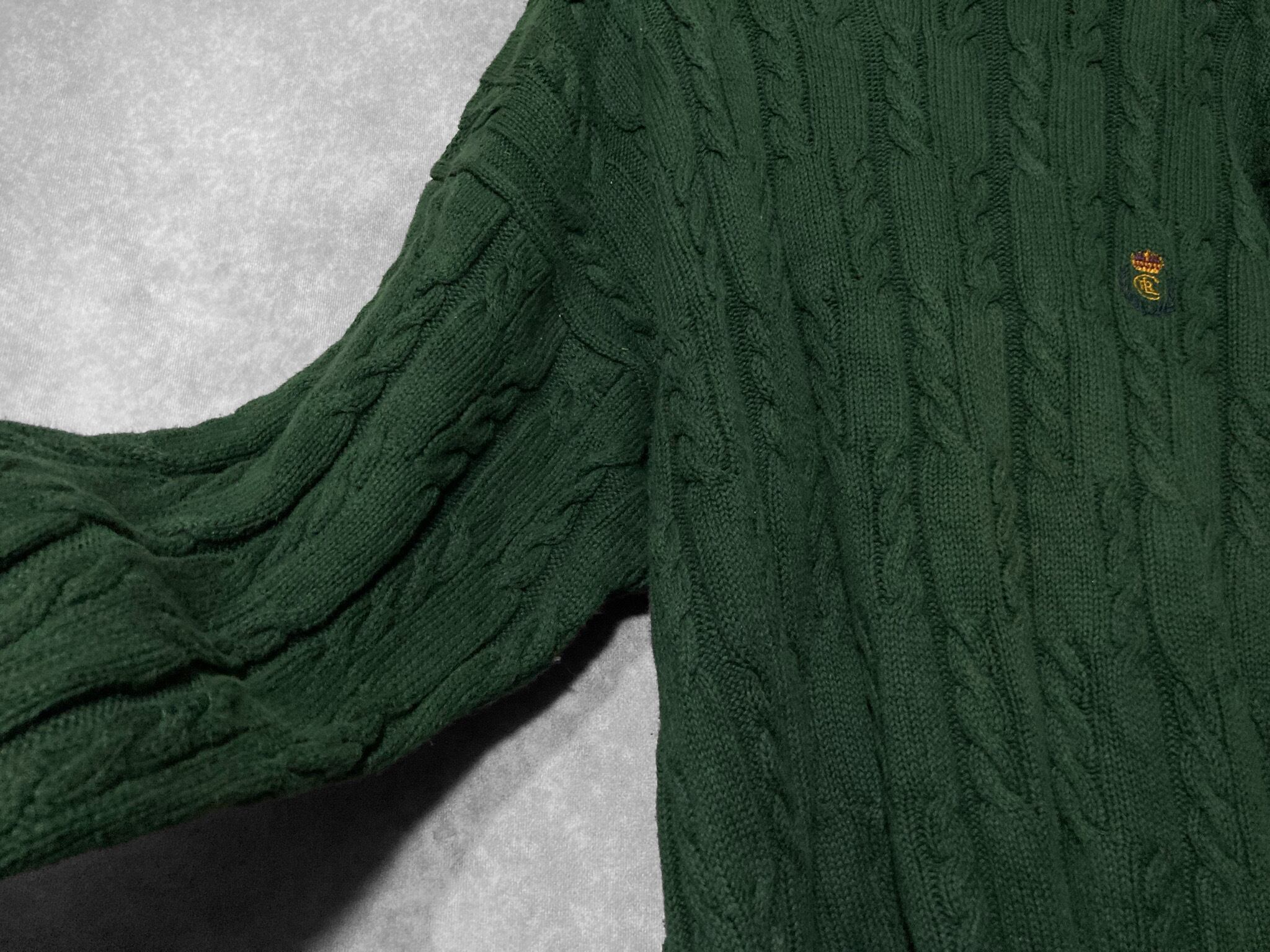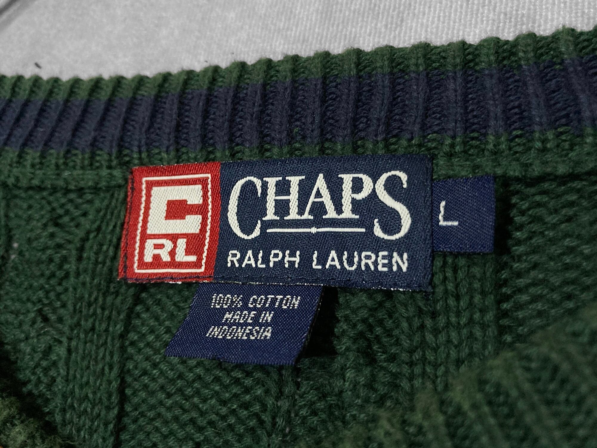 CHAPS RALPH LAUREN 90's XXL chest emblem logo embroidery × cable knitting design sweater