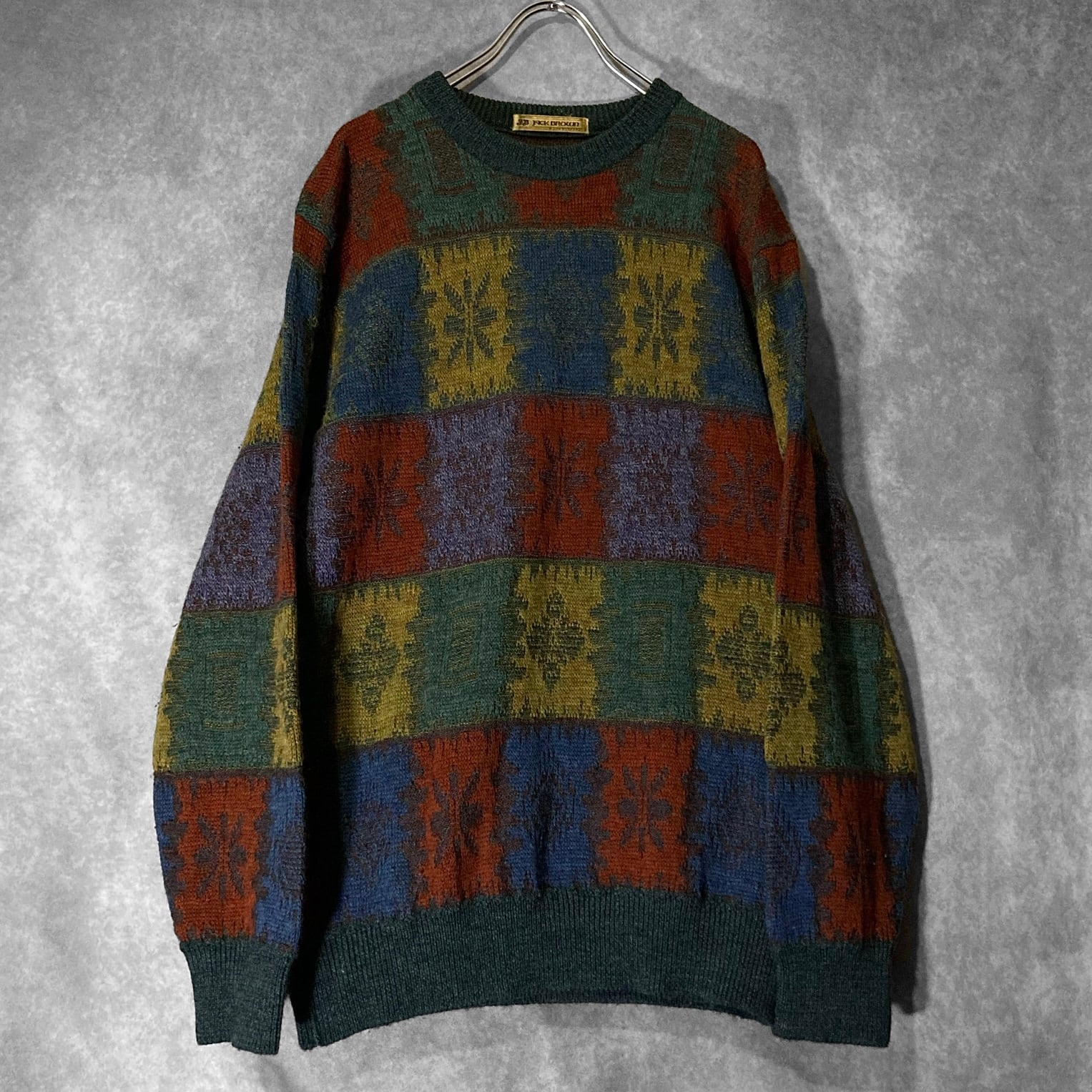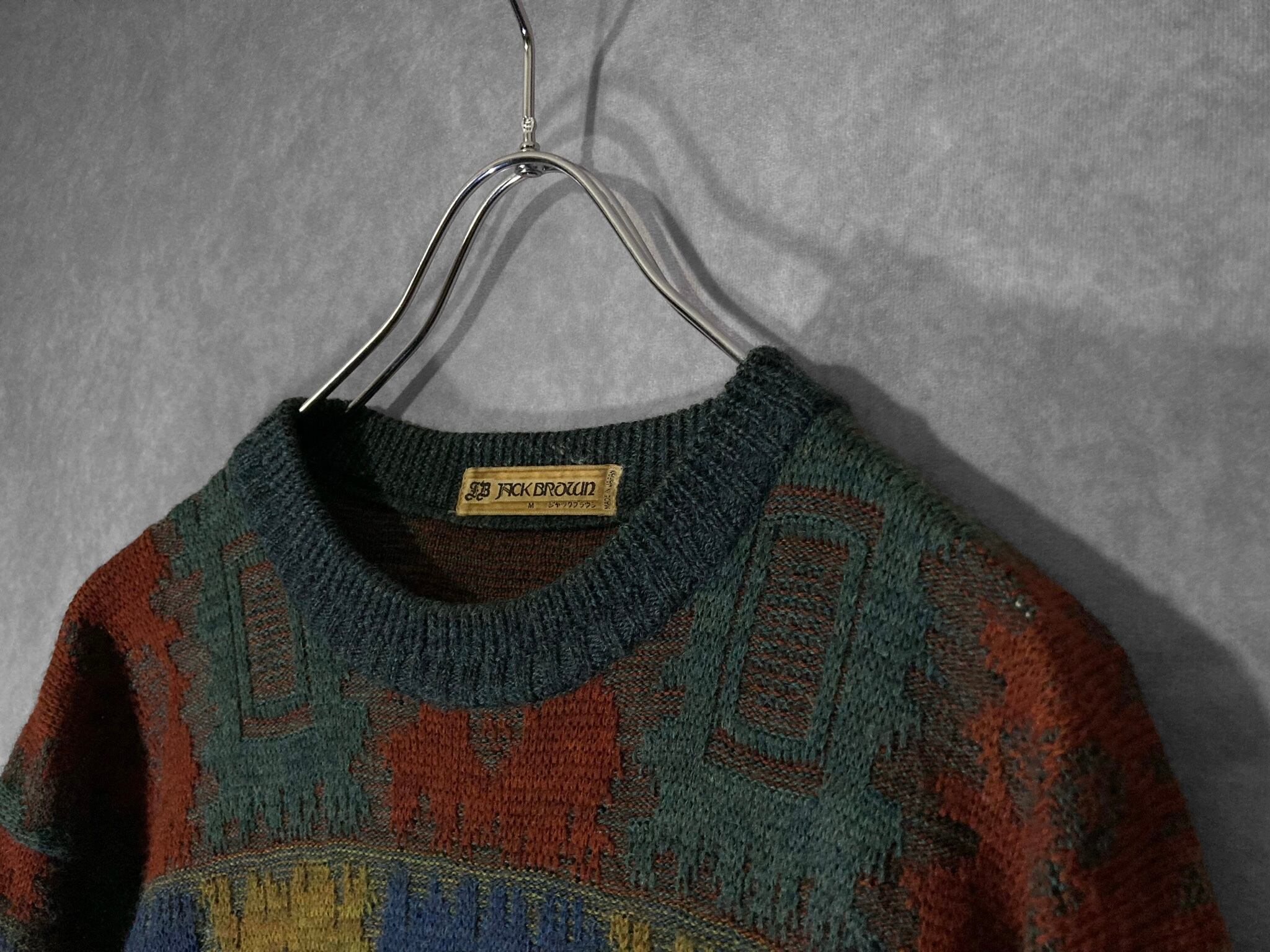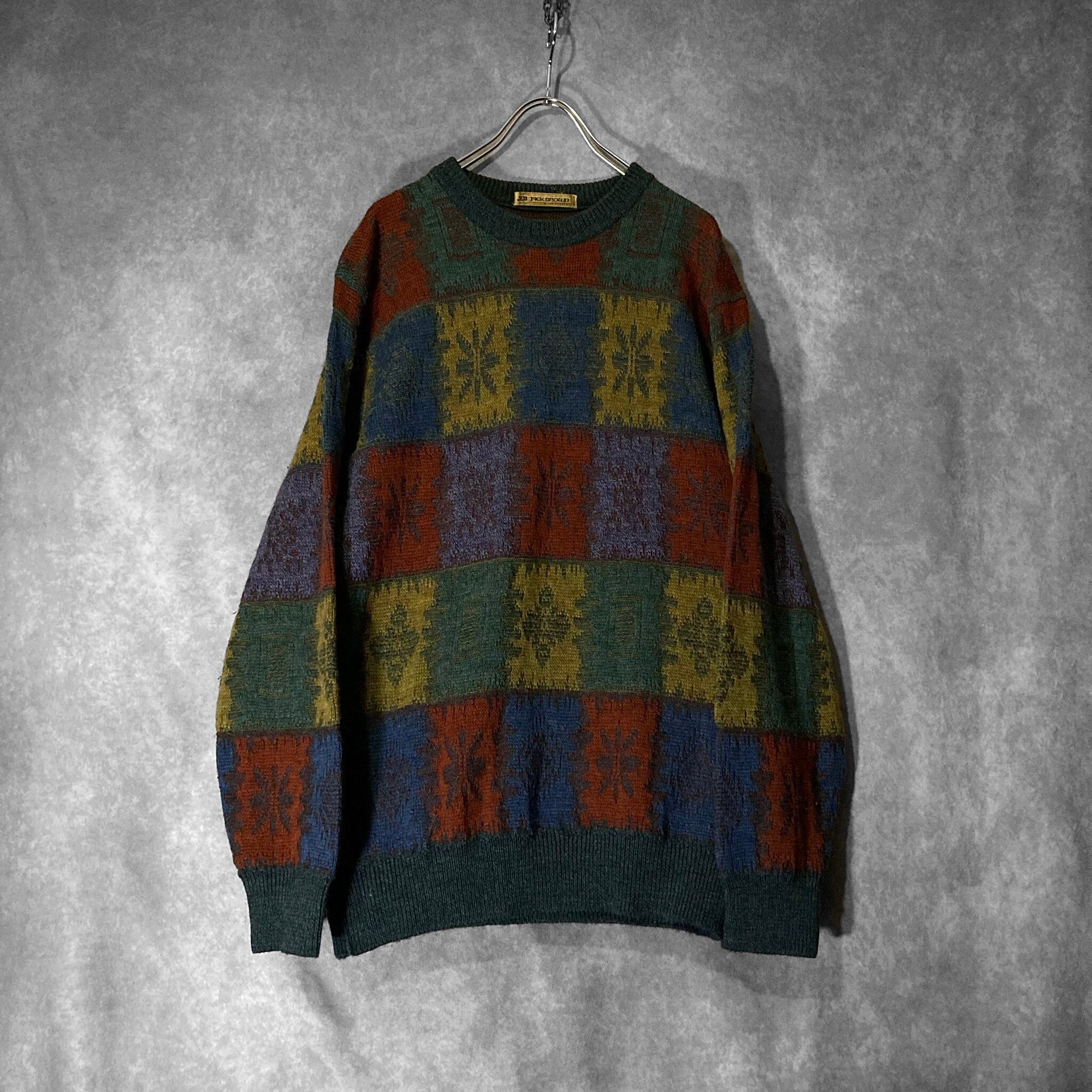 色彩 JACK BROWN made in Japan, XL Gradation color block all over pattern design knit sweater