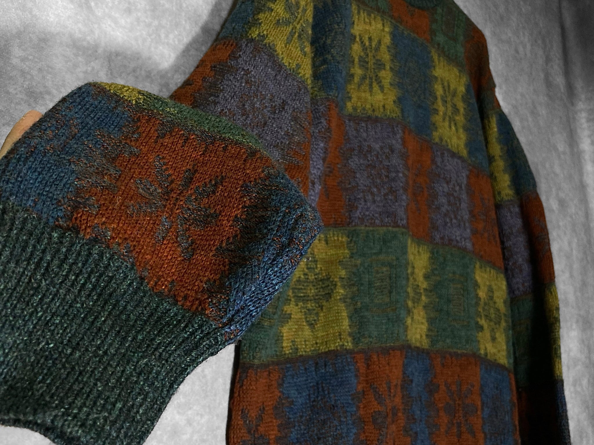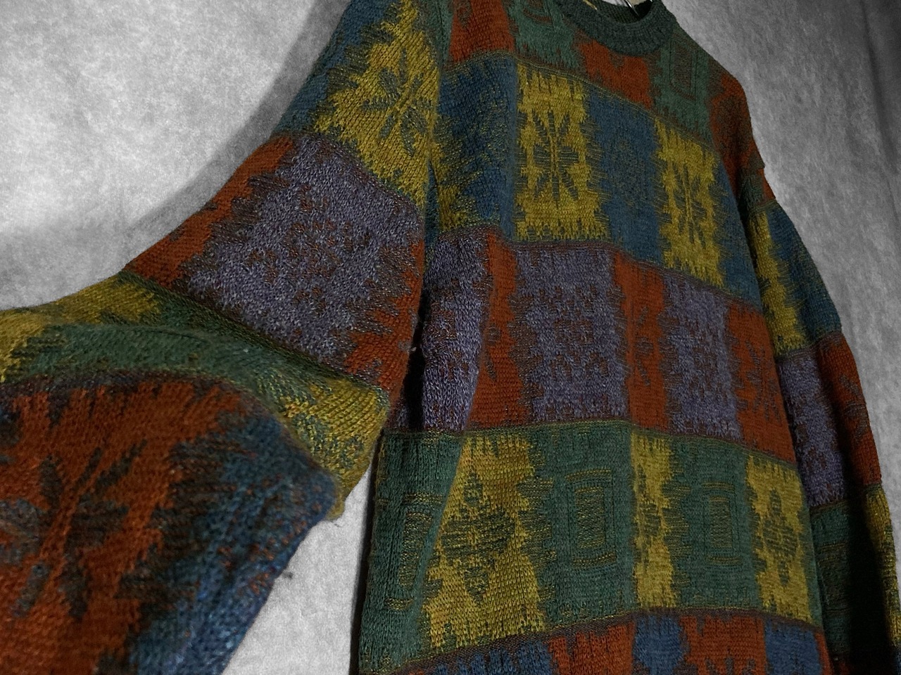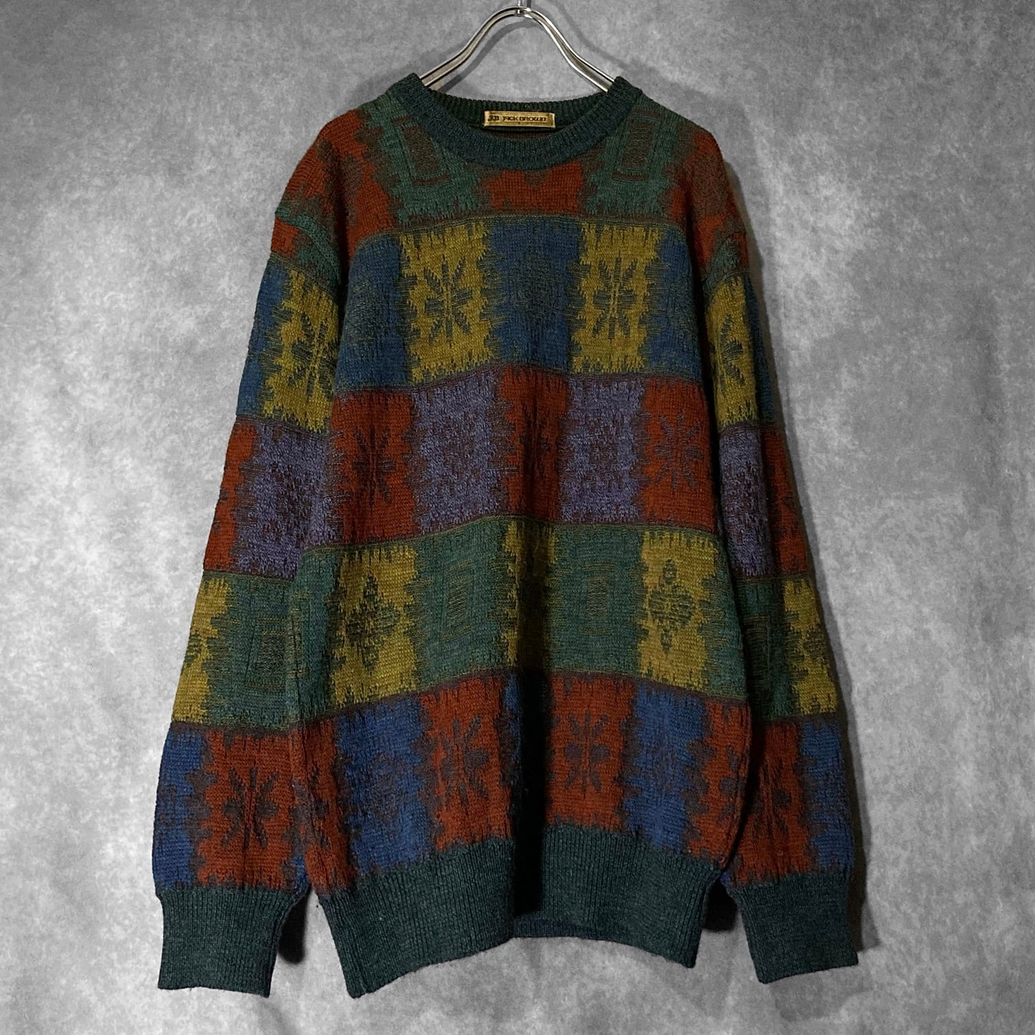 色彩 JACK BROWN made in Japan, XL Gradation color block all over pattern design knit sweater