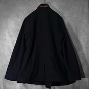 オーセンティックなボタンの2つ並んだダブルブレストタイプのフロントは、襟下にもボタンが設けられ、ボタンを留めることでナポレオンジャケットのように着ることができる優れモノ。