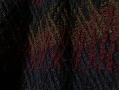 斜めの格子状に編まれたケーブル編みと色彩豊かなグラデーションデザインが印象的で洒落た1着。