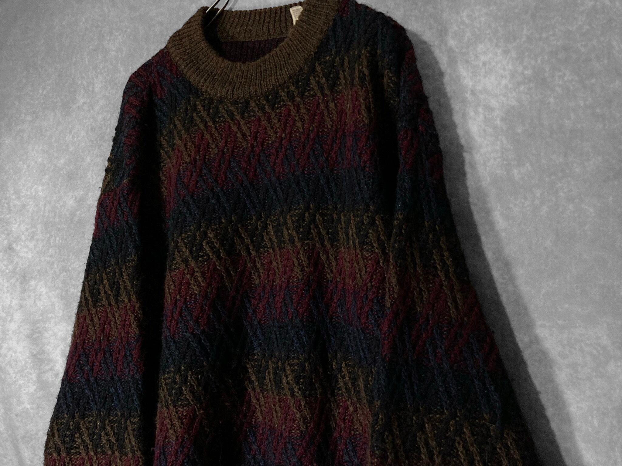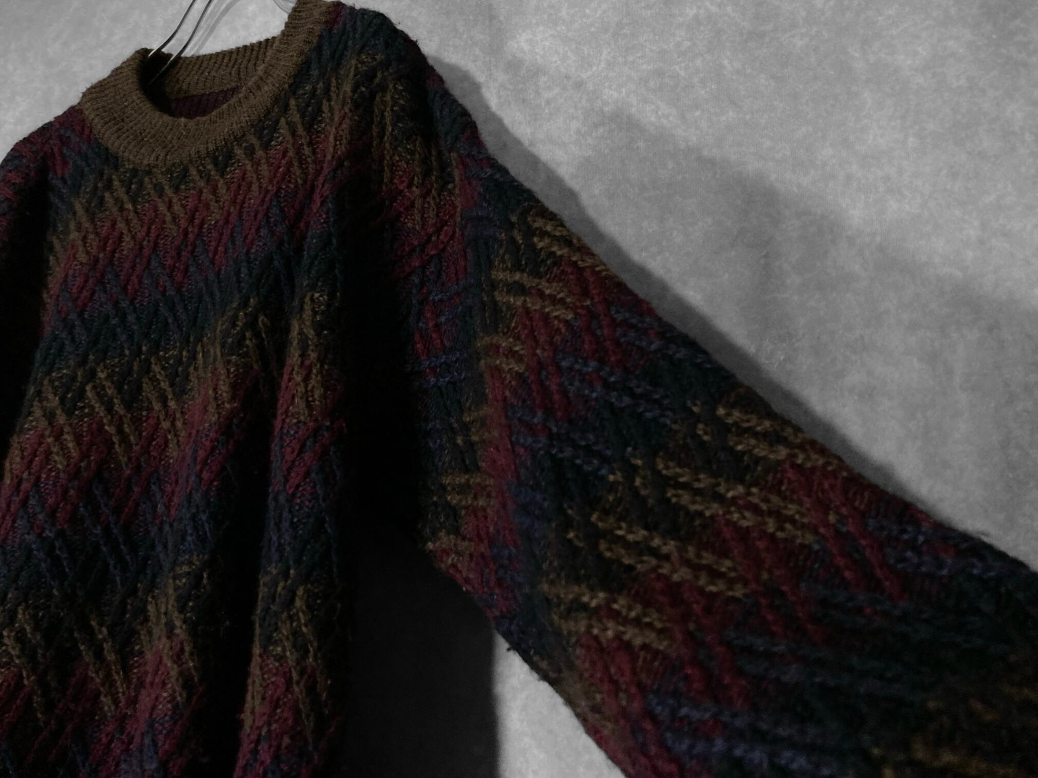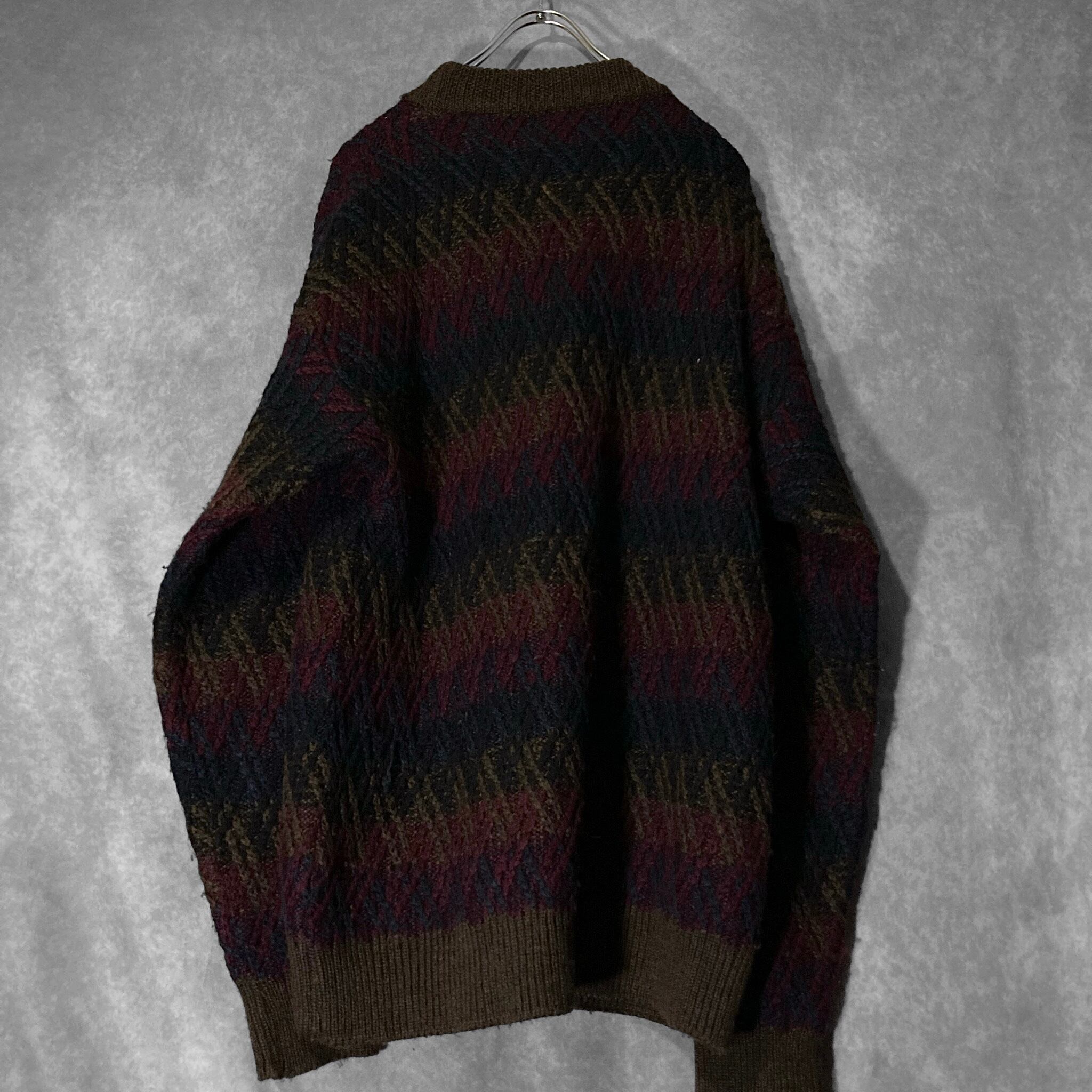 made in Italy 70-80's XL-XXL Gradation colors crossing line all over pattern design vintage knit sweater