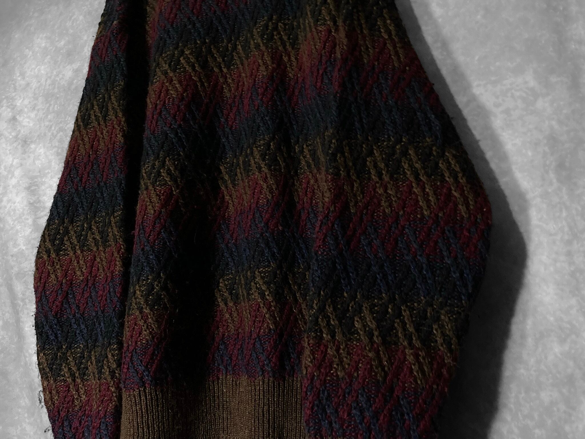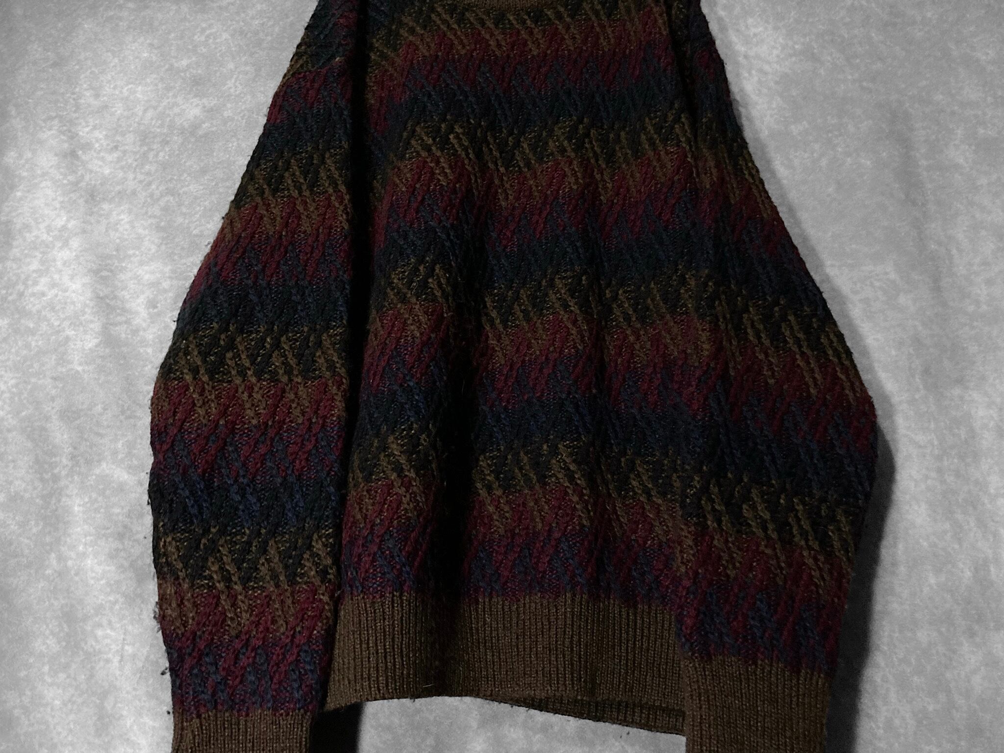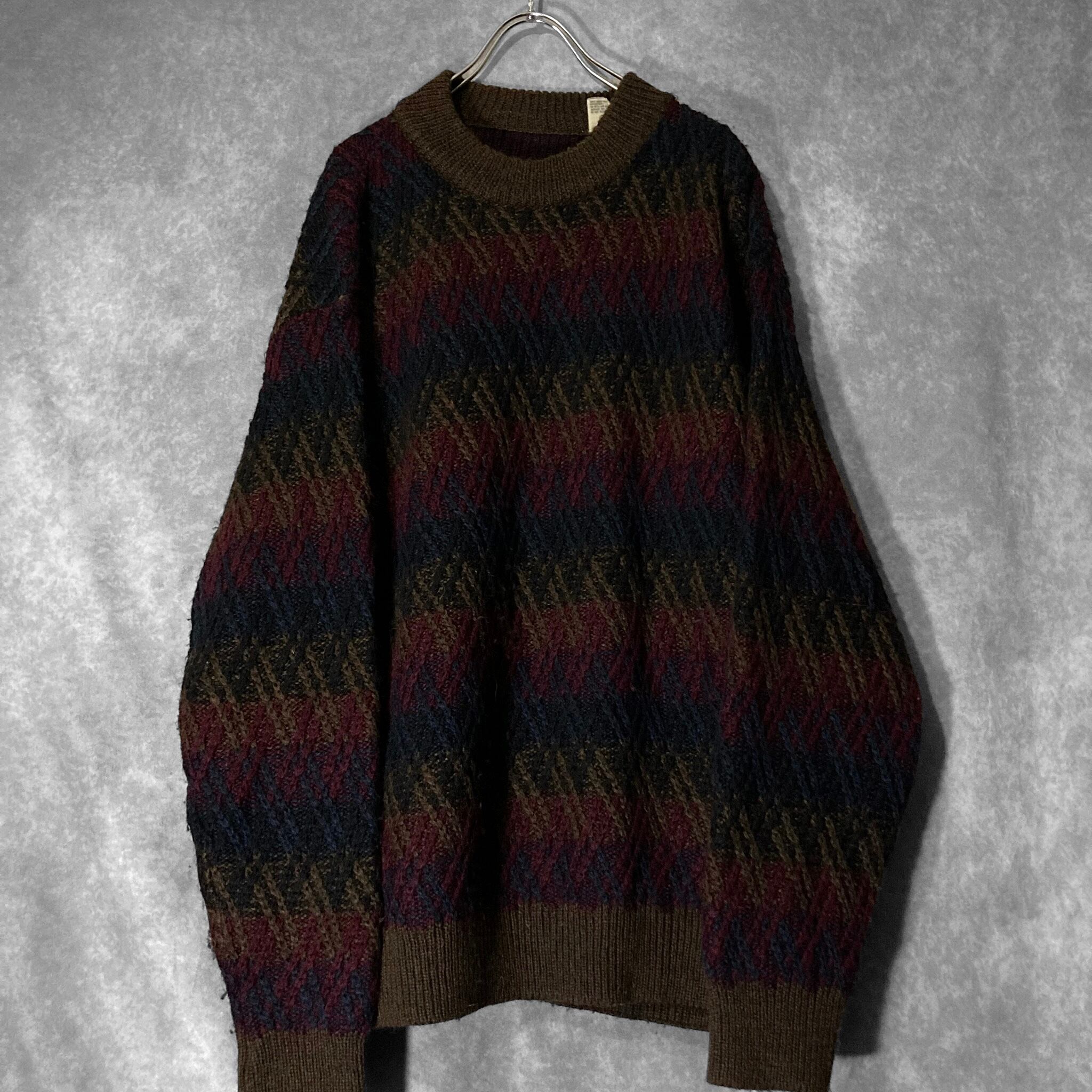 made in Italy 70-80's XL-XXL Gradation colors crossing line all over pattern design vintage knit sweater
