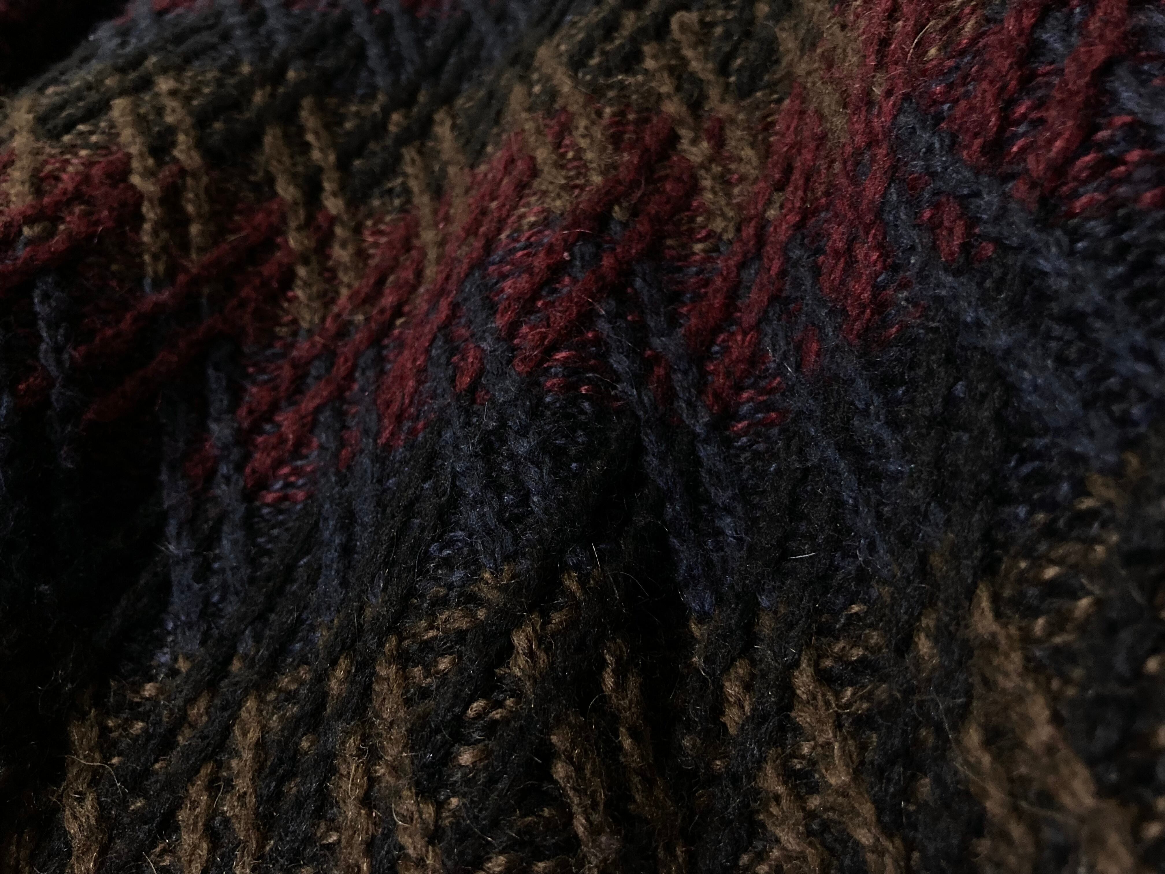 当店で毎回ご好評いただいている厳選したニットコレクションより、ローゲージのニットでざっくりと編まれたグラデーションデザインが雰囲気ムンムンな総柄ニットの入荷です。