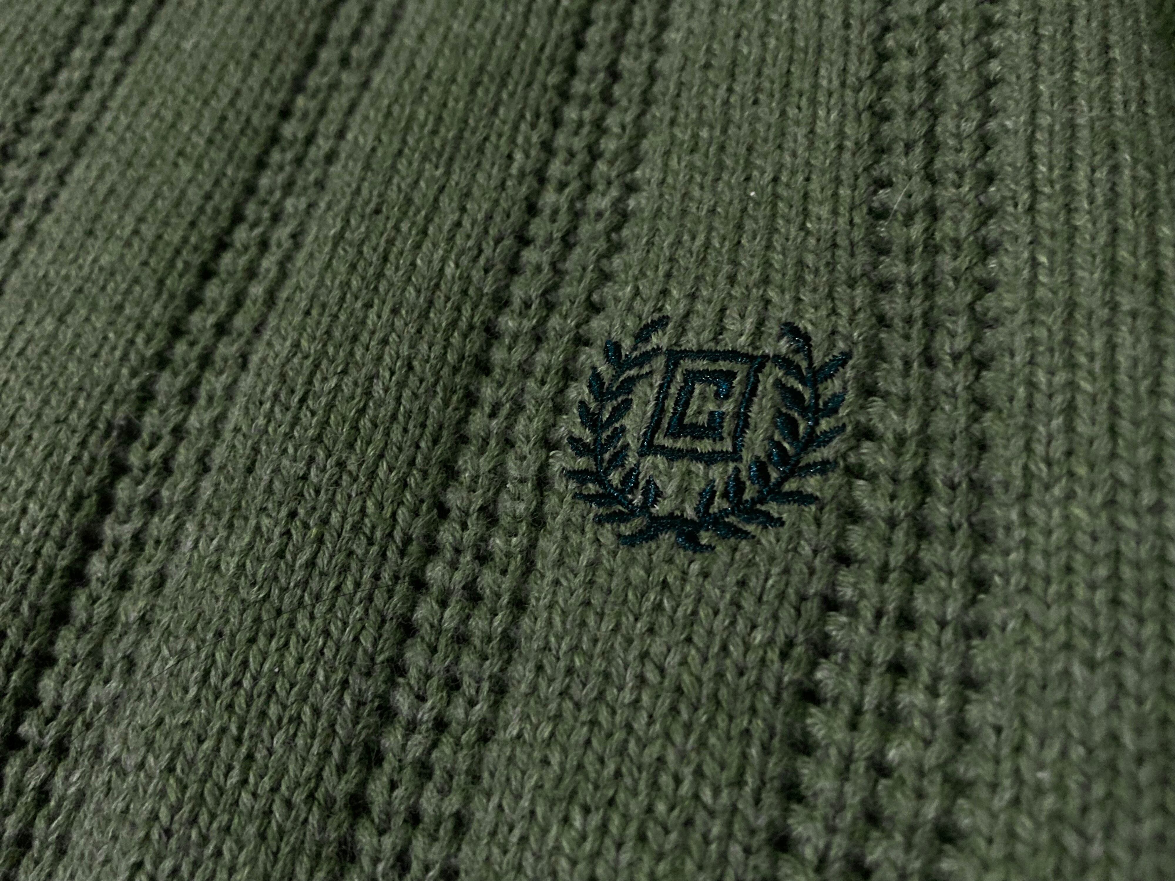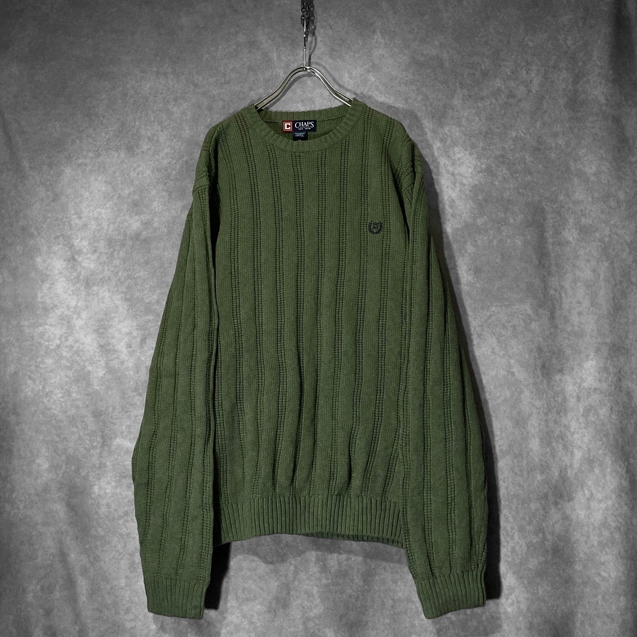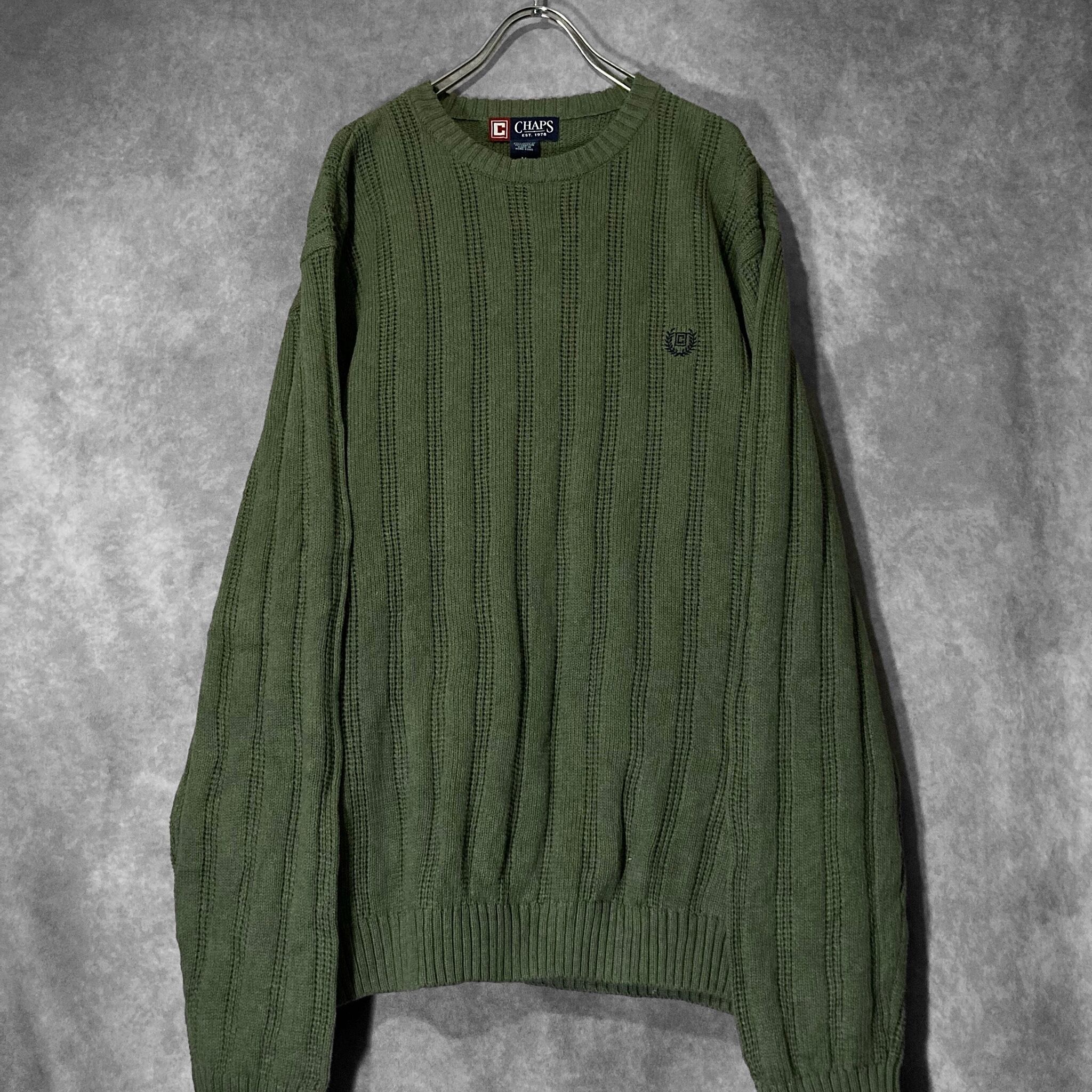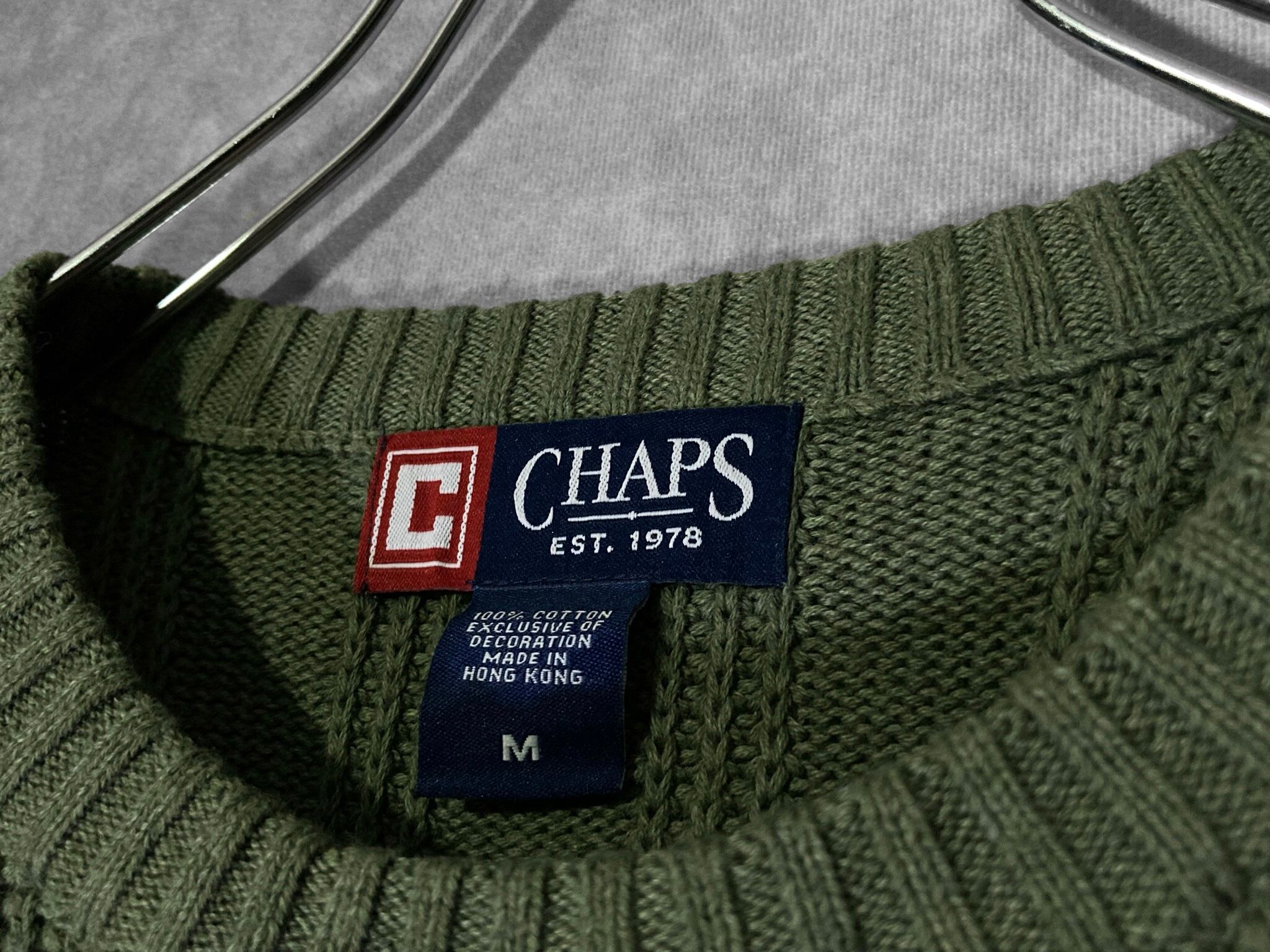 CHAPS stripe texture pattern and chest emblem embroidery design knit sweater