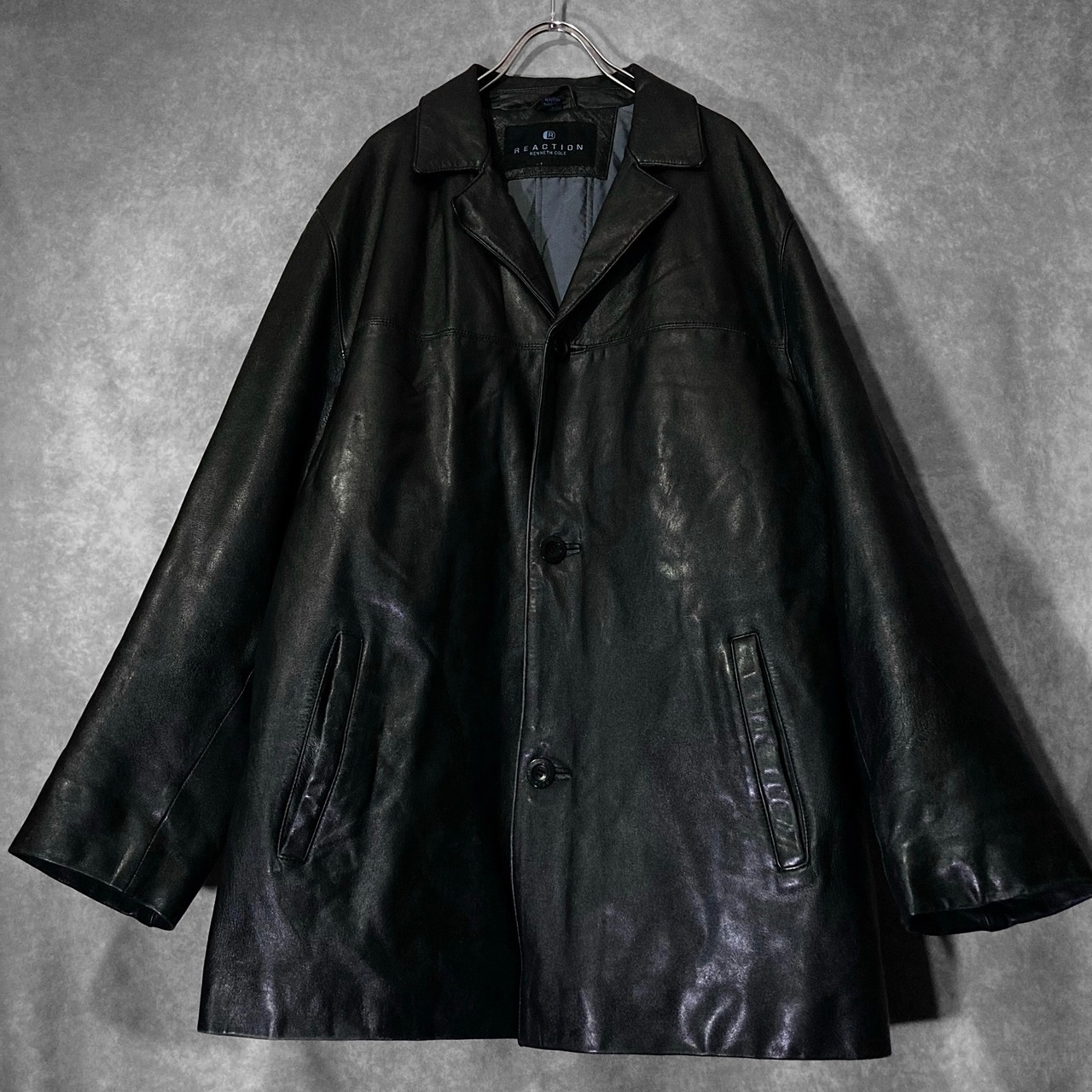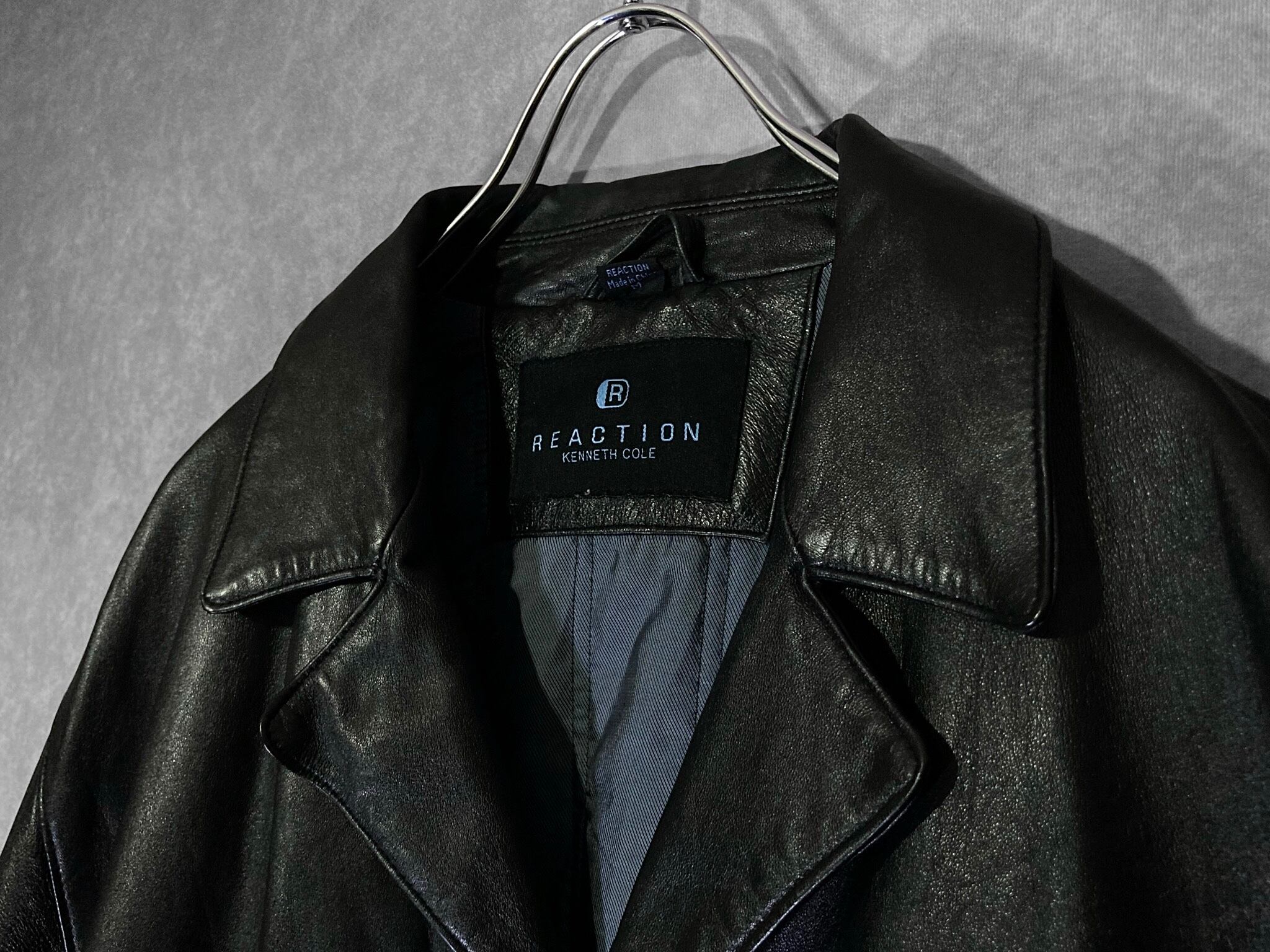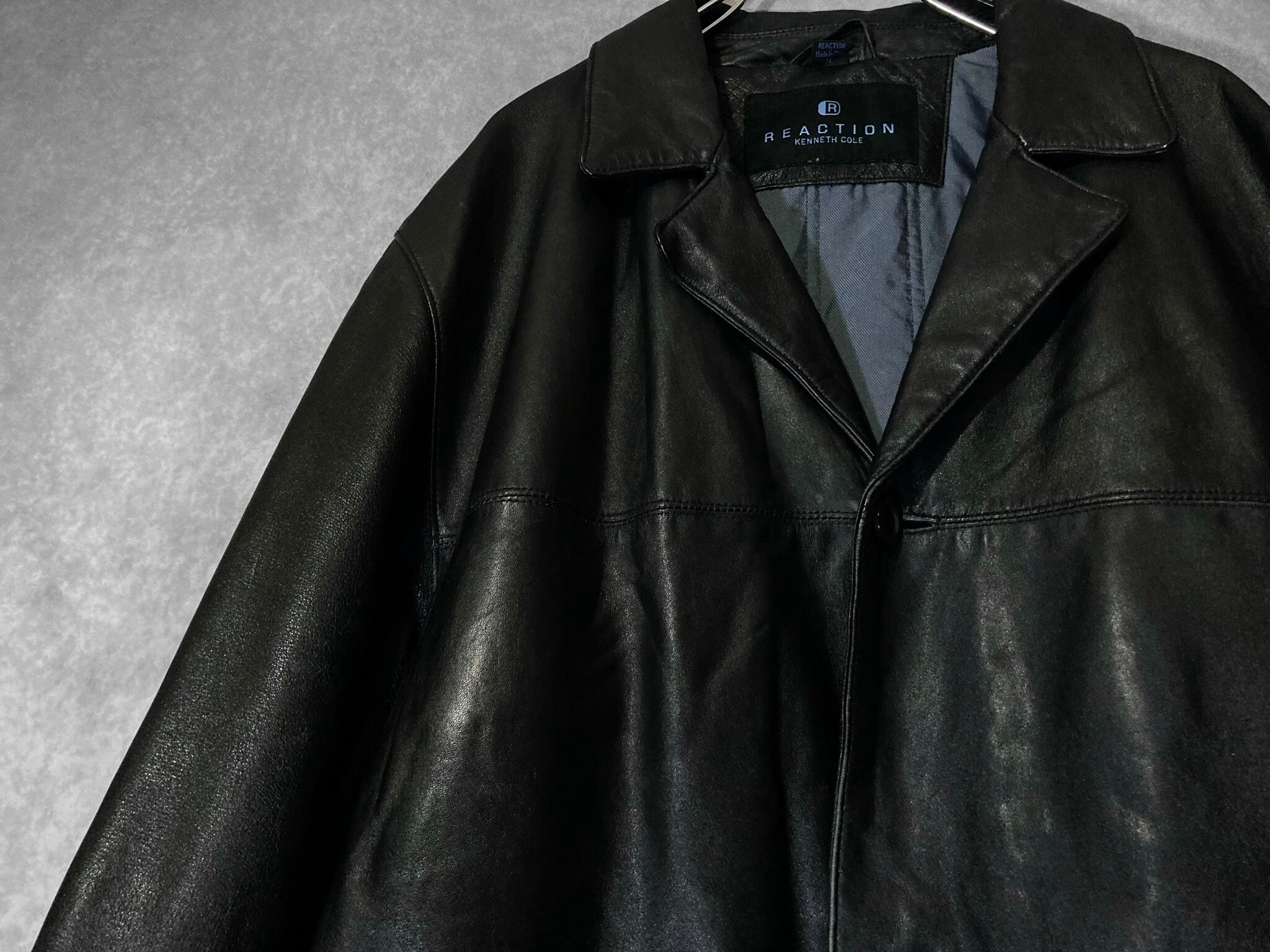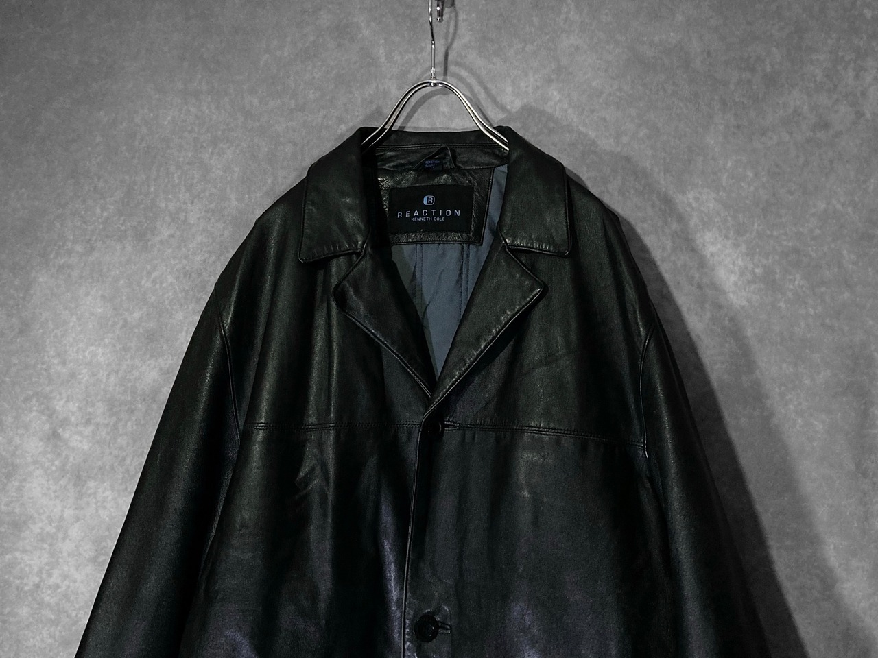 完品 " 極上 " REACTION KENNETH COLE Glossy genuine leather fabric vintage Bonaparte collar jacket