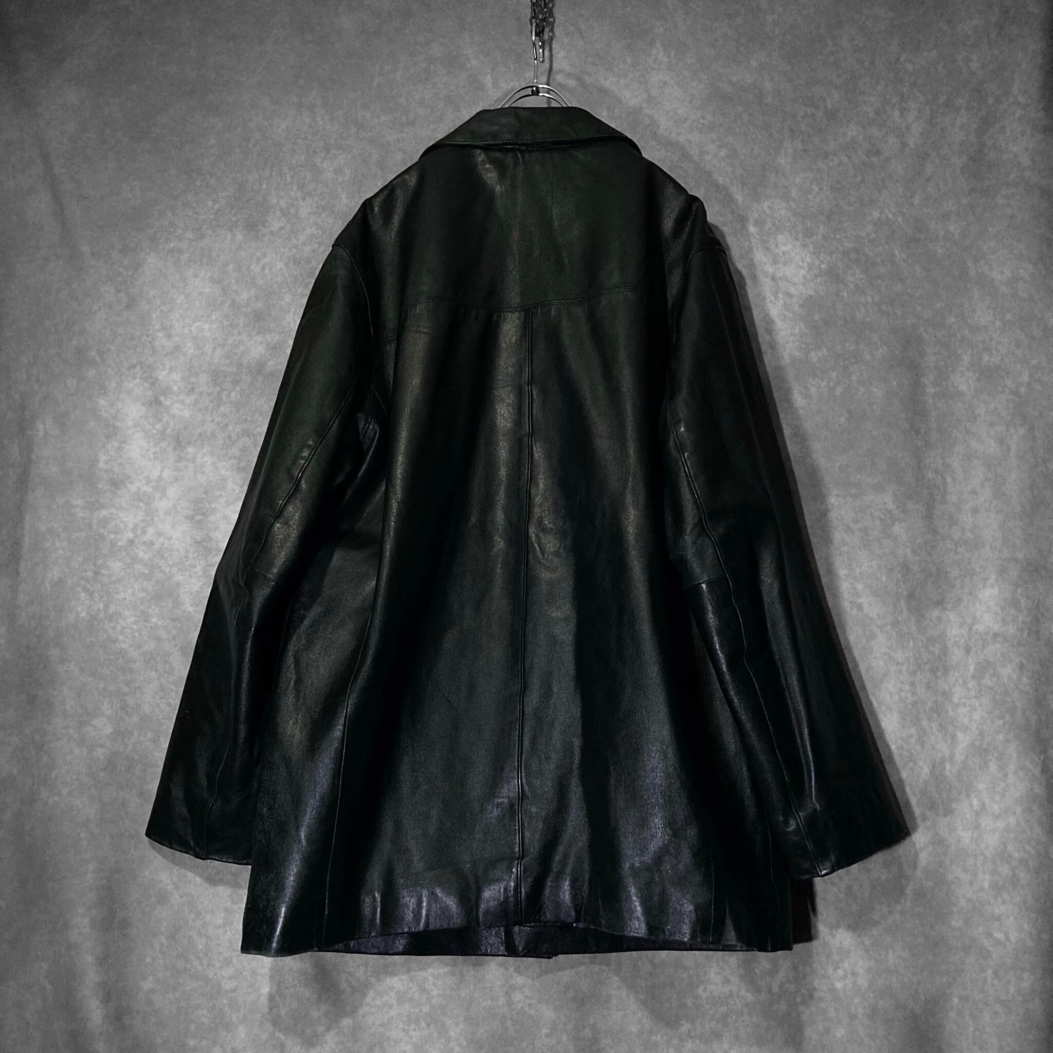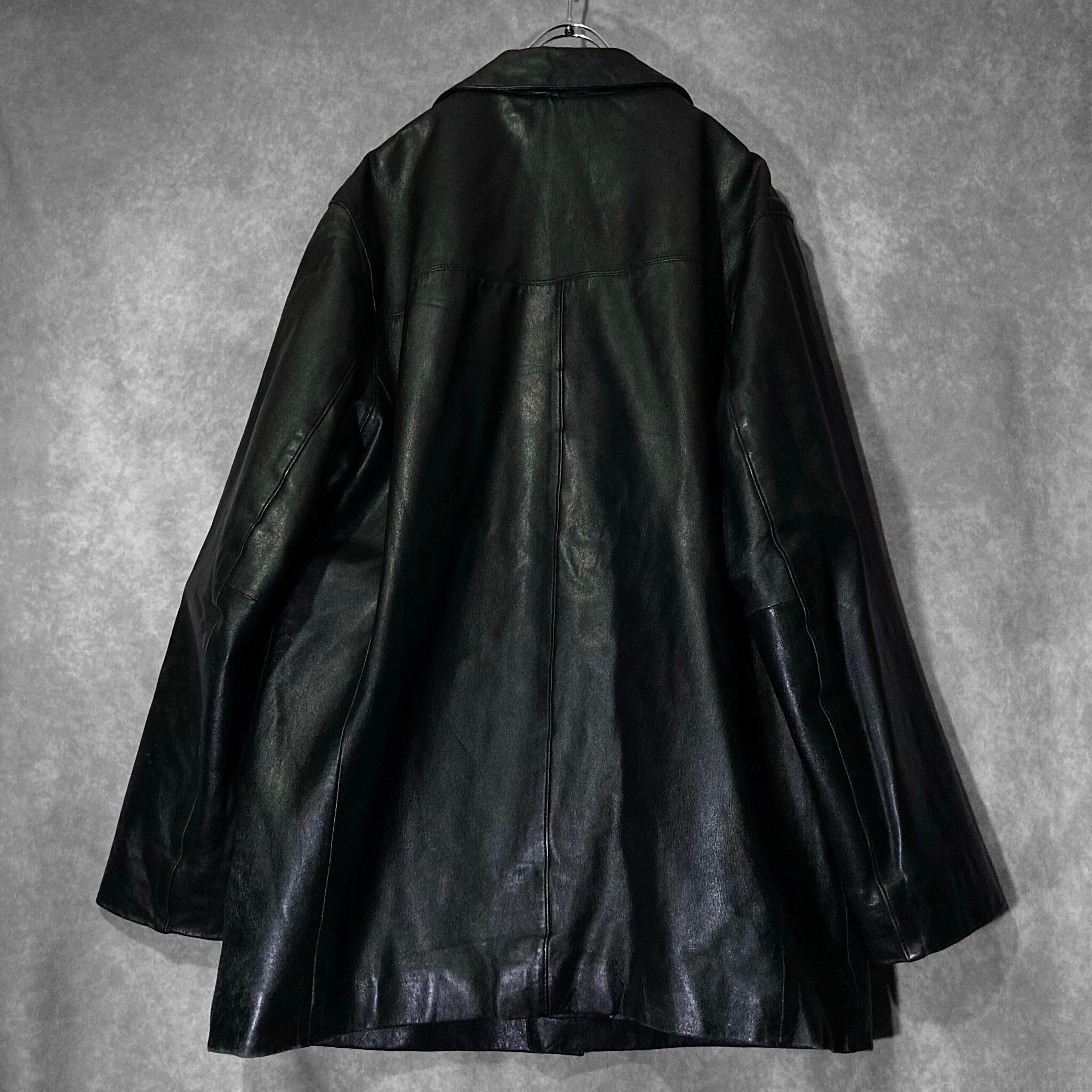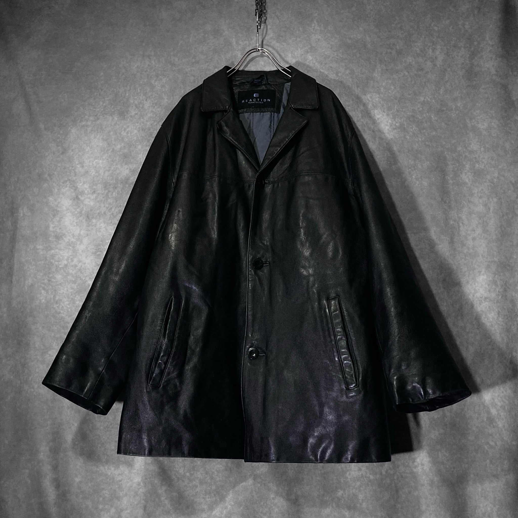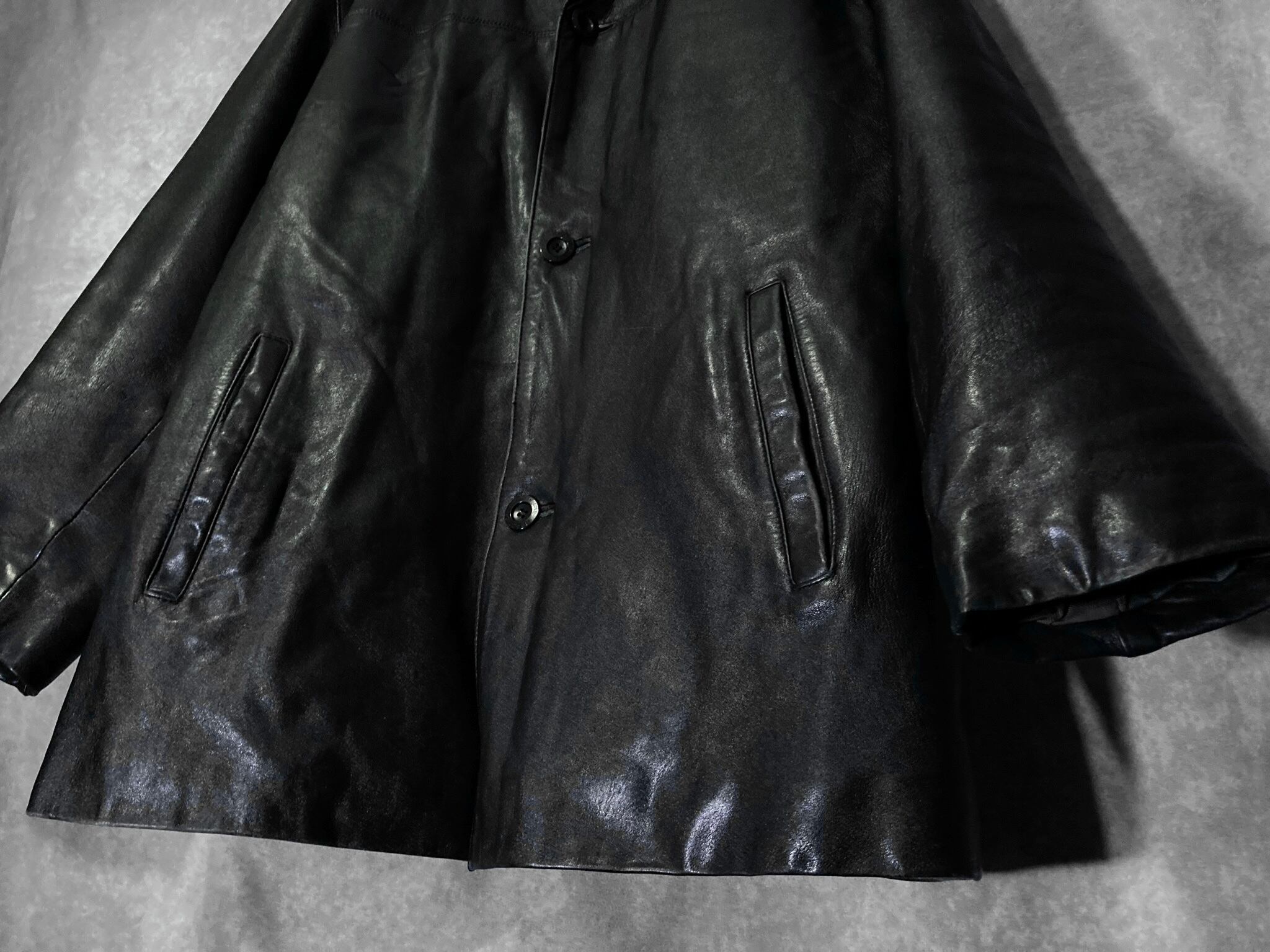 完品 " 極上 " REACTION KENNETH COLE Glossy genuine leather fabric vintage Bonaparte collar jacket