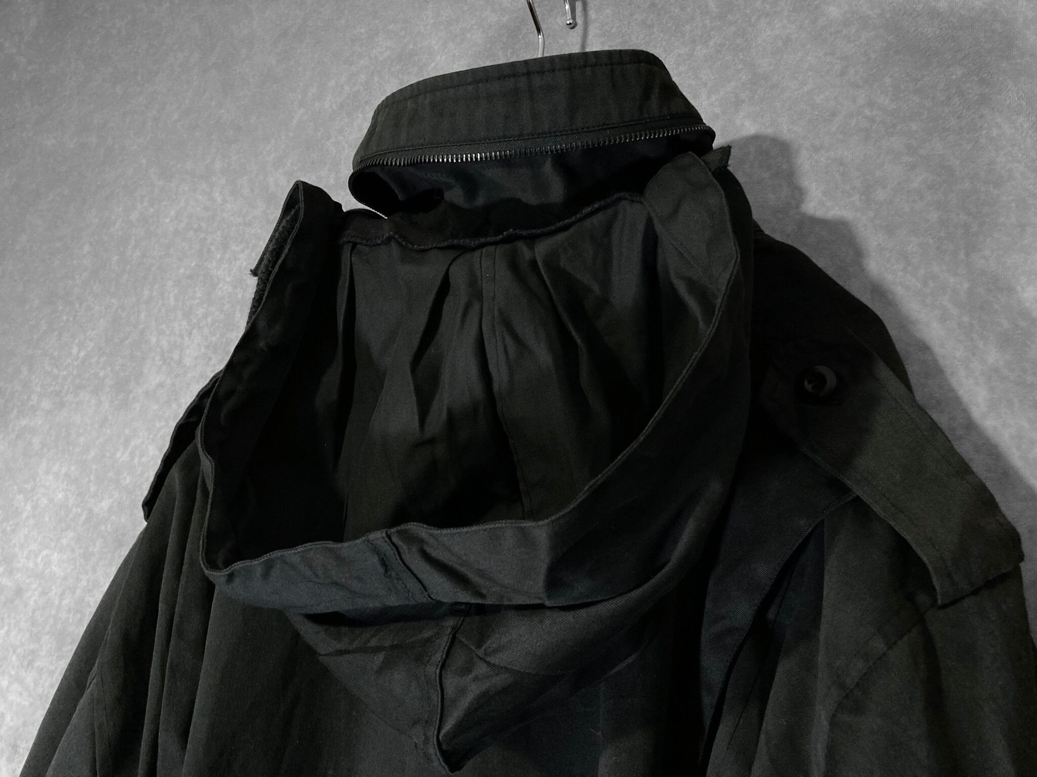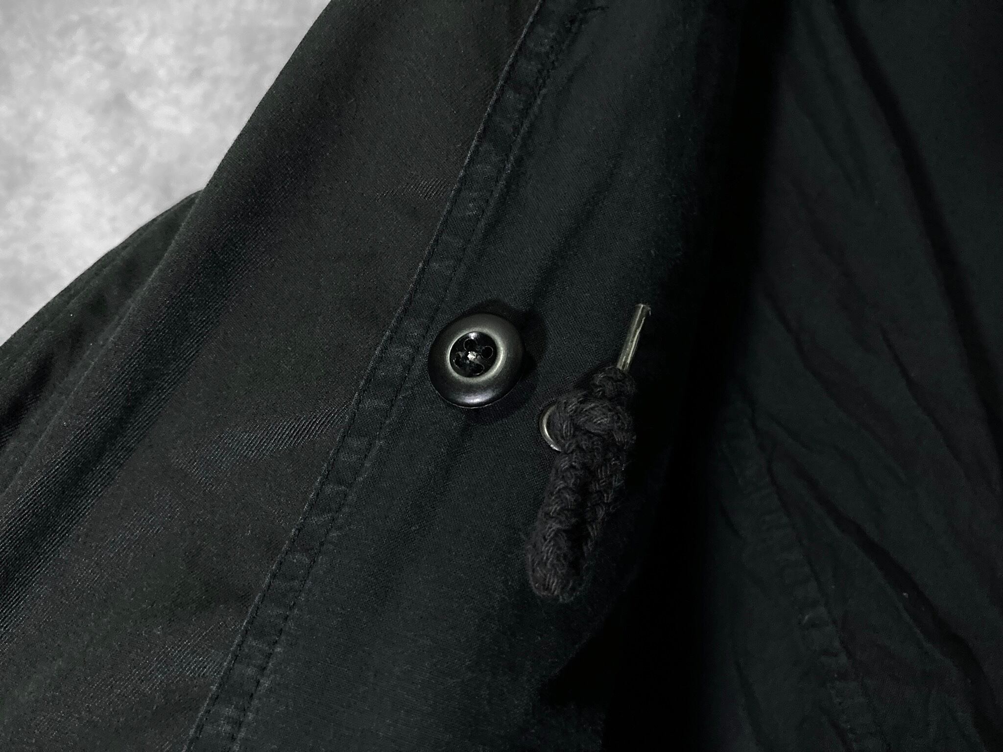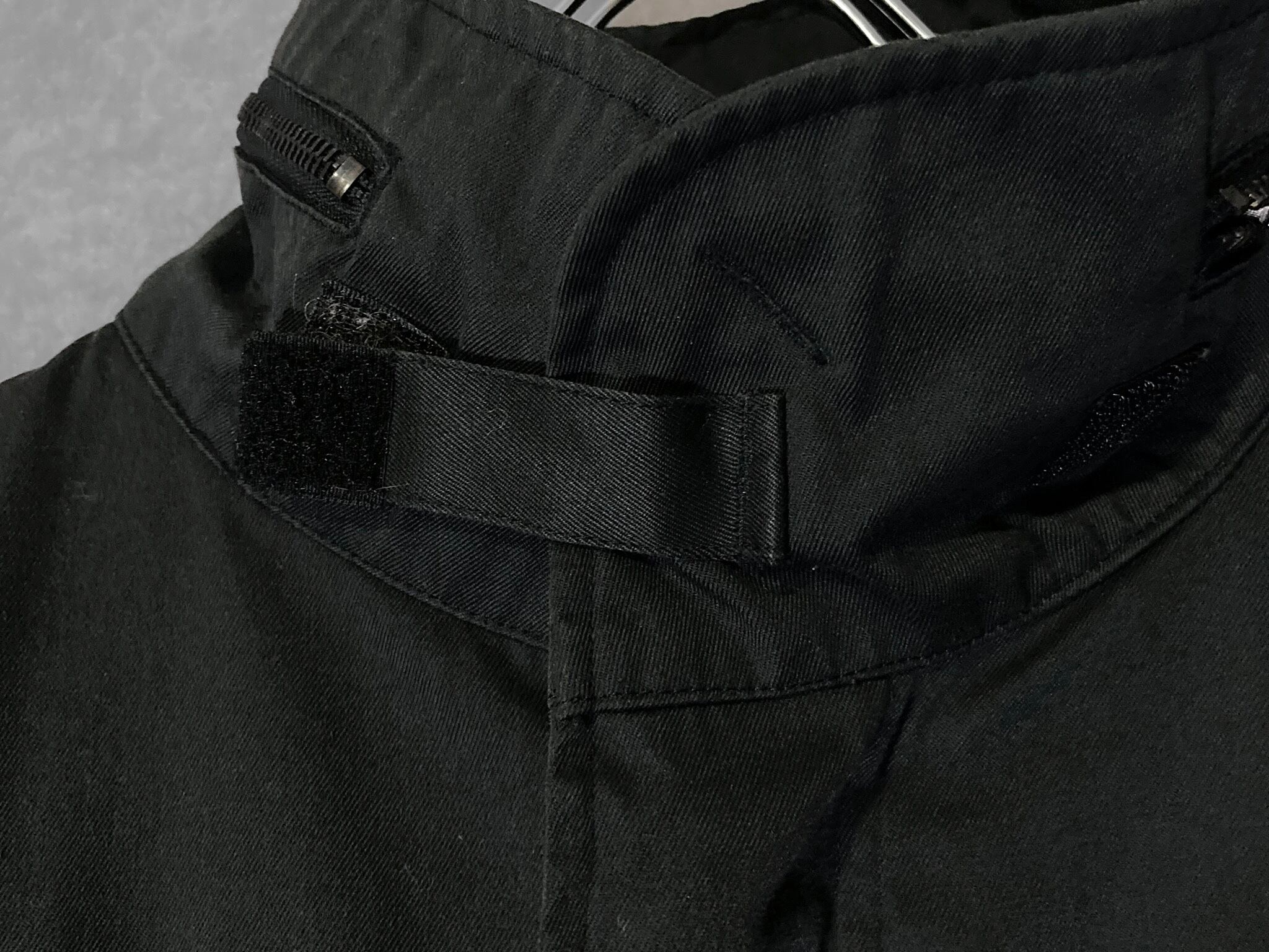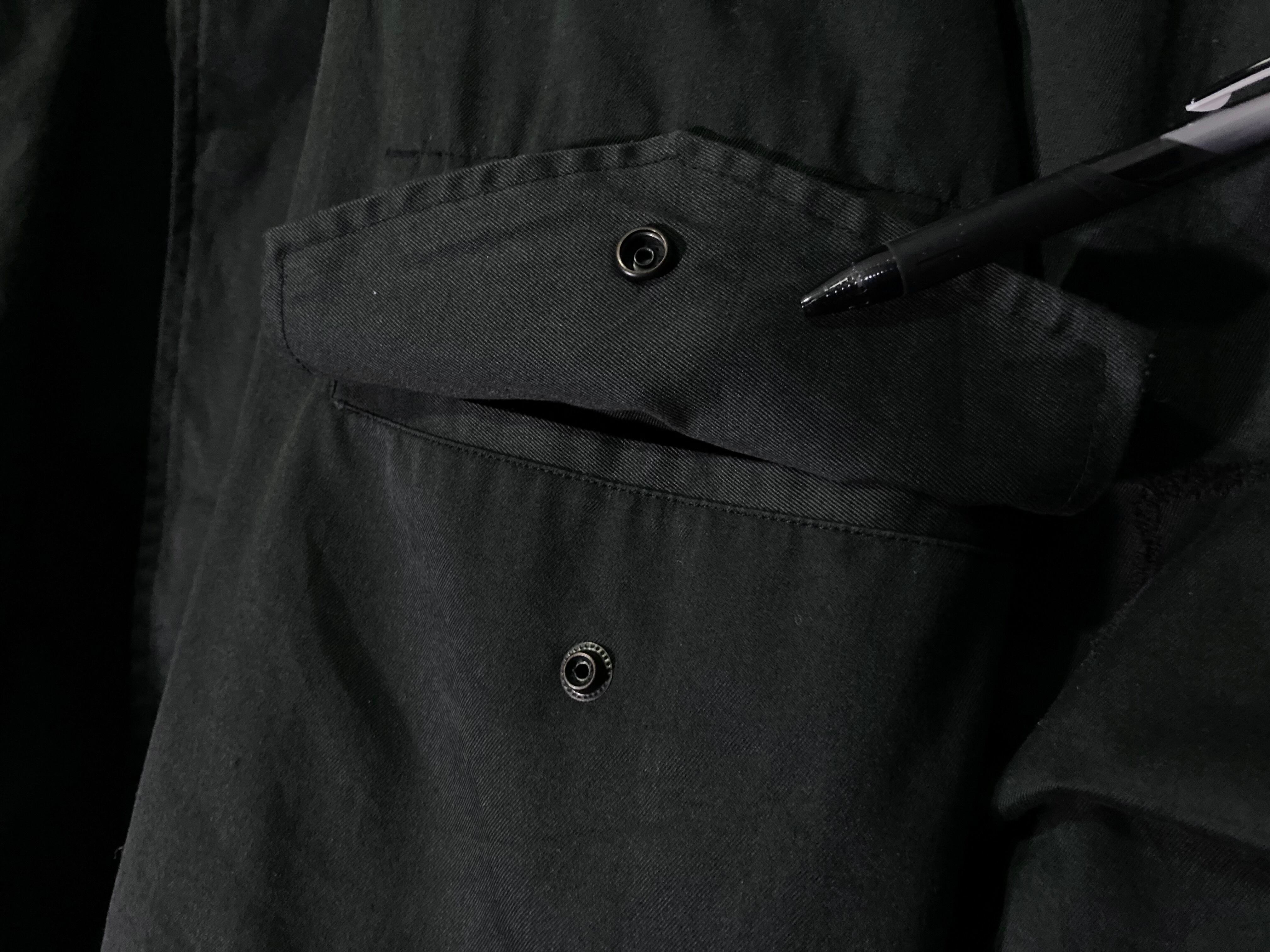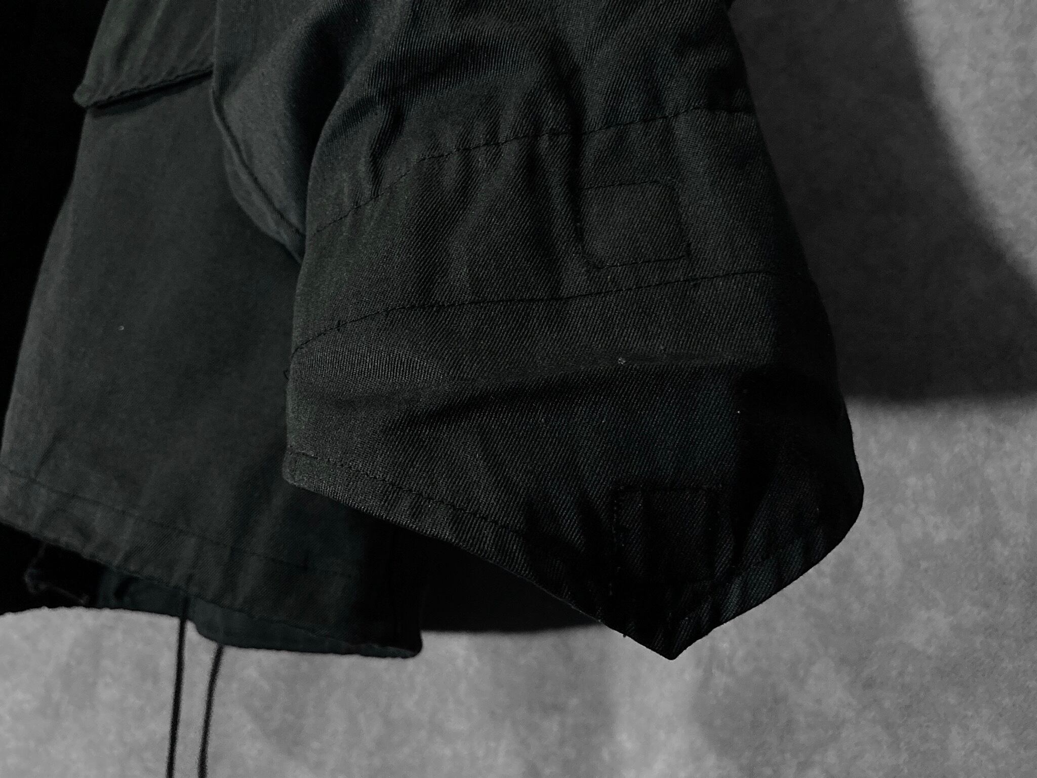 首元にはジップで取り出し可能なフードを備え、肩のエポーレット(肩章)や、調節可能な裾のドローコードなどデッドストックのM-65と遜色のないミリタリー好きも唸る逸品。