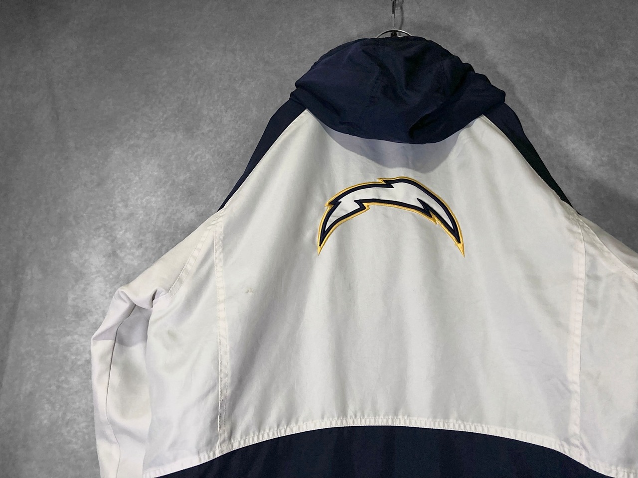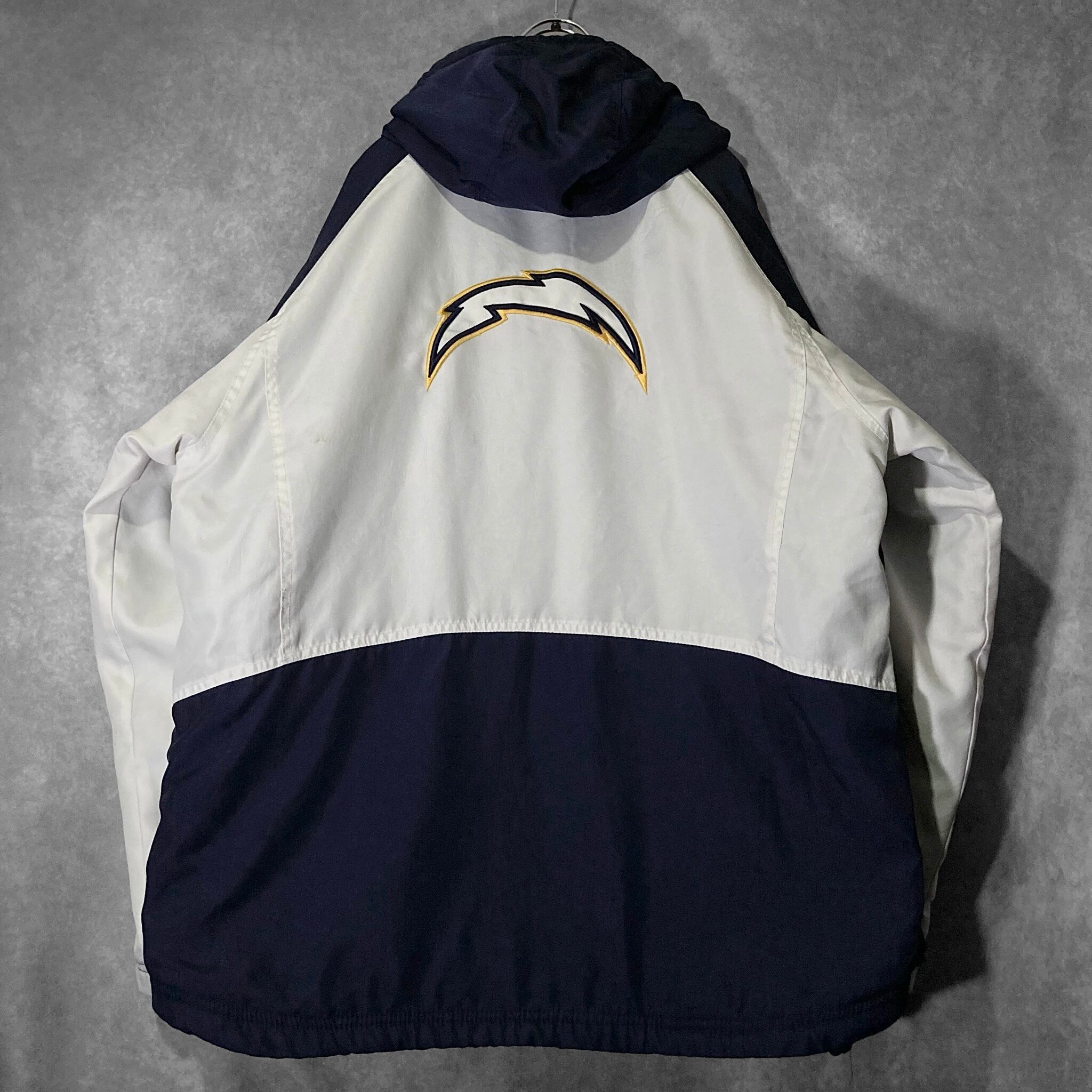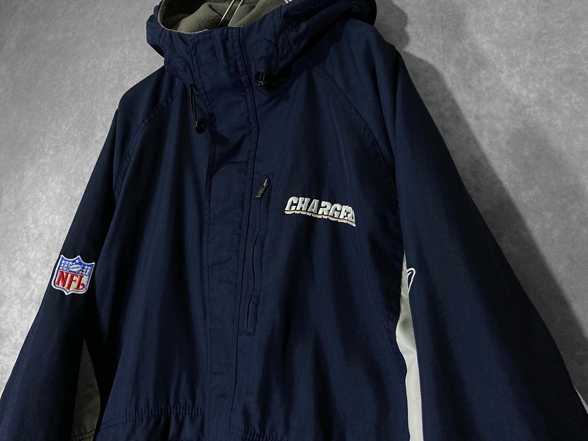Reebok 90's NFL XL CHARGEARS logo embroidery × Back embroidery patchwork design Hooded blouson