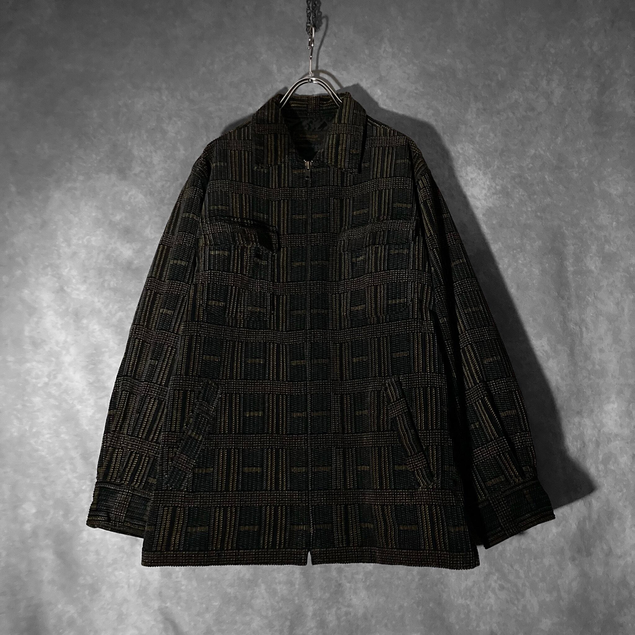 XL Corduroy fabric Lattice all over pattern design Full-zip CPO jacket
