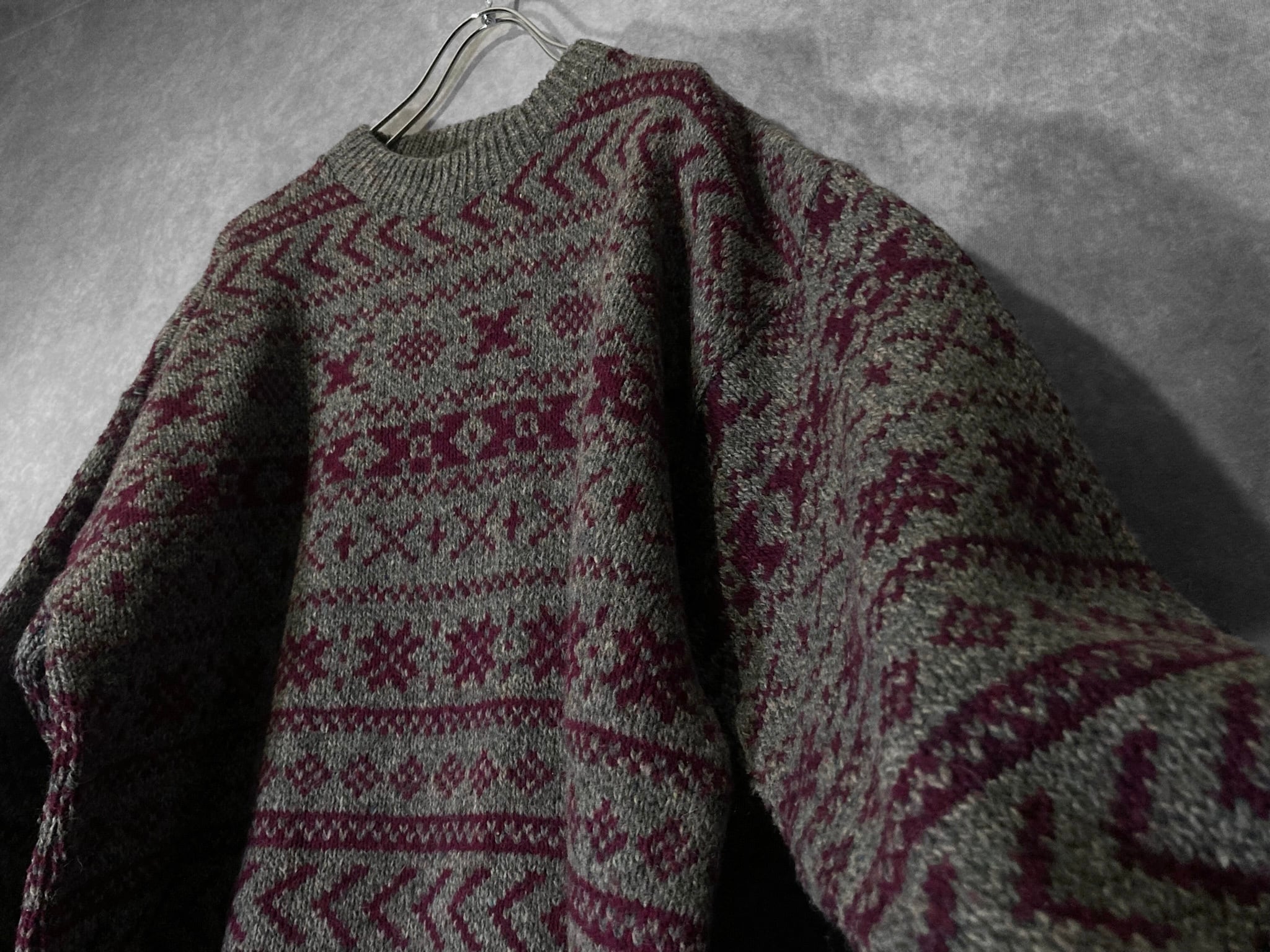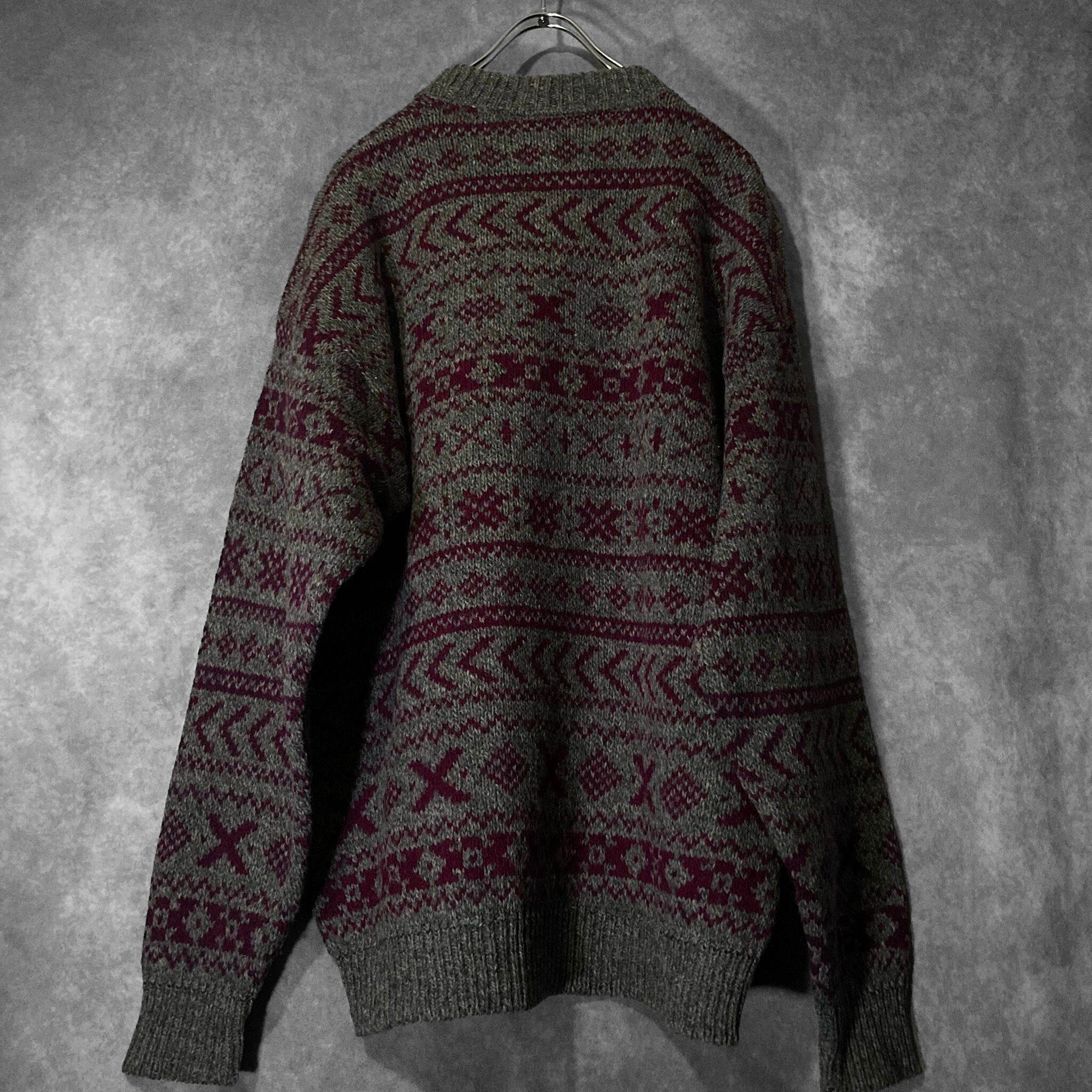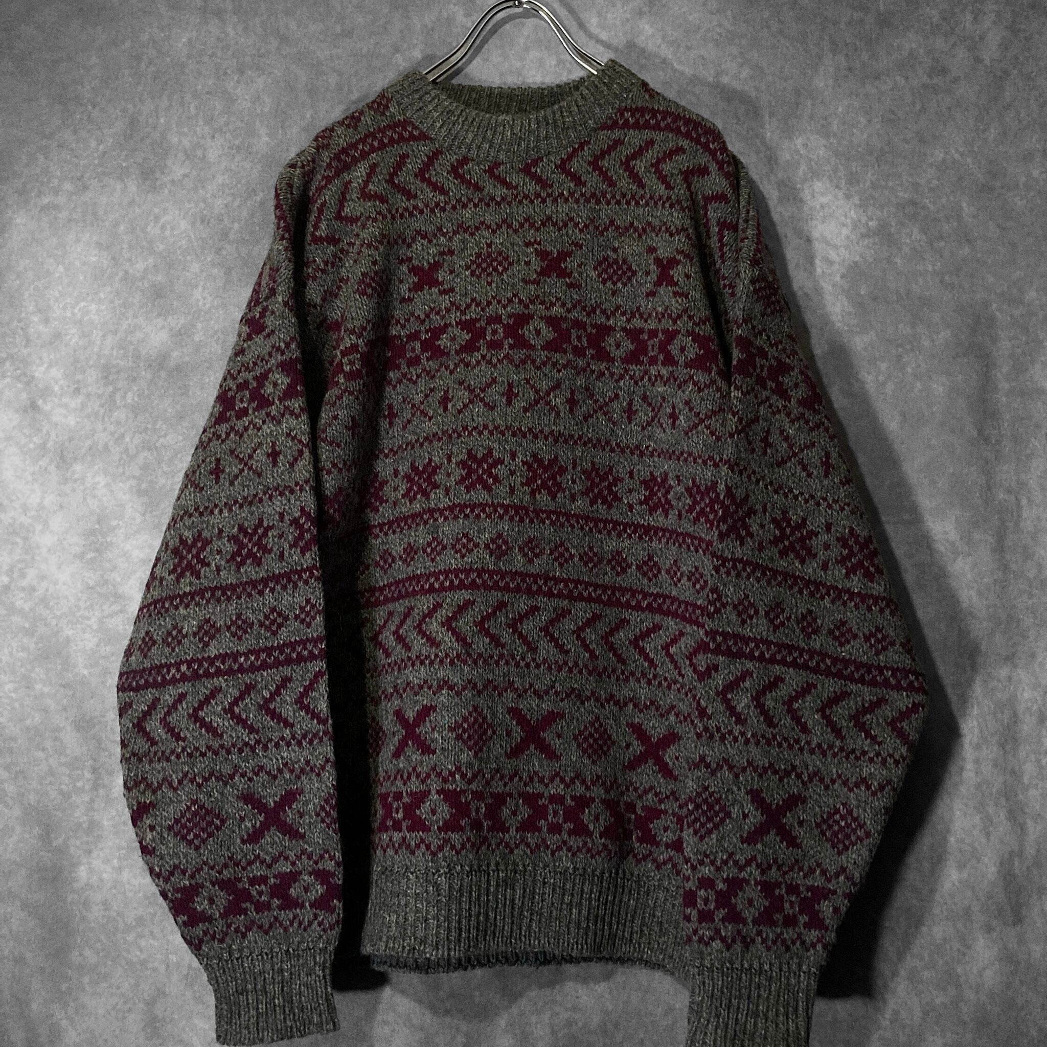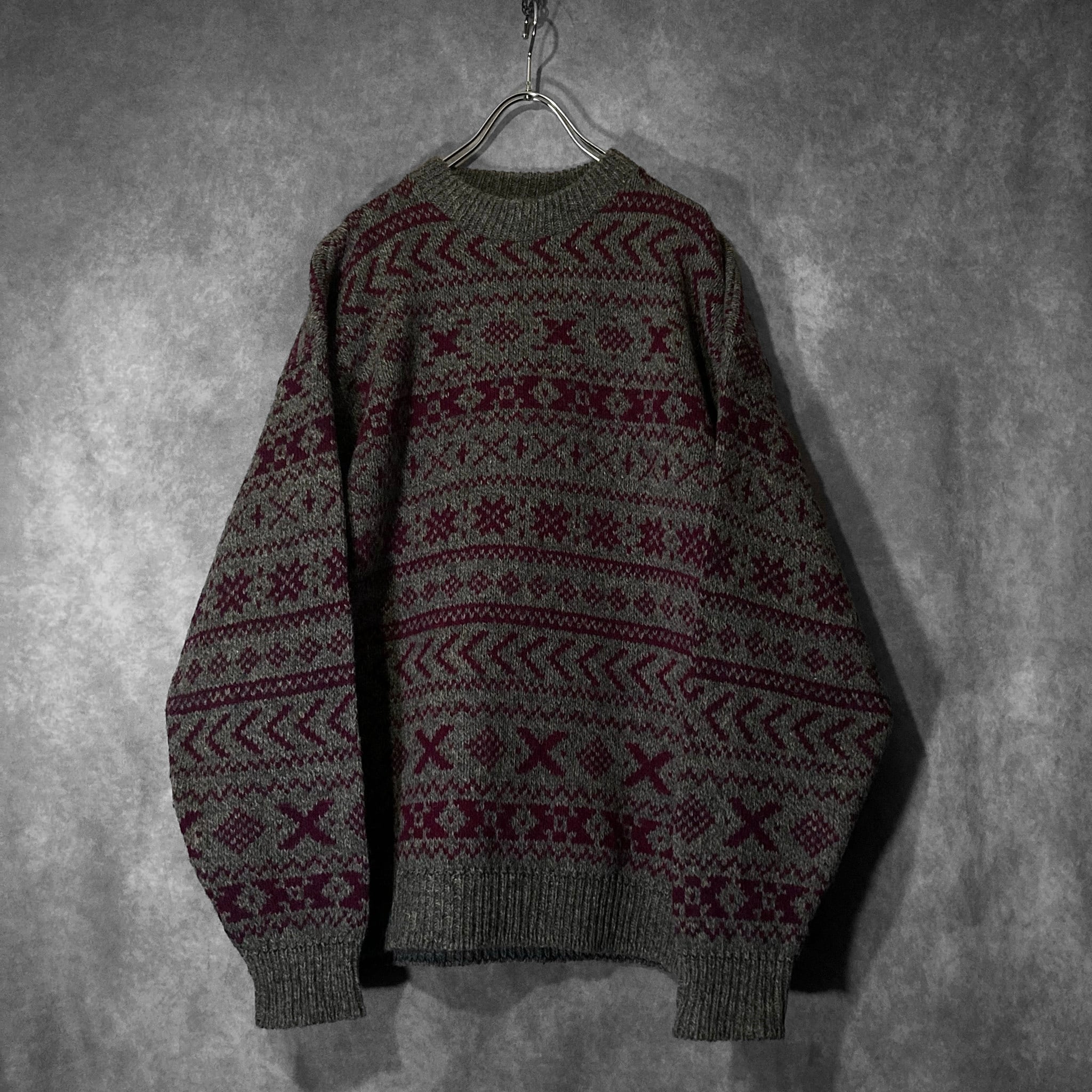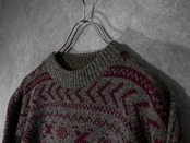 Made in USA XL wool fabric Nordic all over pattern design vintage knit sweater