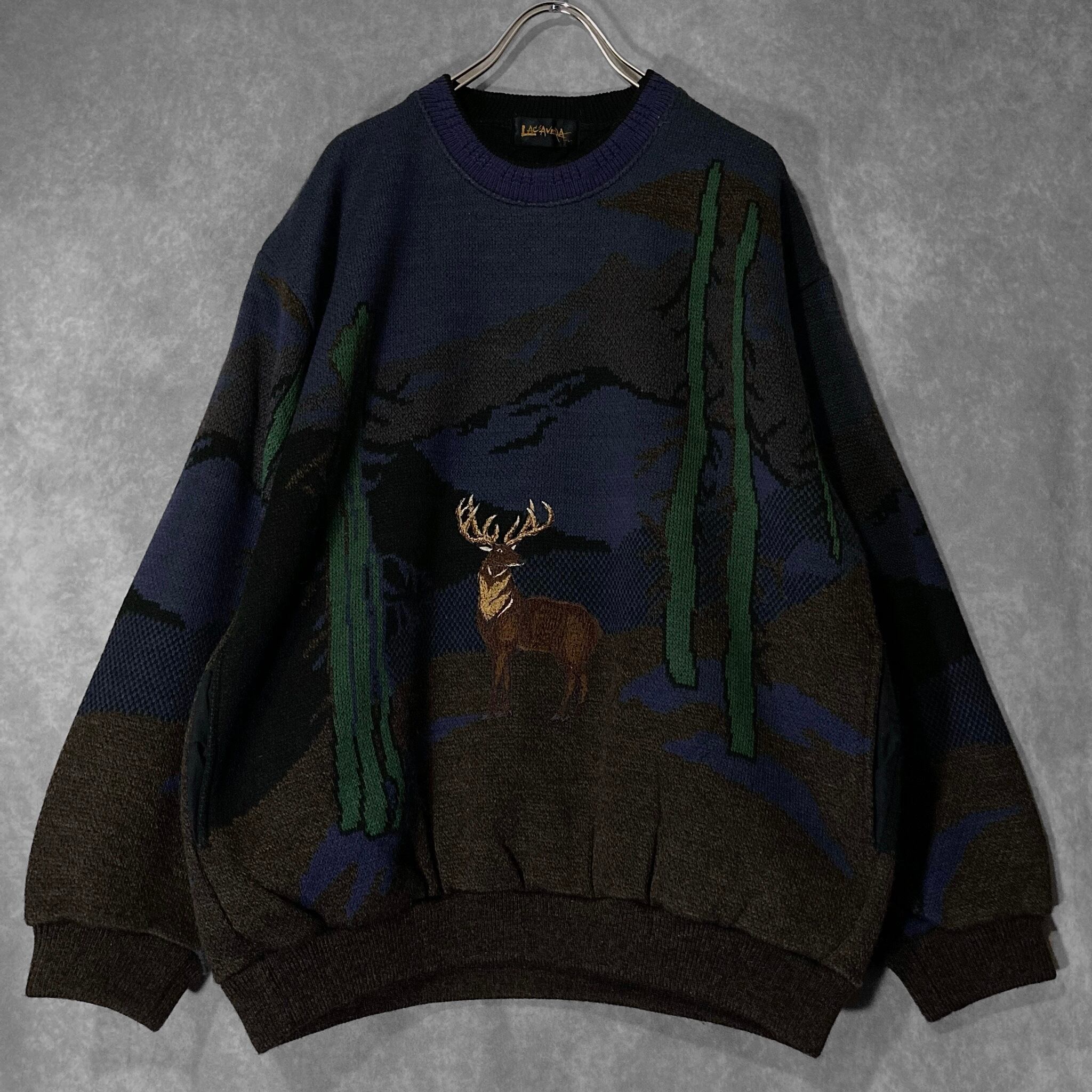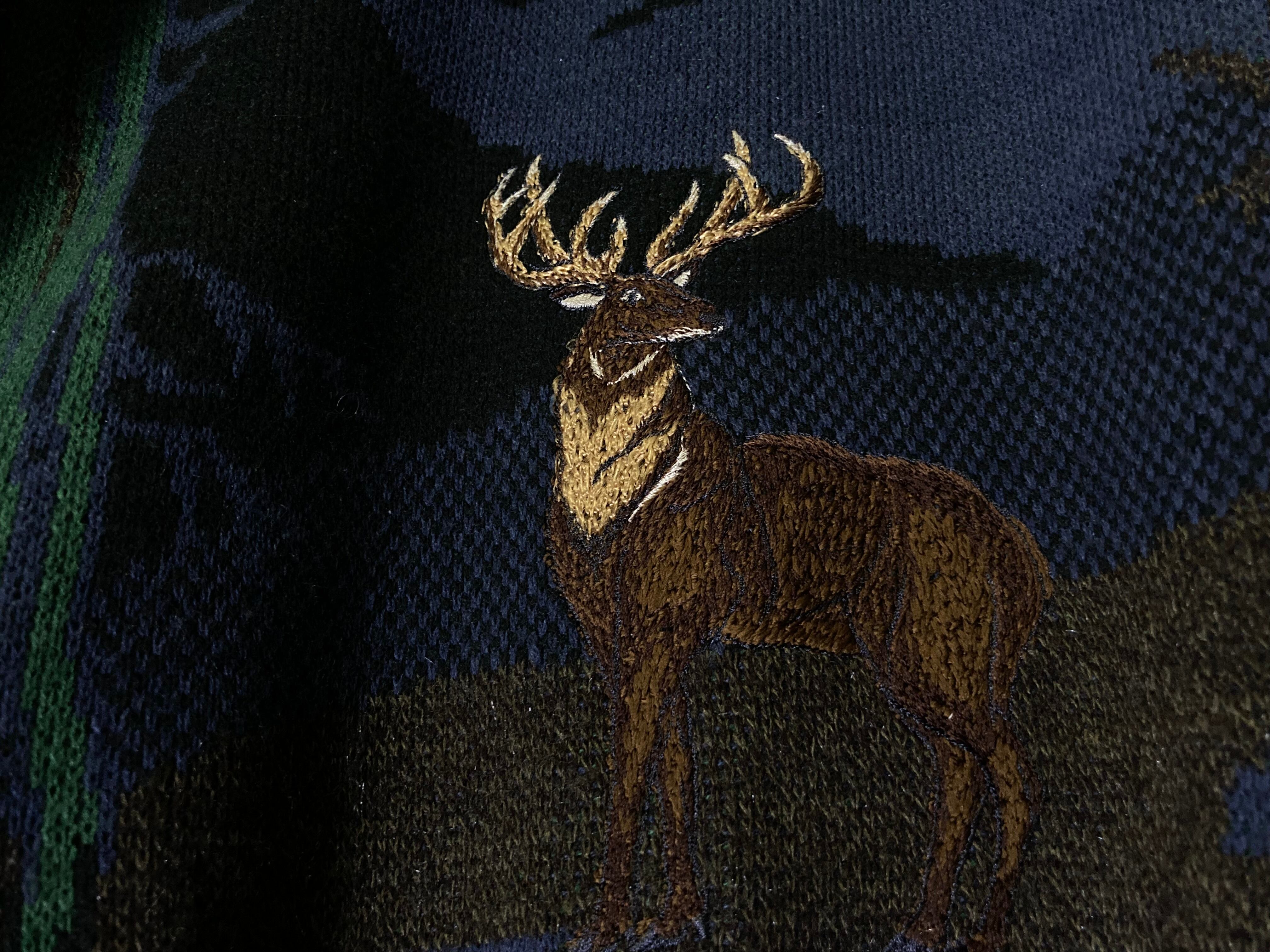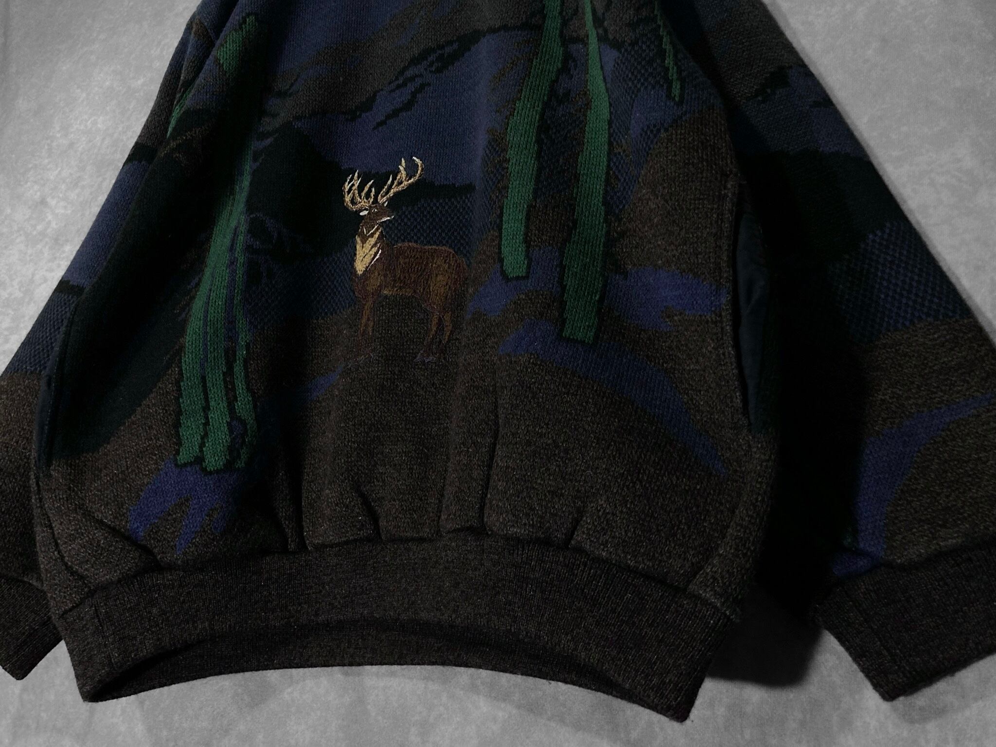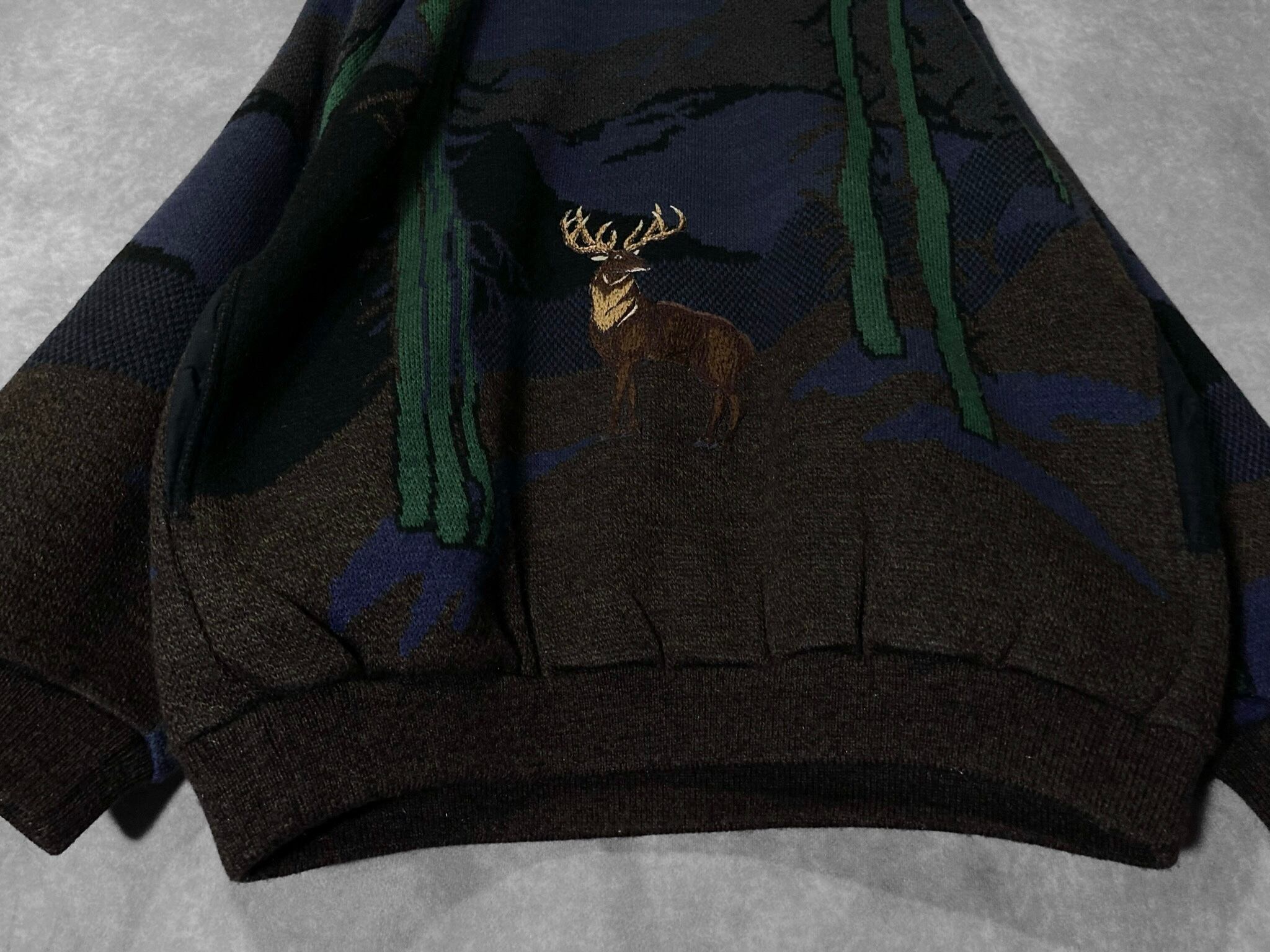 LAC AVERA 80-90's Deer embroidery mountains pattern design knit sweater