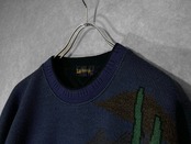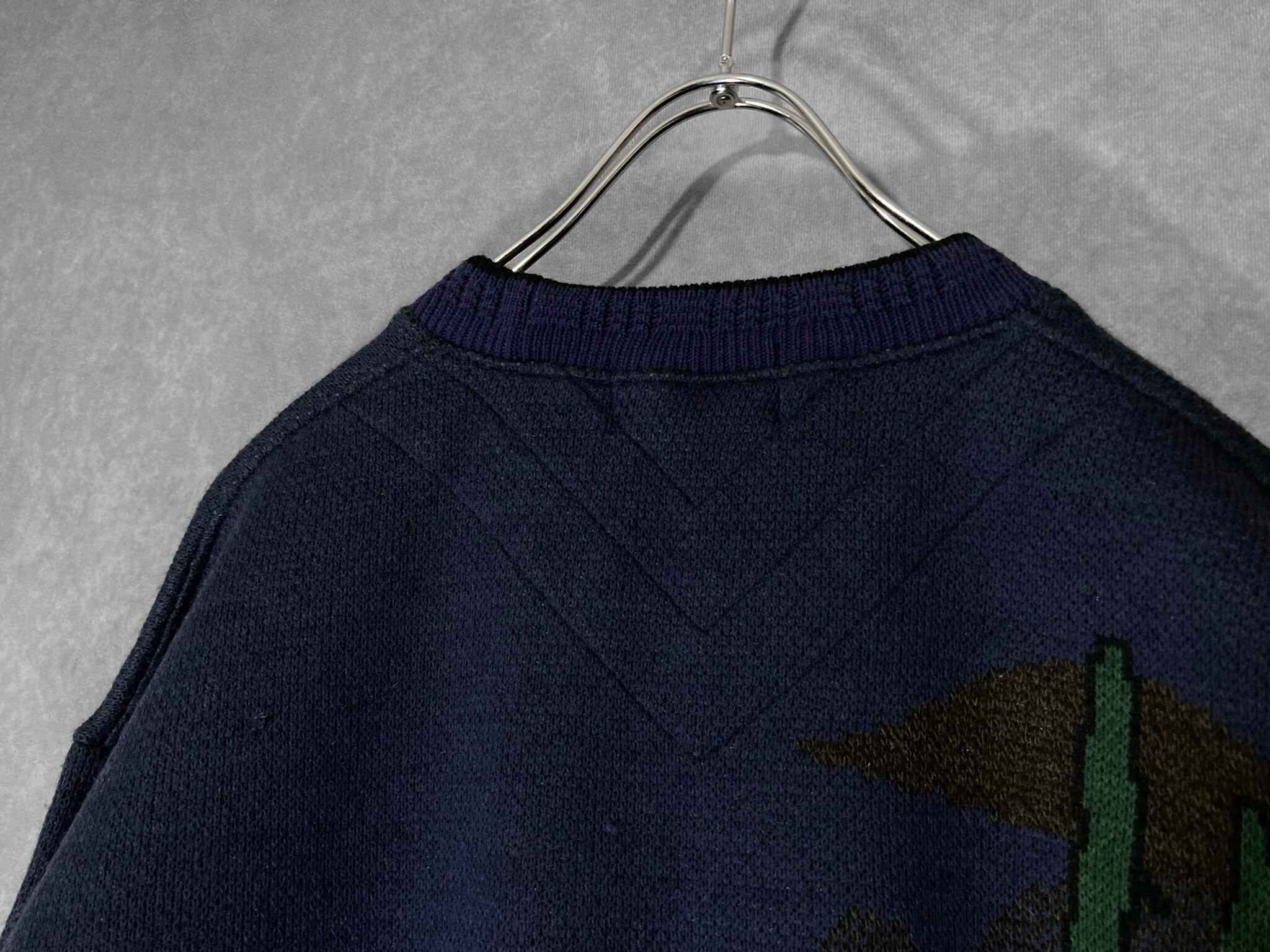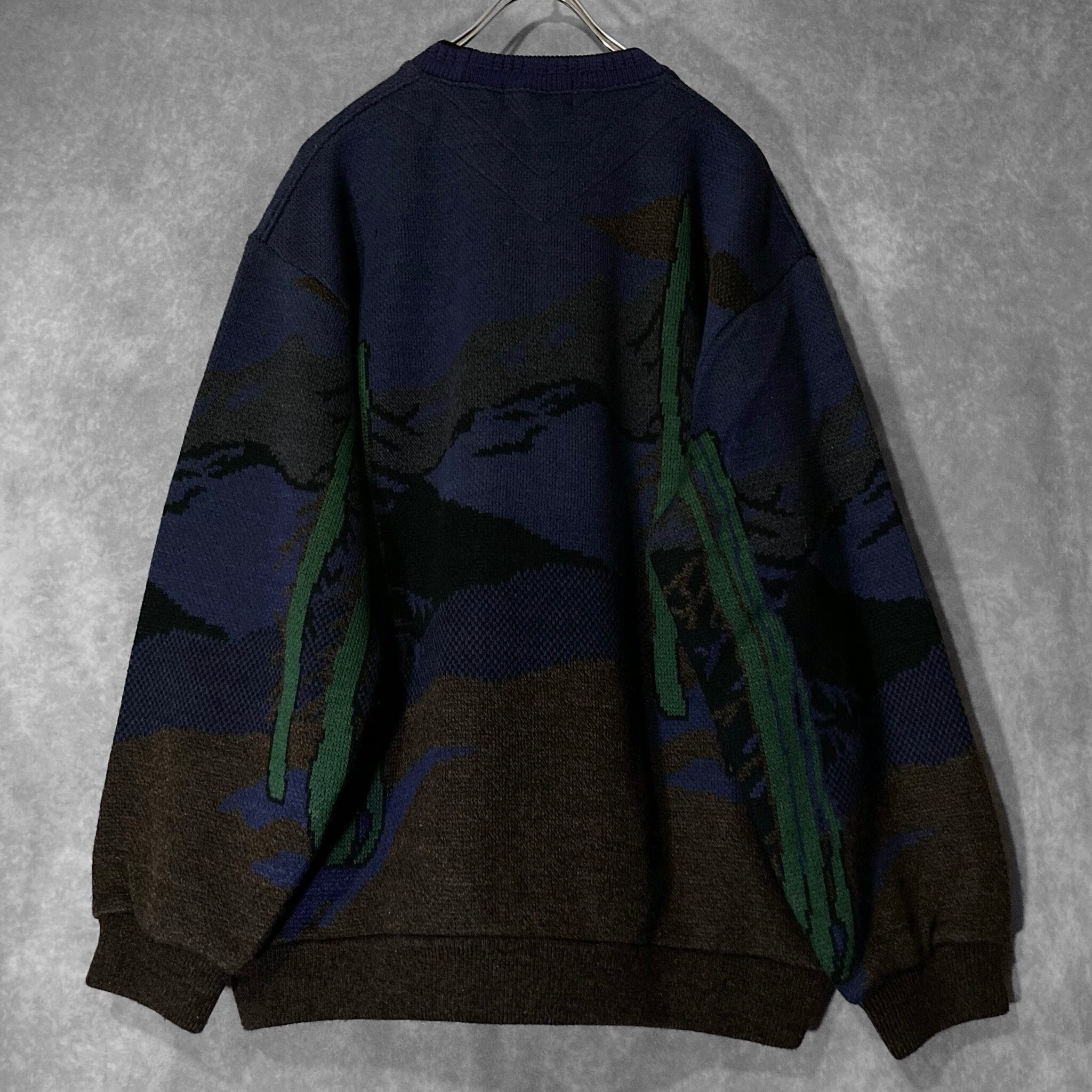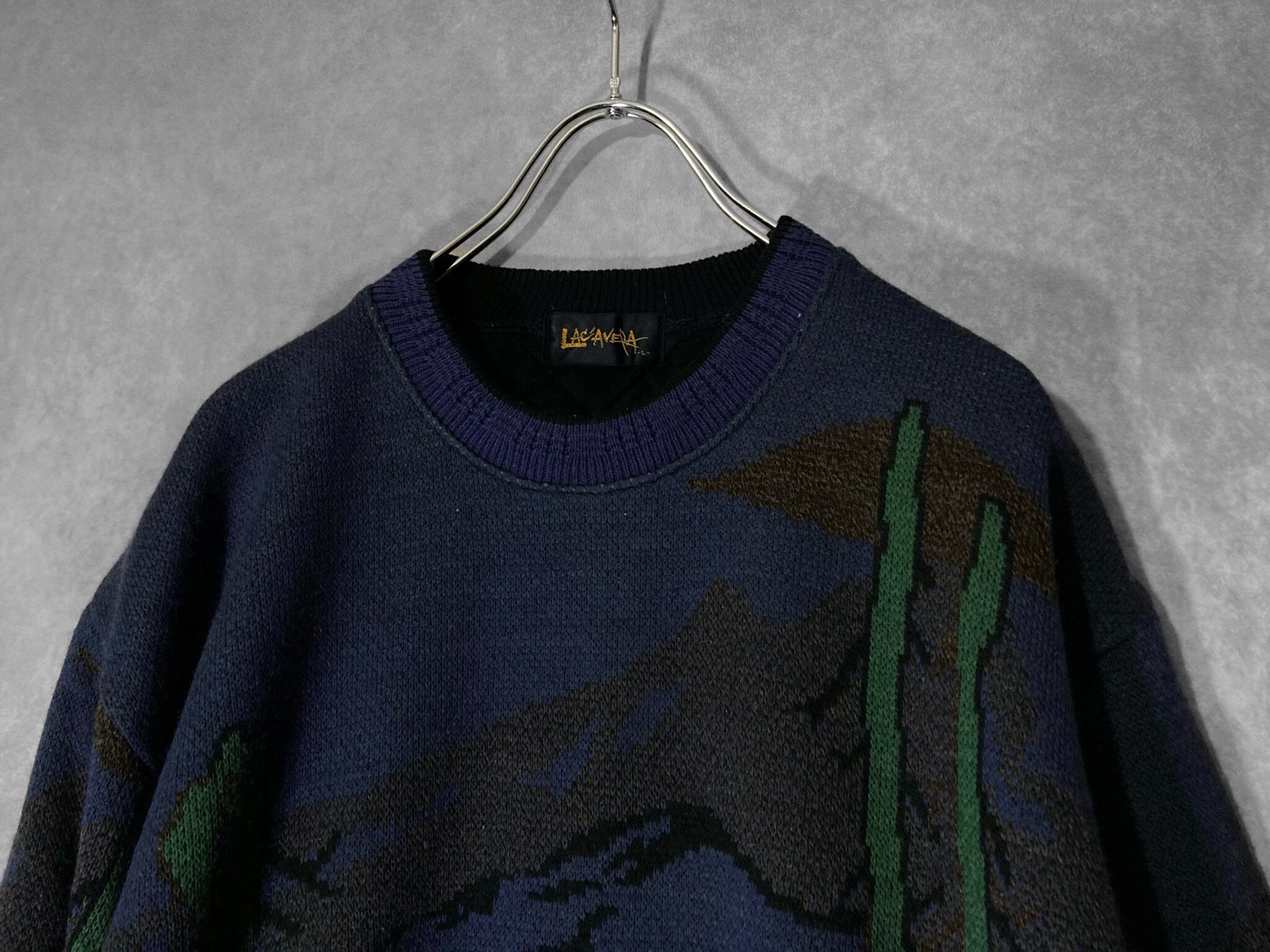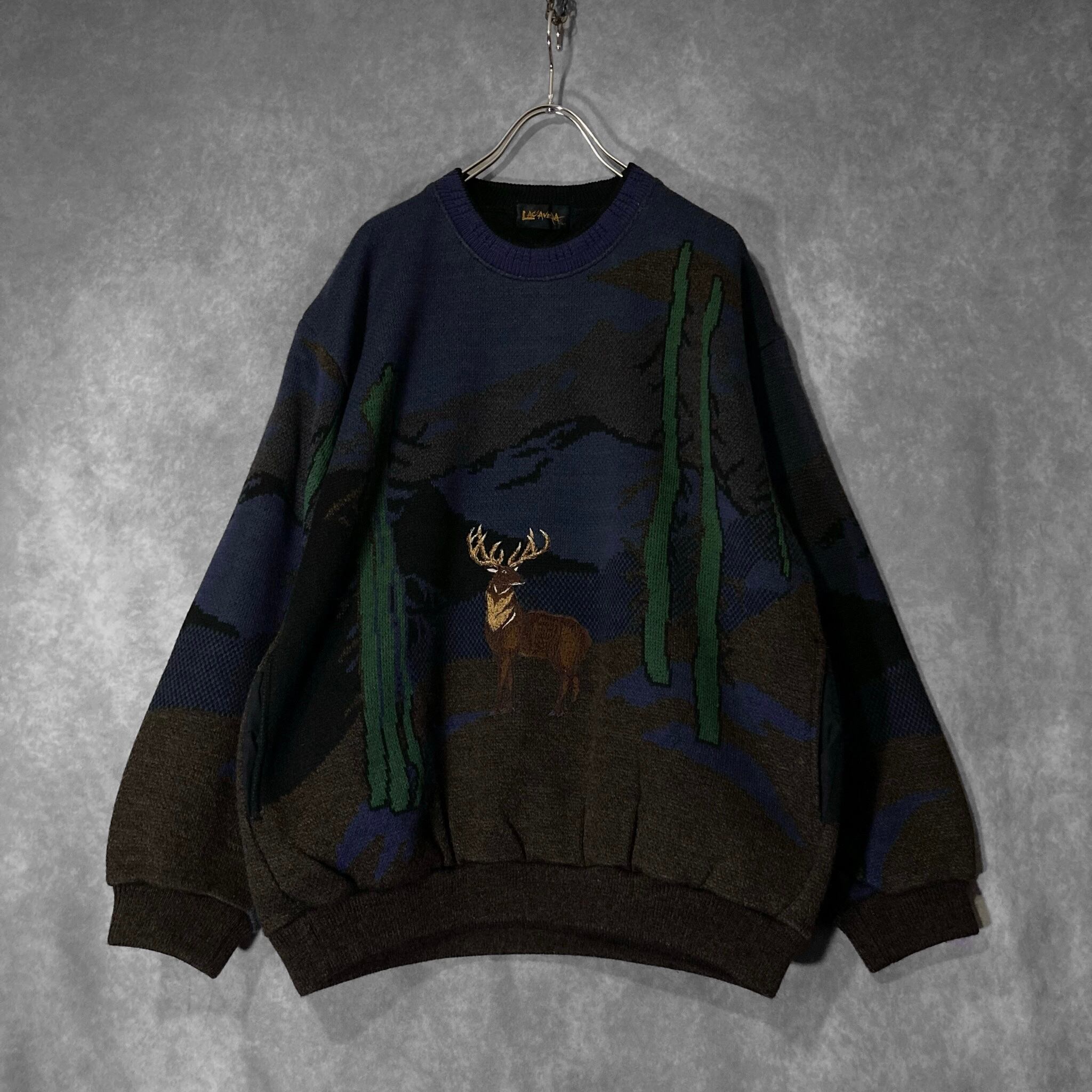LAC AVERA 80-90's Deer embroidery mountains pattern design knit sweater