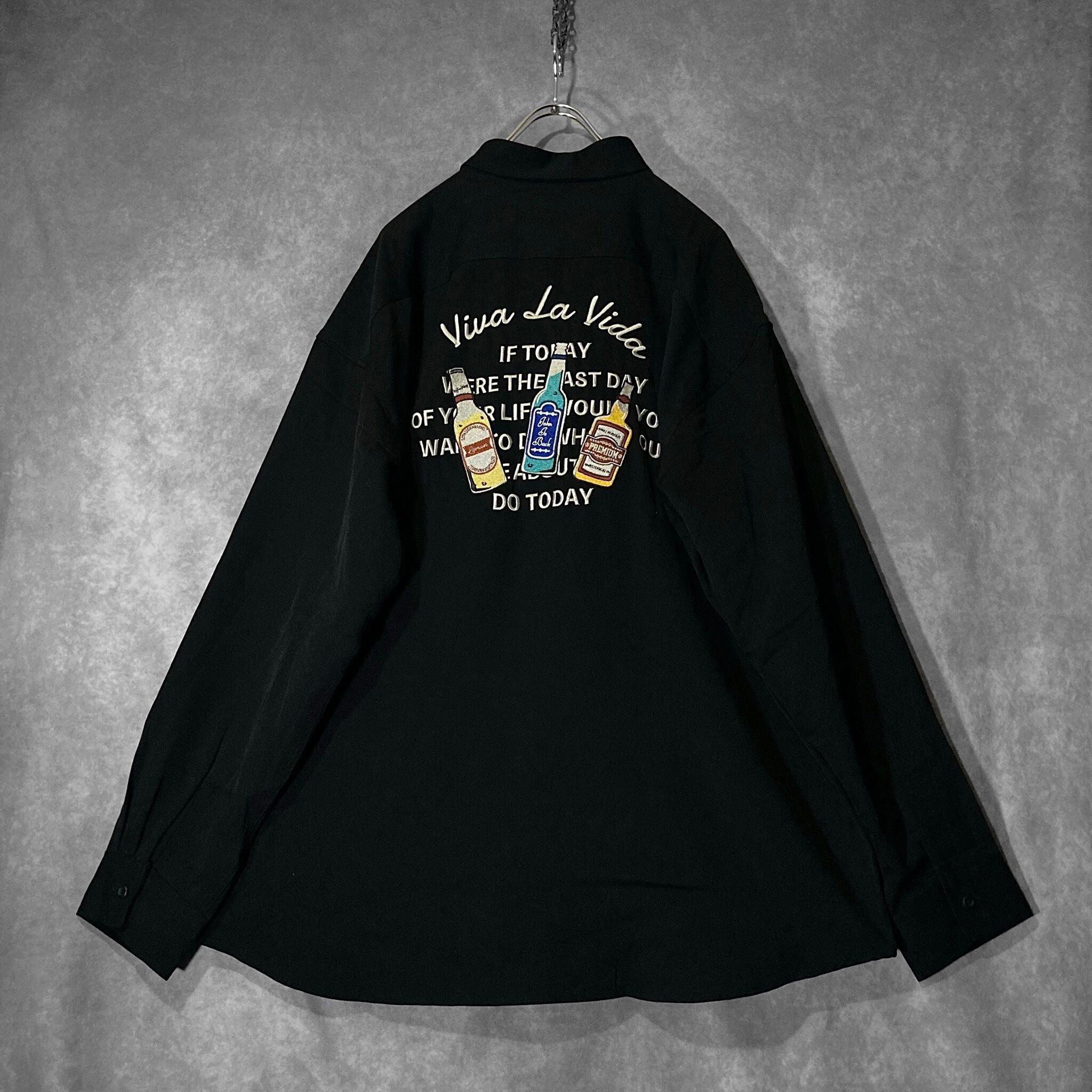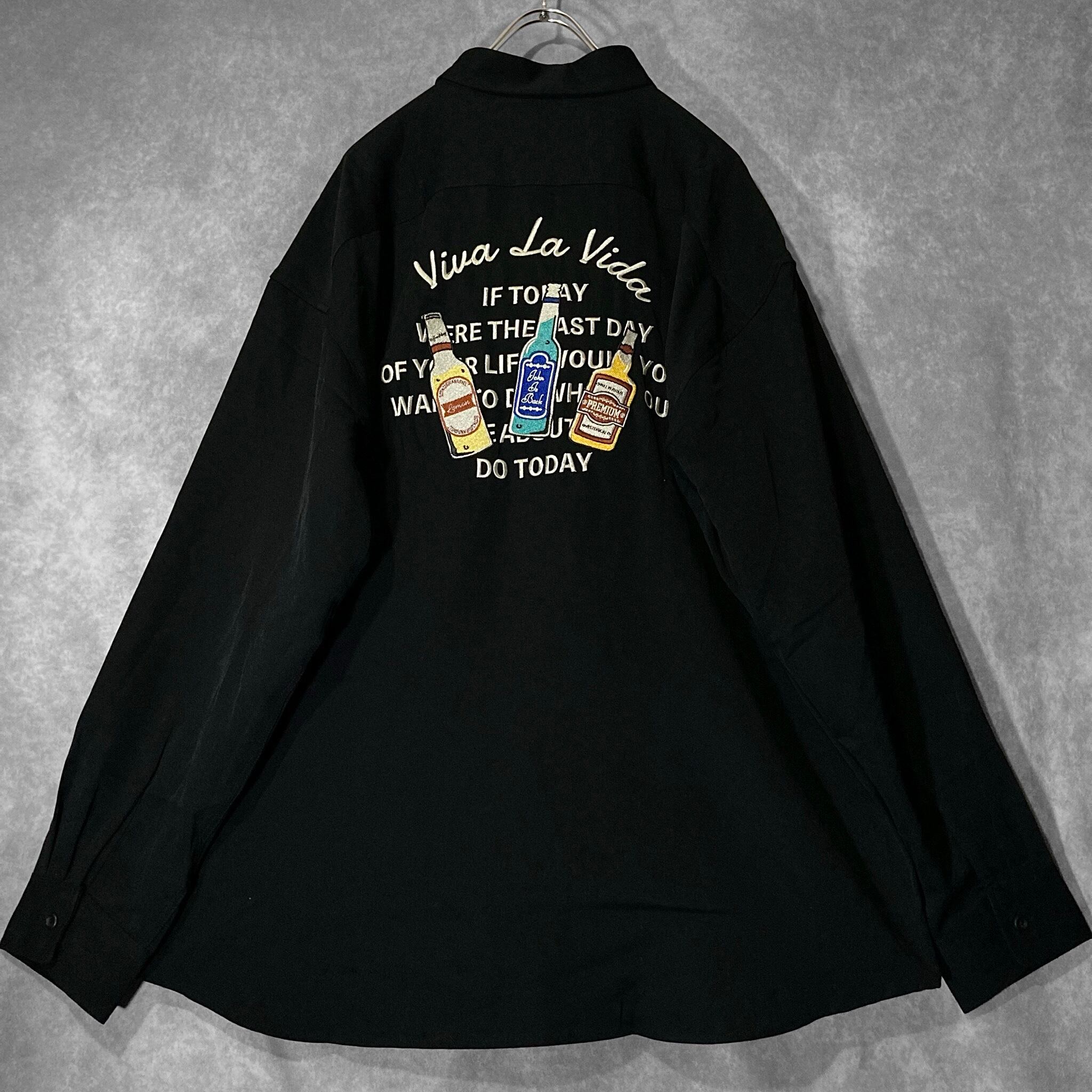 TRANS LAND URBAN GARMENT XXL " Viva La Vida " Bold font letterman & Bottle of liquor embroidery L/S shirt