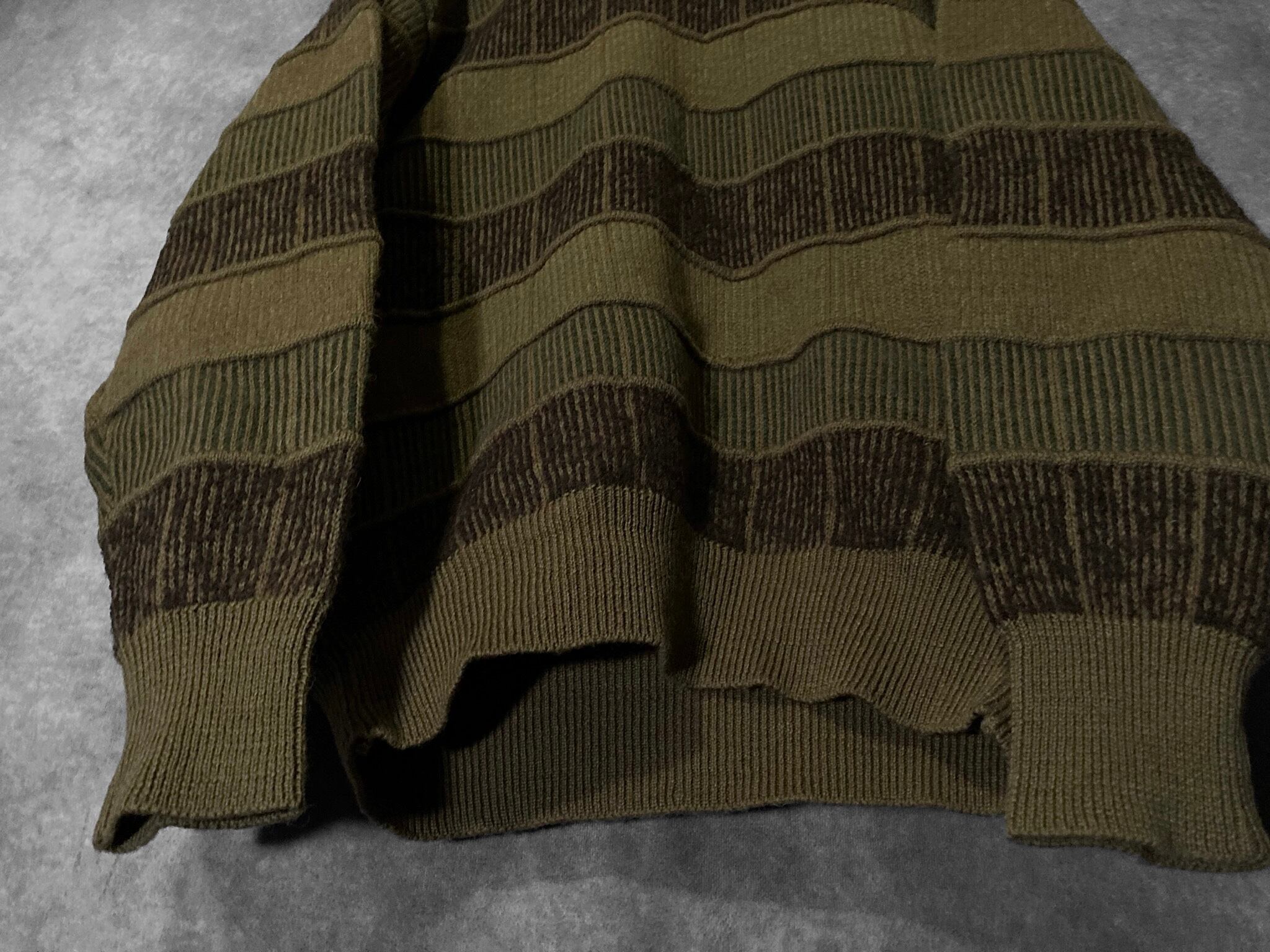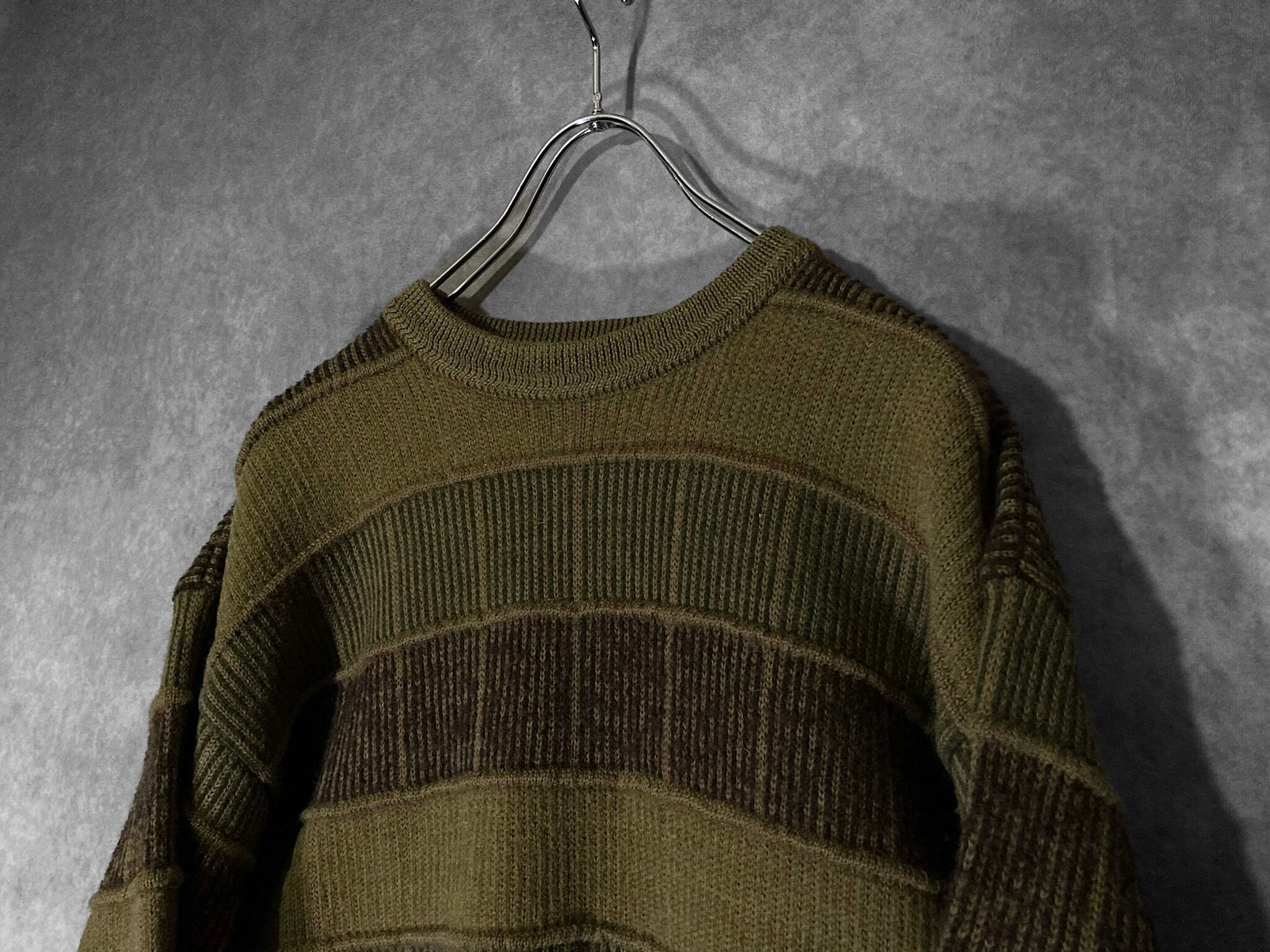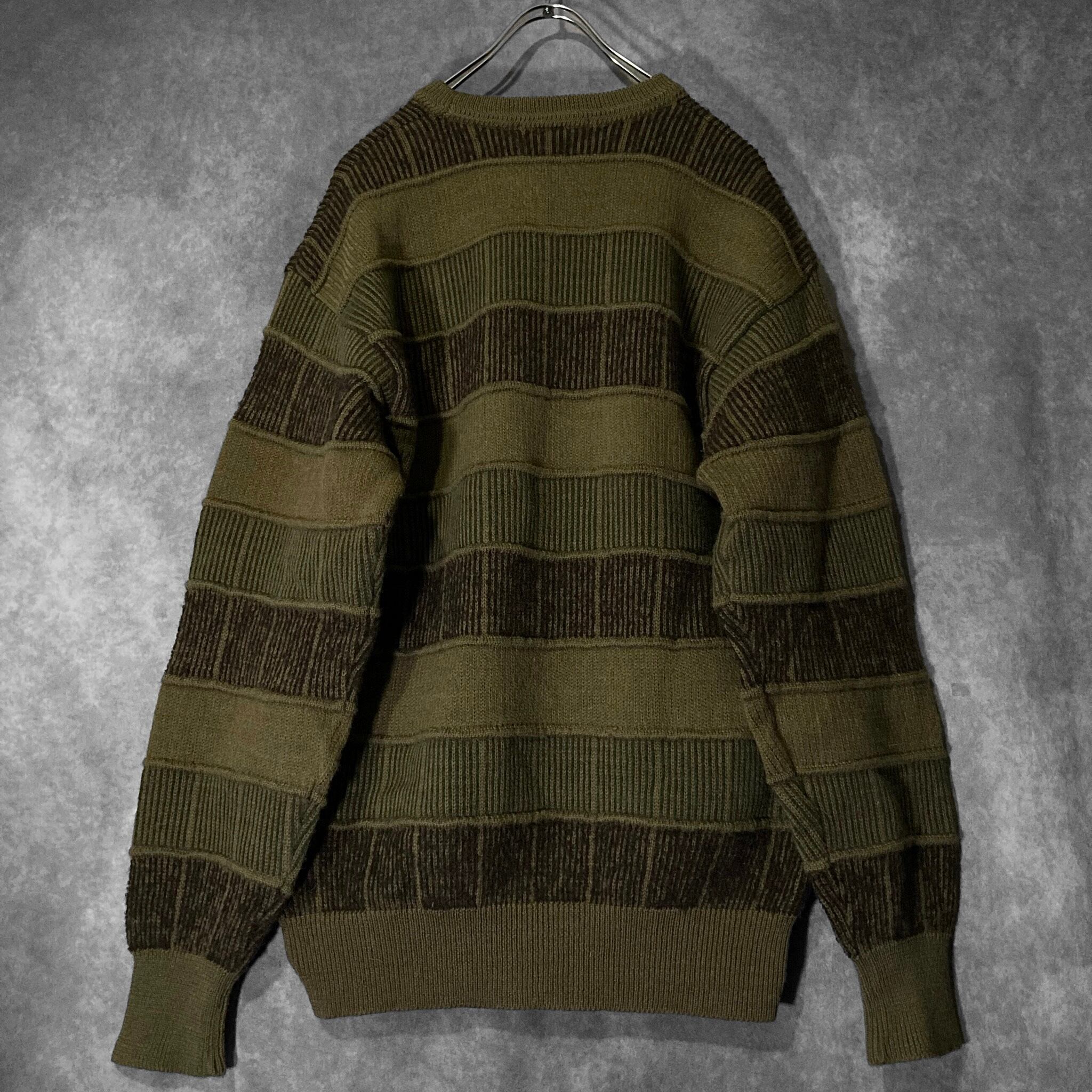 鶯 Uguisu colored Different irregularity woven square pattern design vintage knit