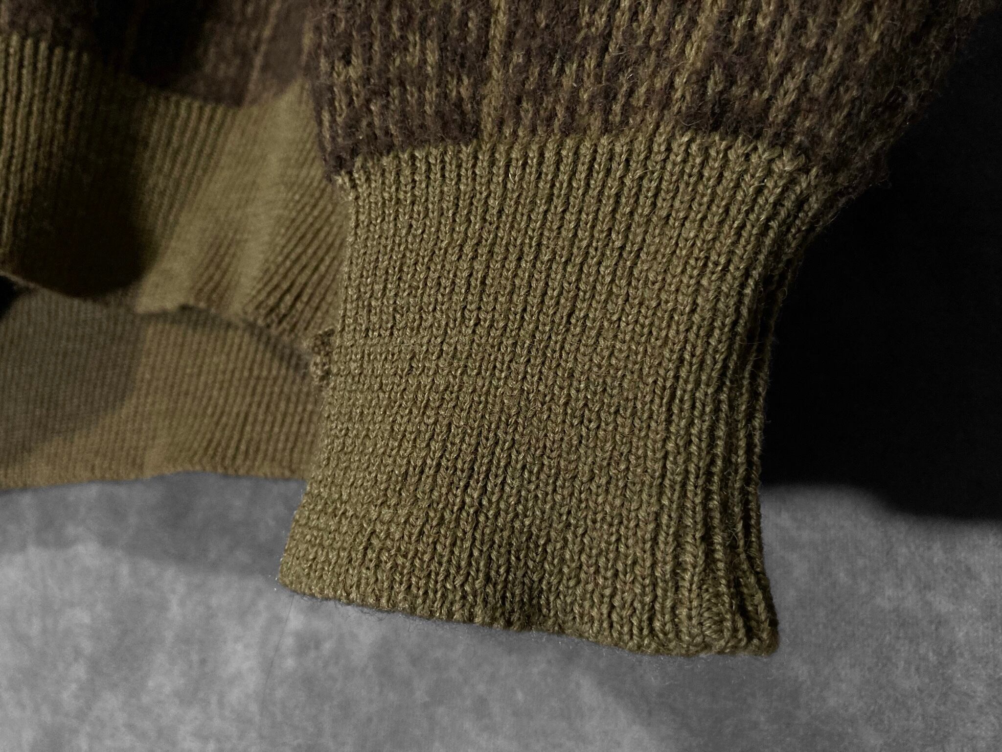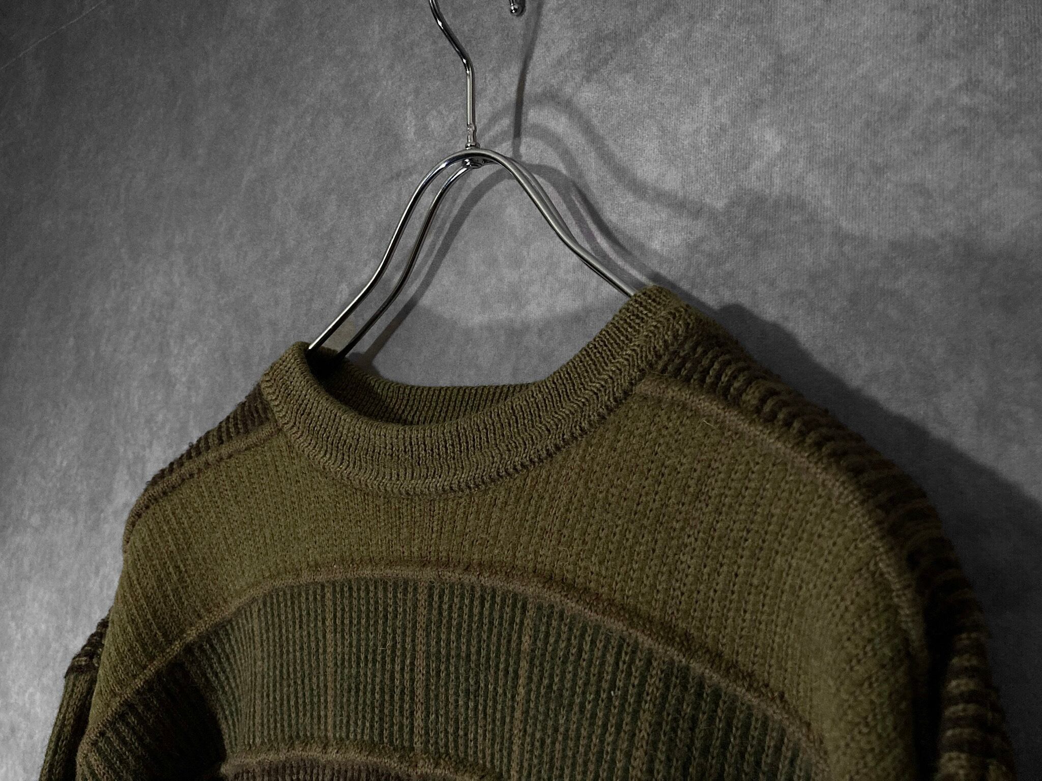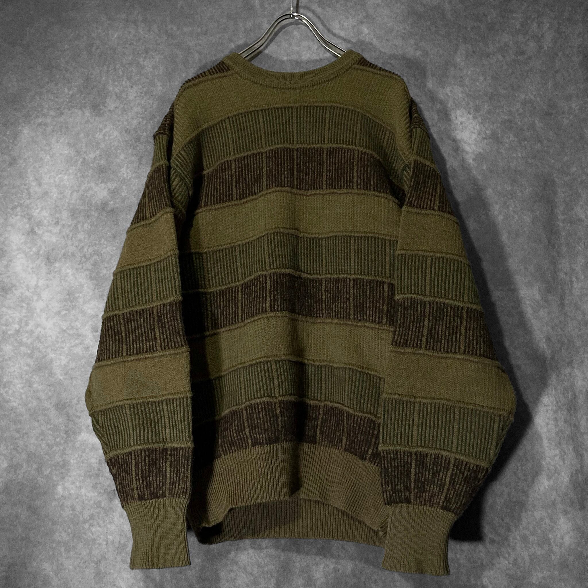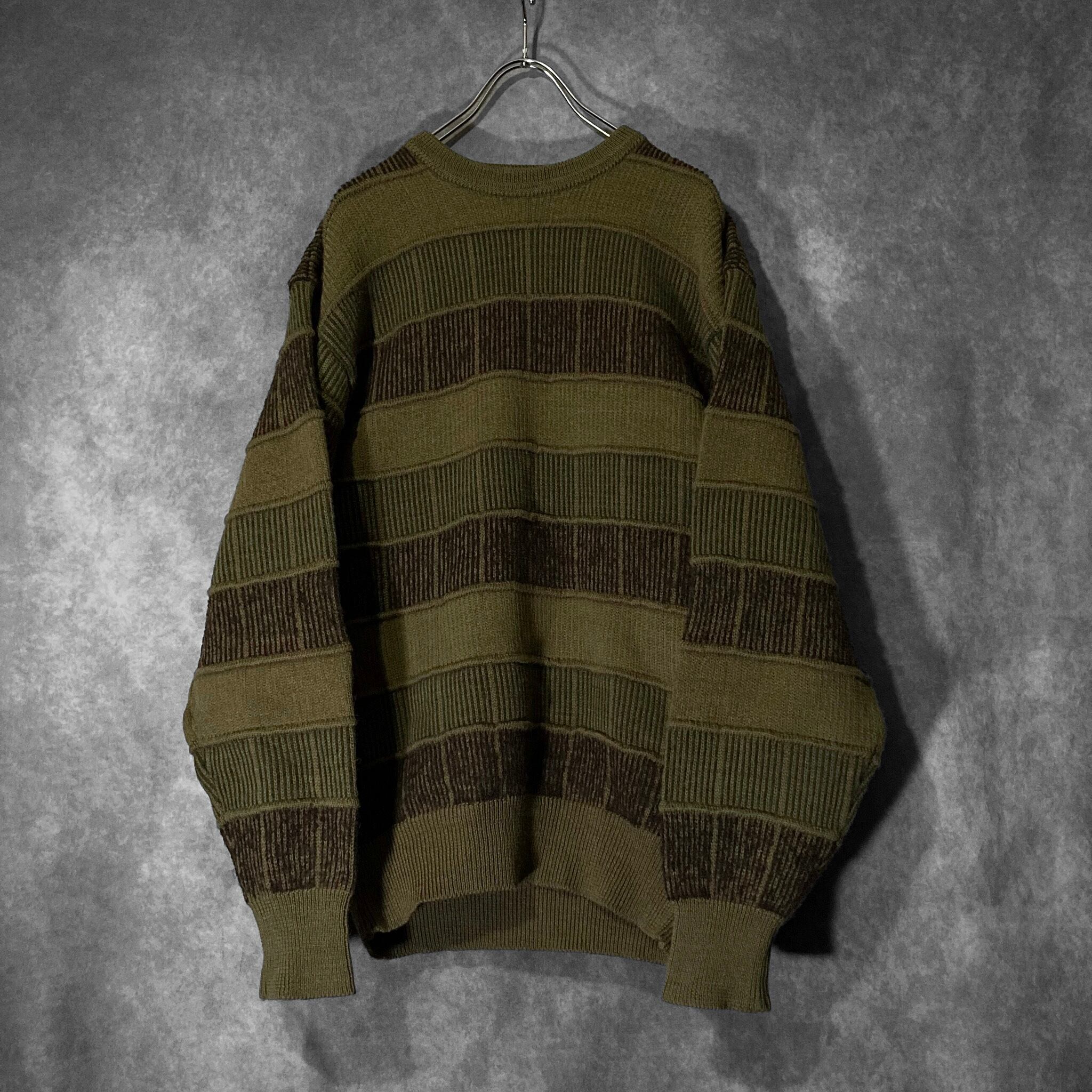 鶯 Uguisu colored Different irregularity woven square pattern design vintage knit