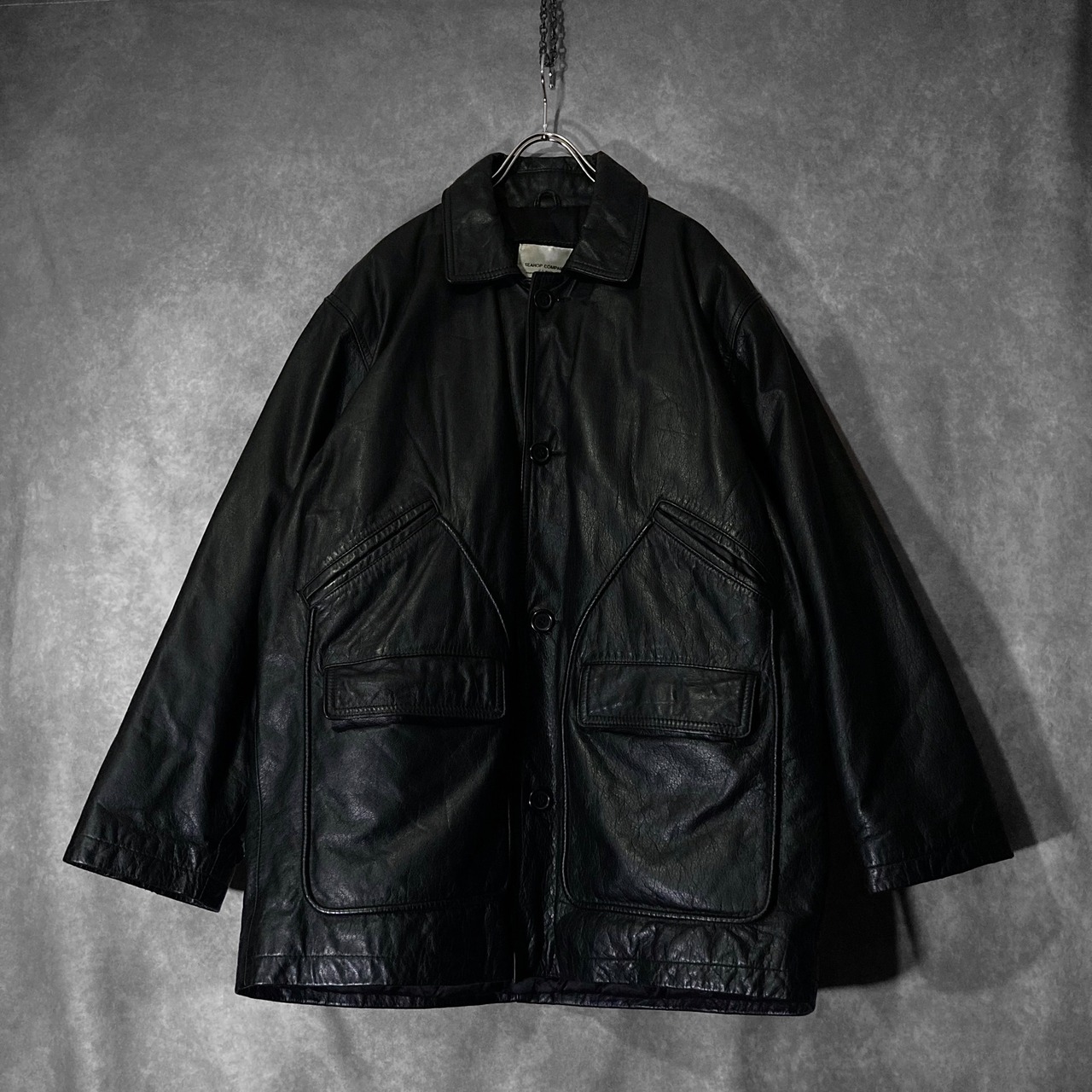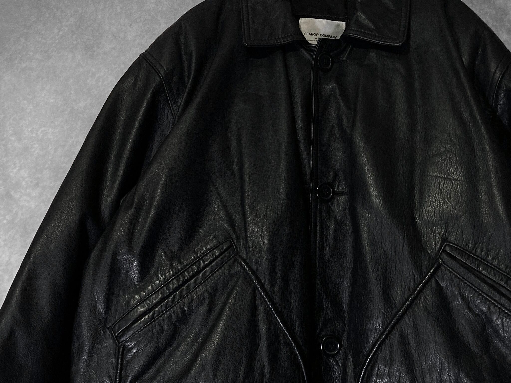 完品 " 極上 " もっちもち SEAHOP COMPANY made in Korea XL cow-leather fabric vintage loose jacket