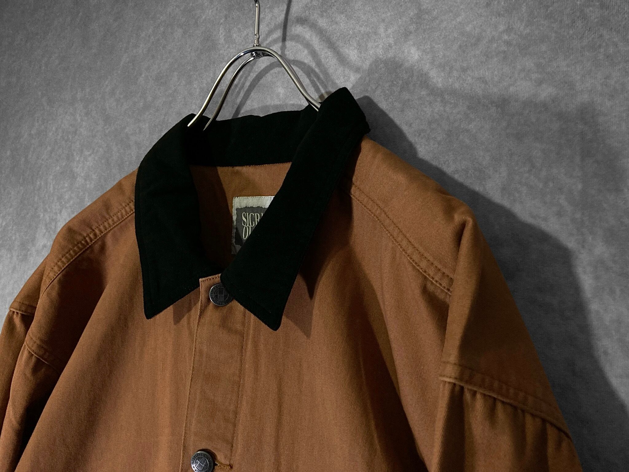 ワークテイストな煉瓦(レンガ)ライクなブラウンとブラックの襟のコントラストの効いた配色が印象的。